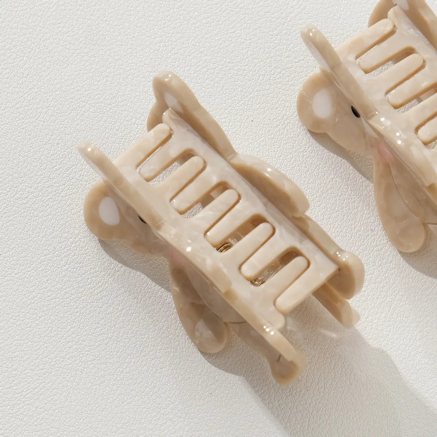 Our adorable Teddy Bear claw features a pink bow in a beige color. Made with eco-friendly material that is both durable and comfortable.
