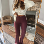 Bringing them back in another color! Elevate your activewear with these crossover waist flared leg yoga pants. Designed with a flattering high-rise crossover waistband, they provide gentle support while accentuating your natural silhouette. The soft, stretchy fabric moves with you, and the flared leg adds a touch of retro-inspired style to your workout or everyday look. Perfect for yoga, lounging, or pairing with your favorite sneakers for a chic athleisure vibe.