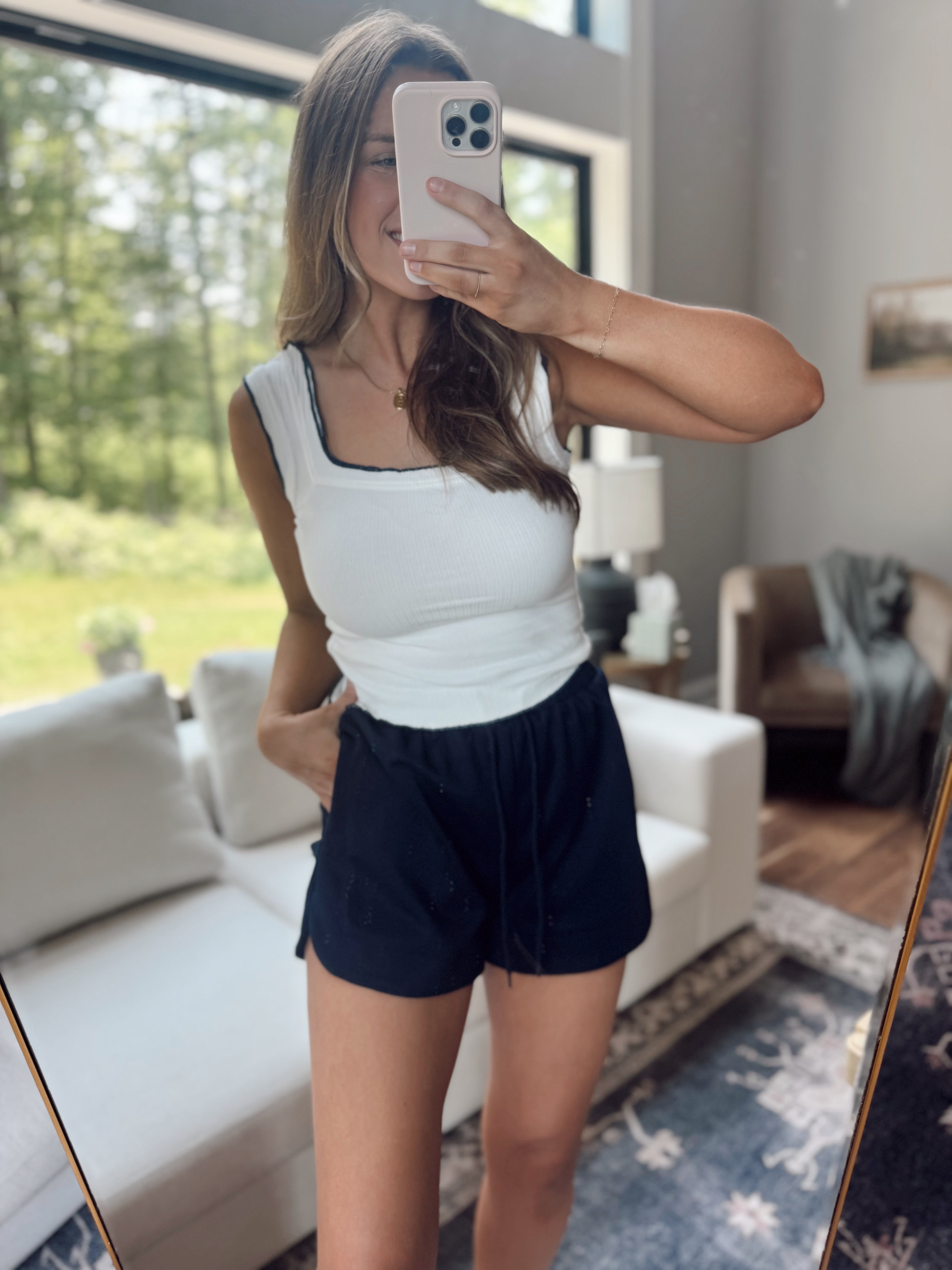 Oatmilk High Hopes V Neck Ribbing & Lace Tank