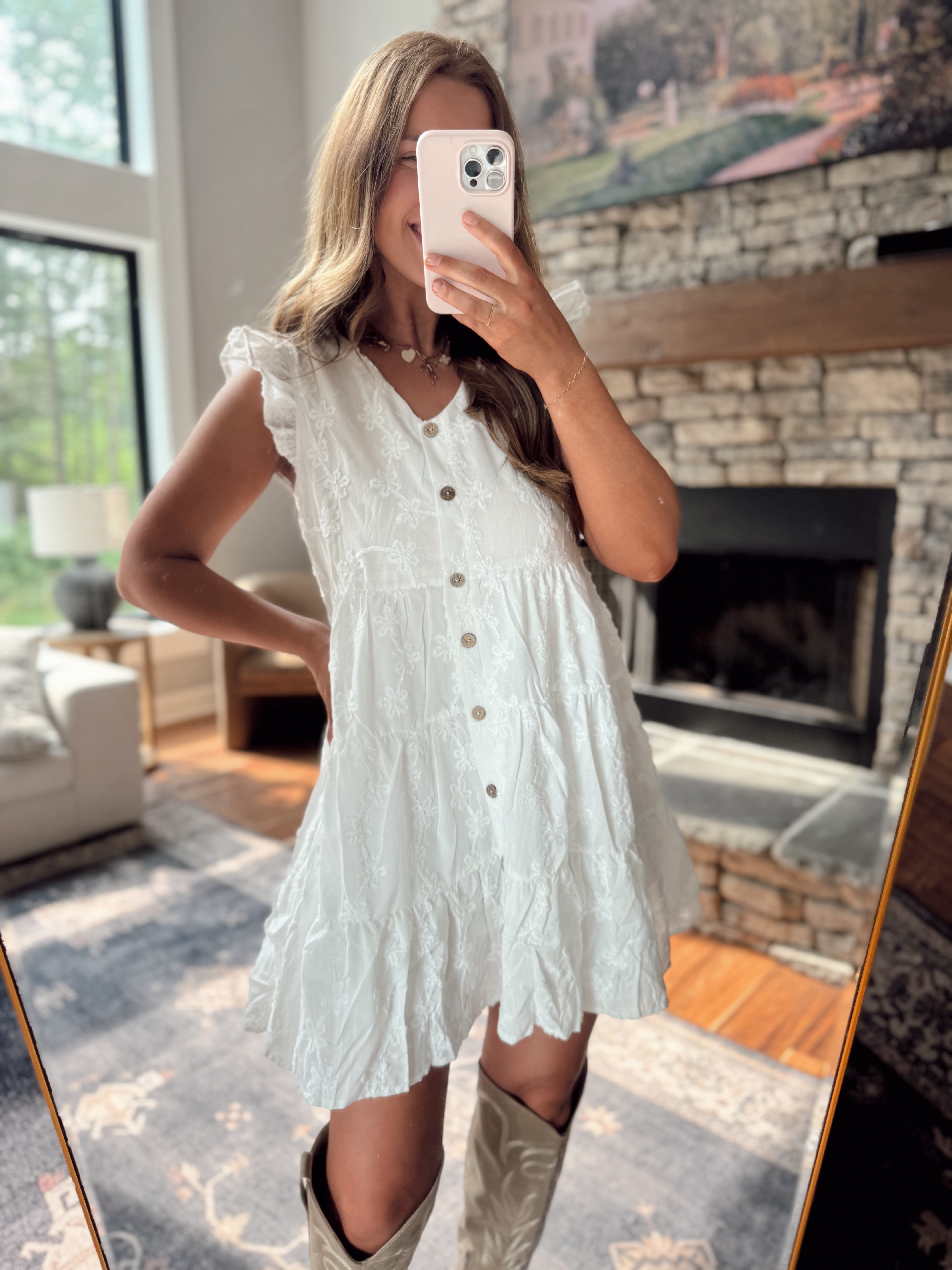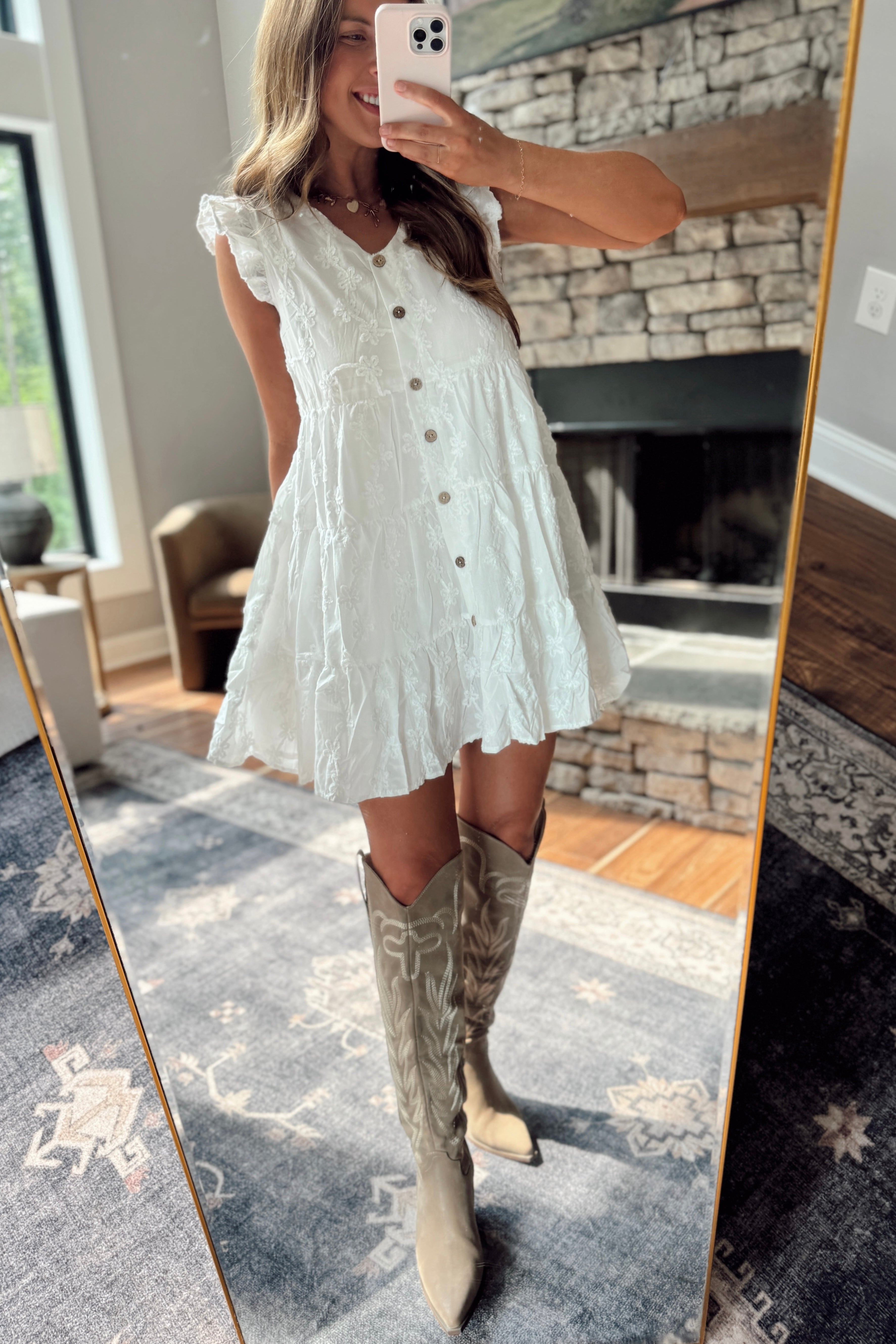 Off White Floral Textured Tiered Mini