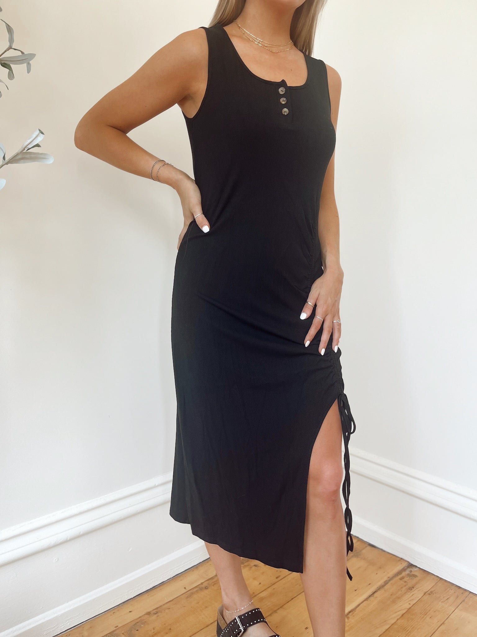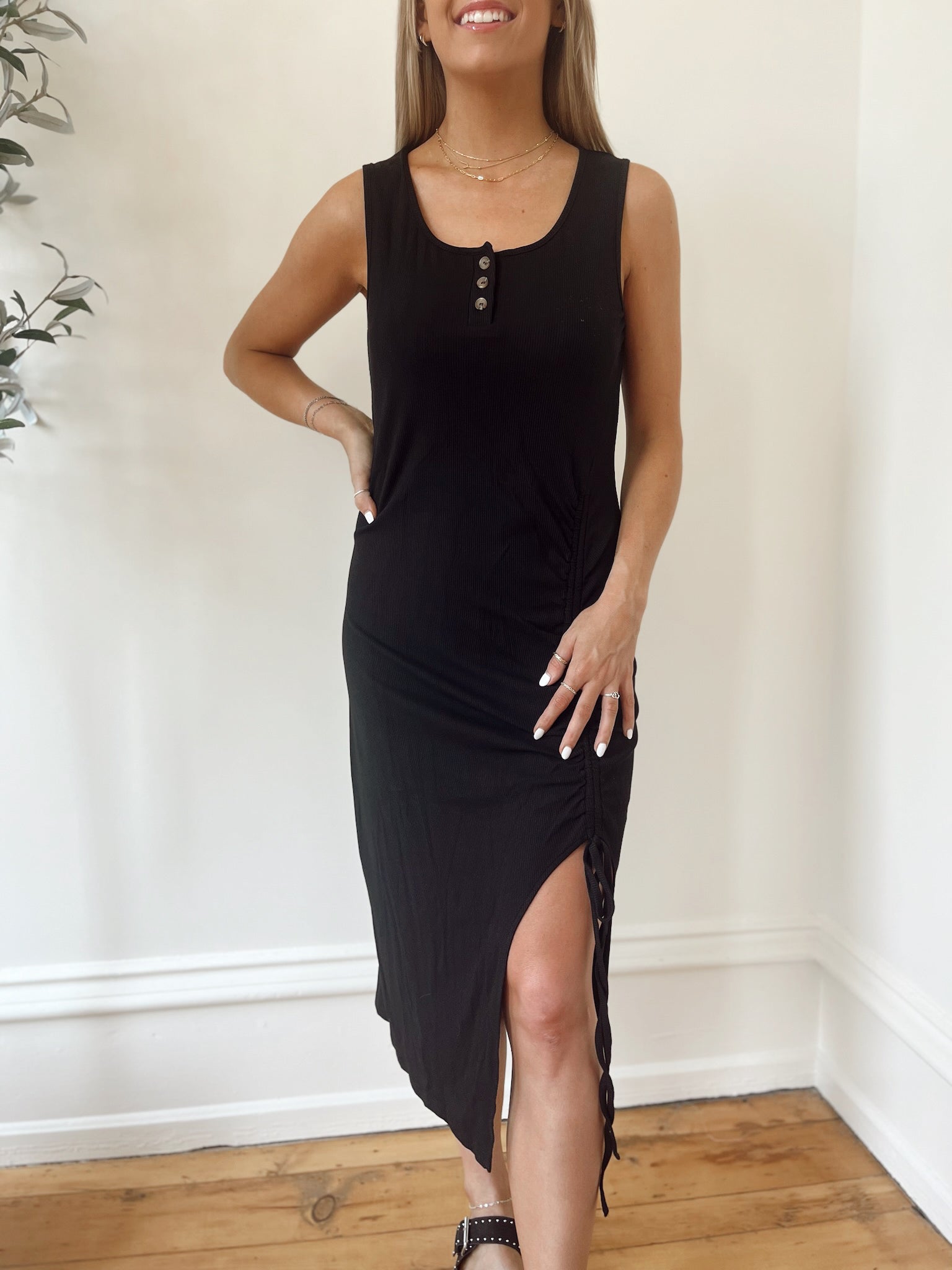 Olivia Black Ruched Slit Dress