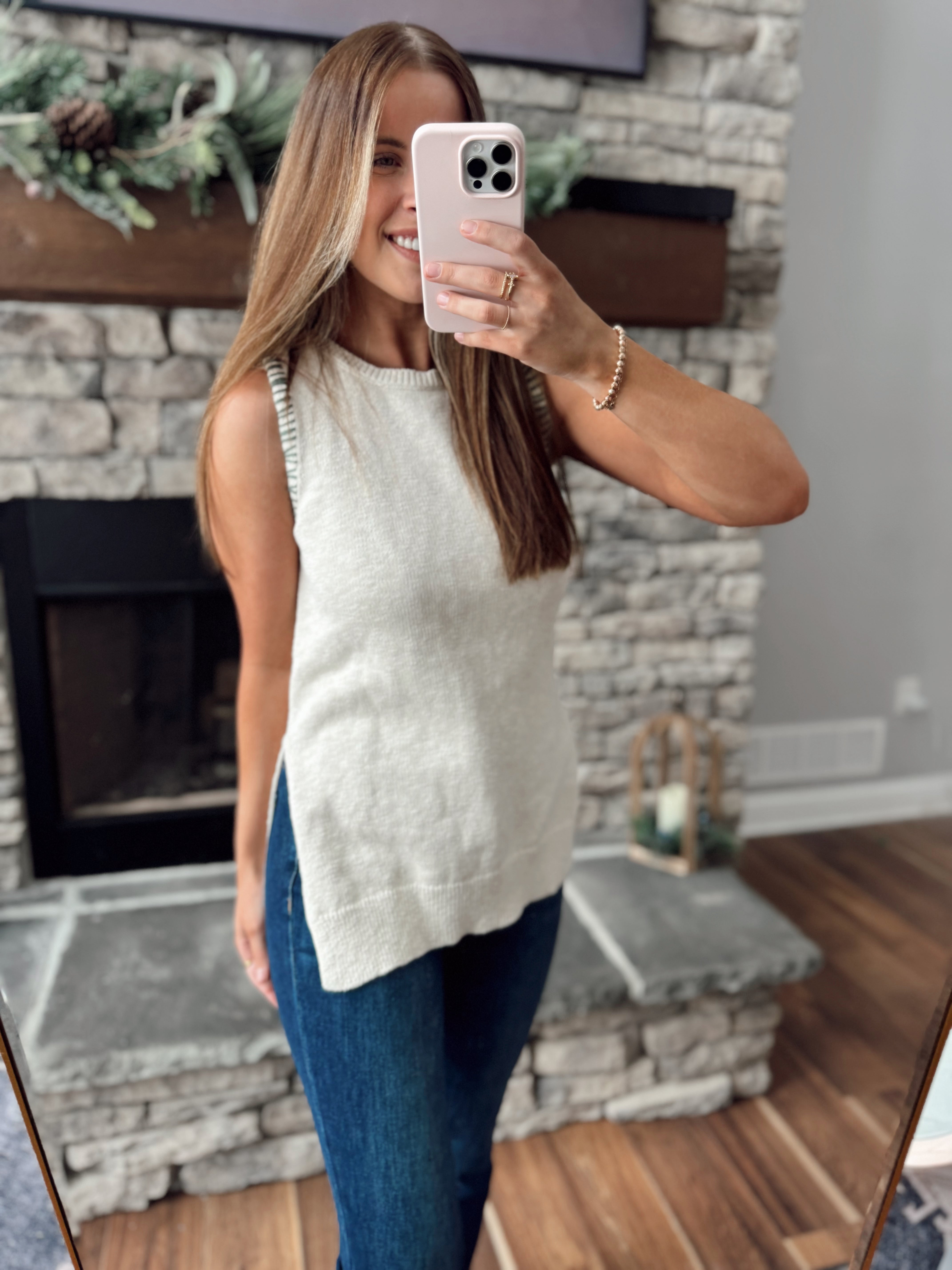 Ollie Oatmeal/Green Stitch Knit Top
