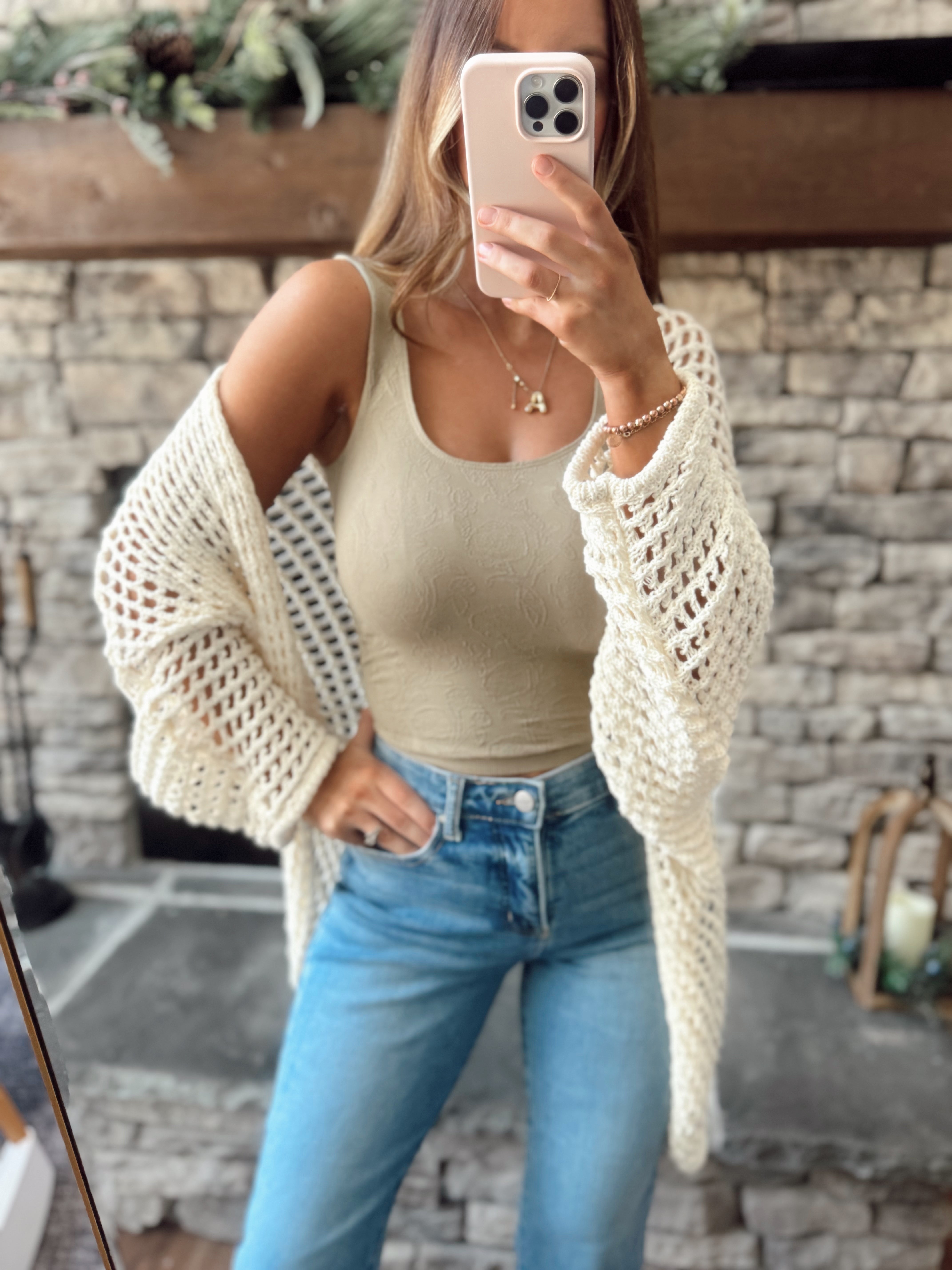 Olive Pointelle Open Knit Zip Up Sweater
