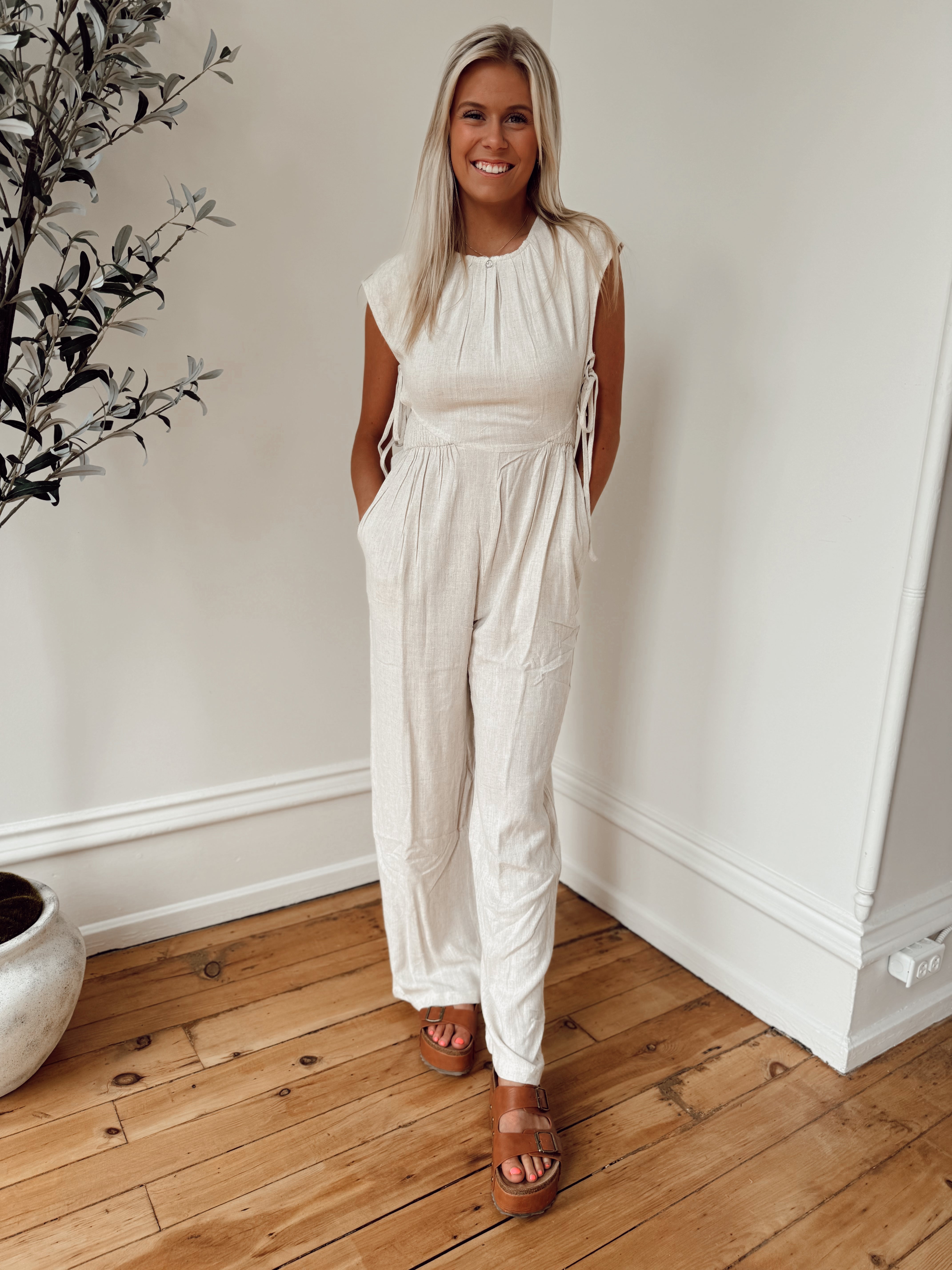 Only The Best Oatmeal Side Smocked Jumpsuit