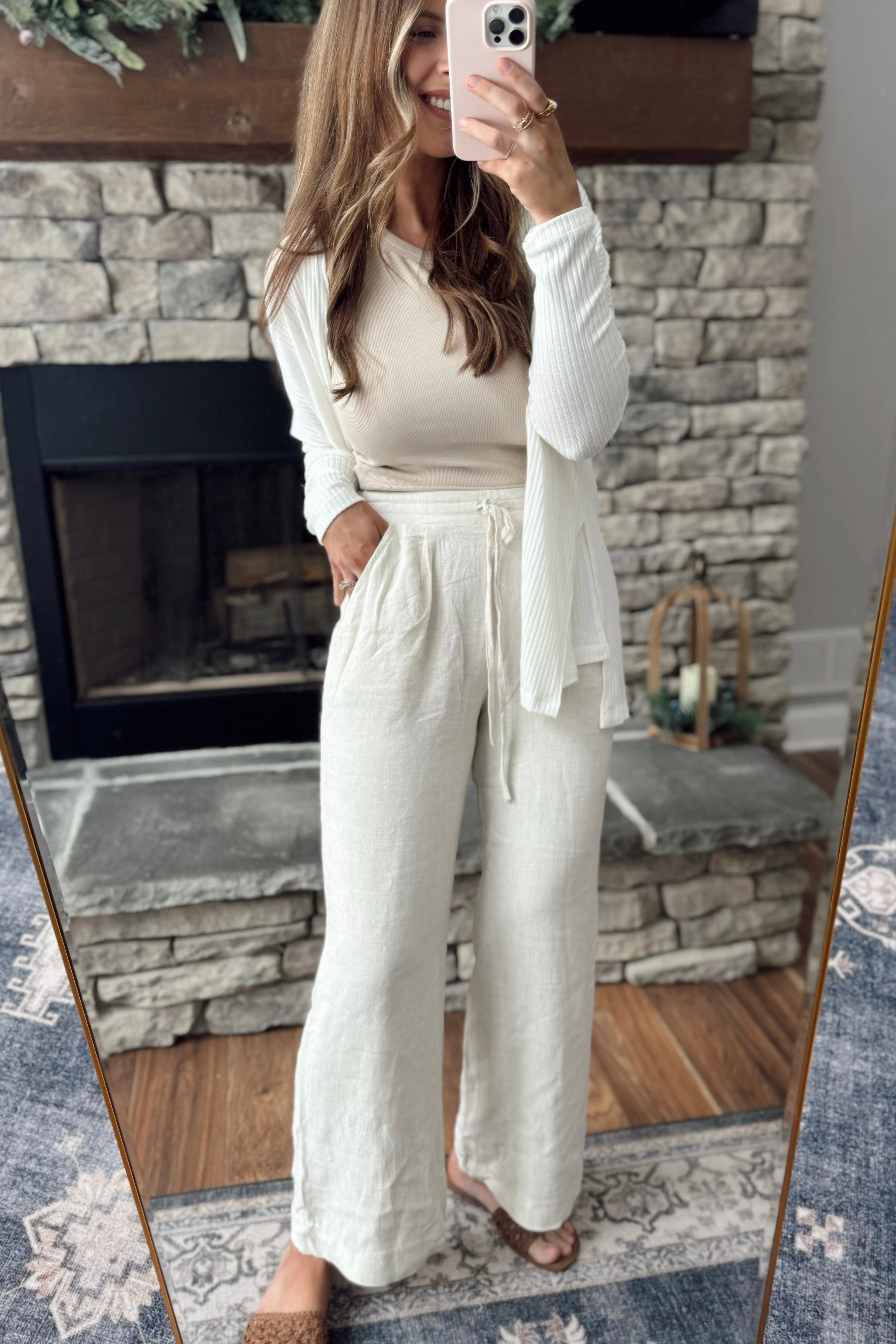 Ophelia Oatmeal Straight Leg Linen Blend Drawstring Pant