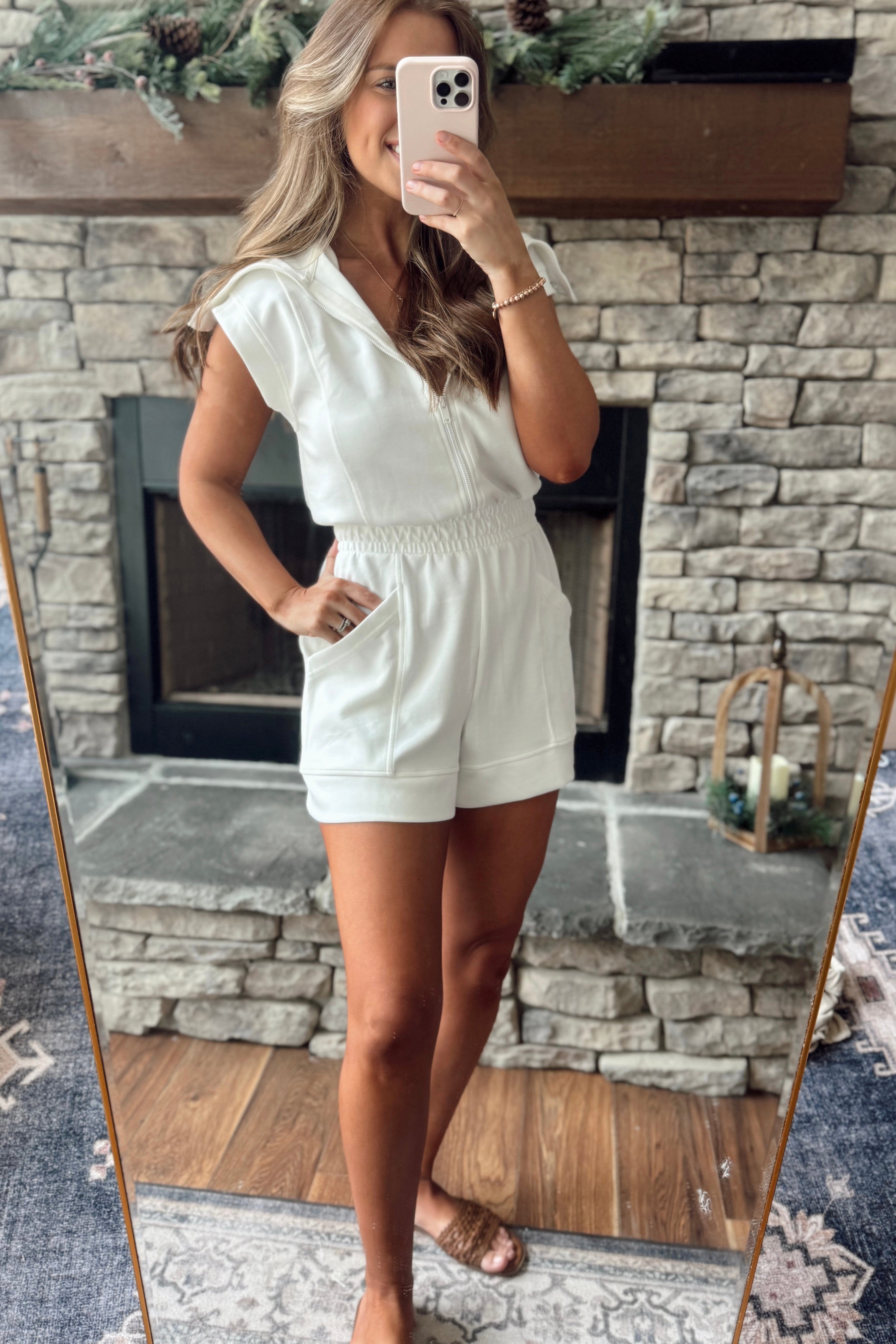 Out Of Reach Cream Scuba Luxe Sleeveless Romper