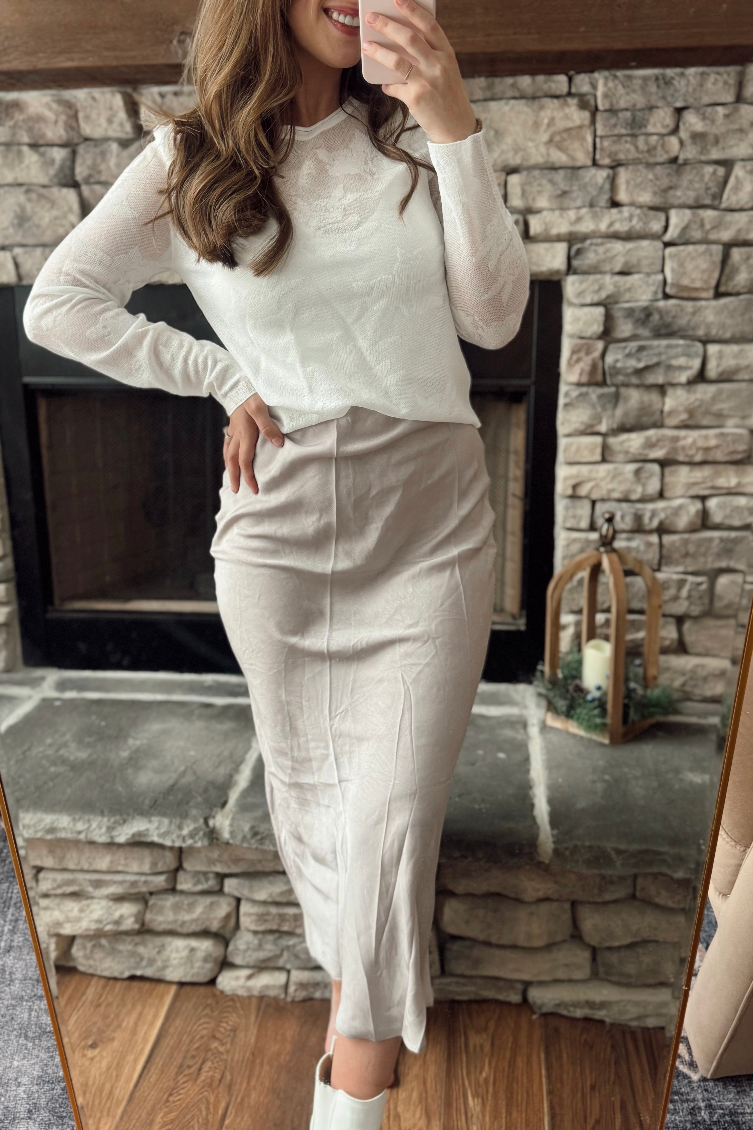 One I Want Dove Grey Satin Crinkle Maxi Skirt