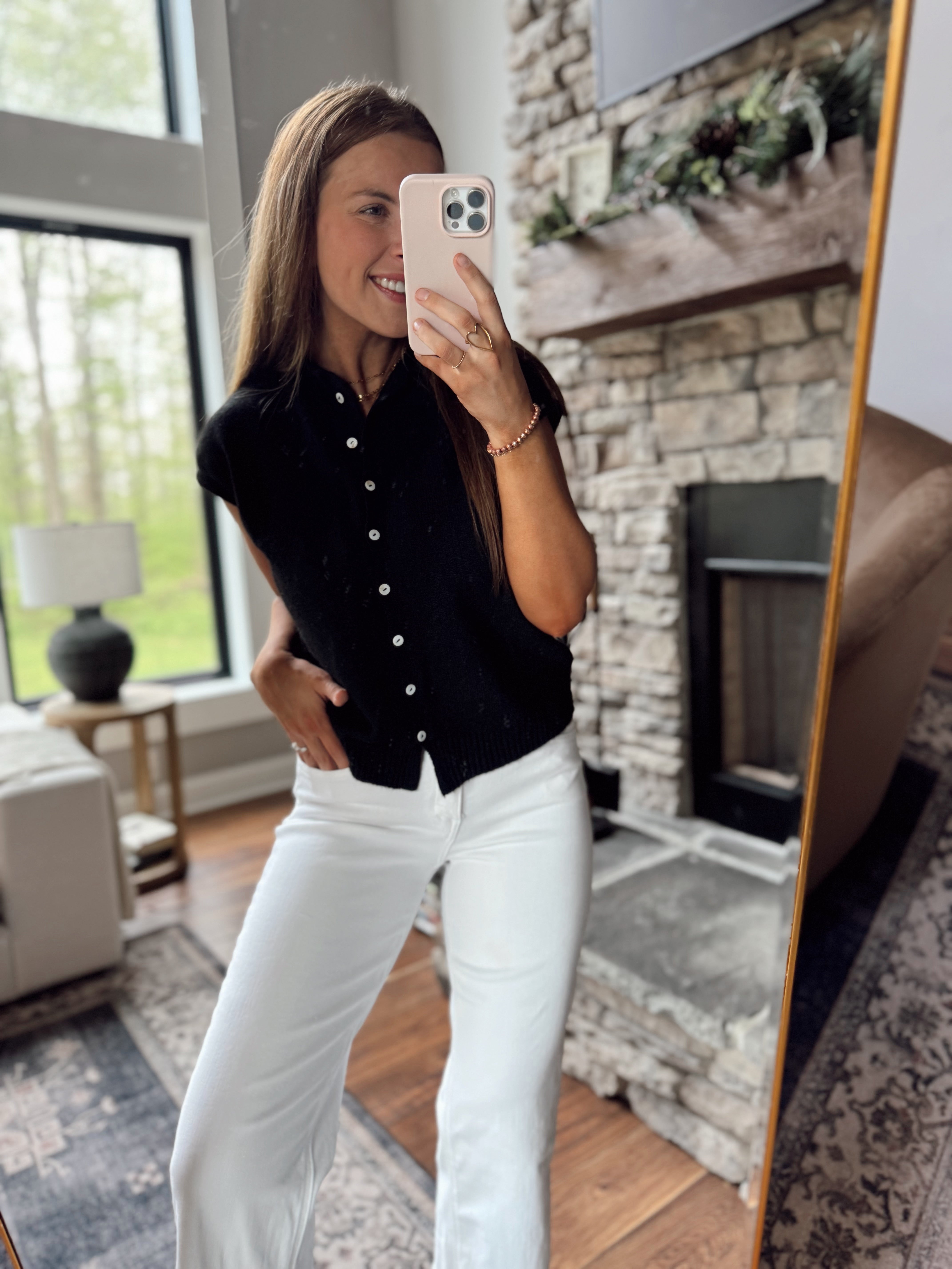 Black Bloom & Button Tank