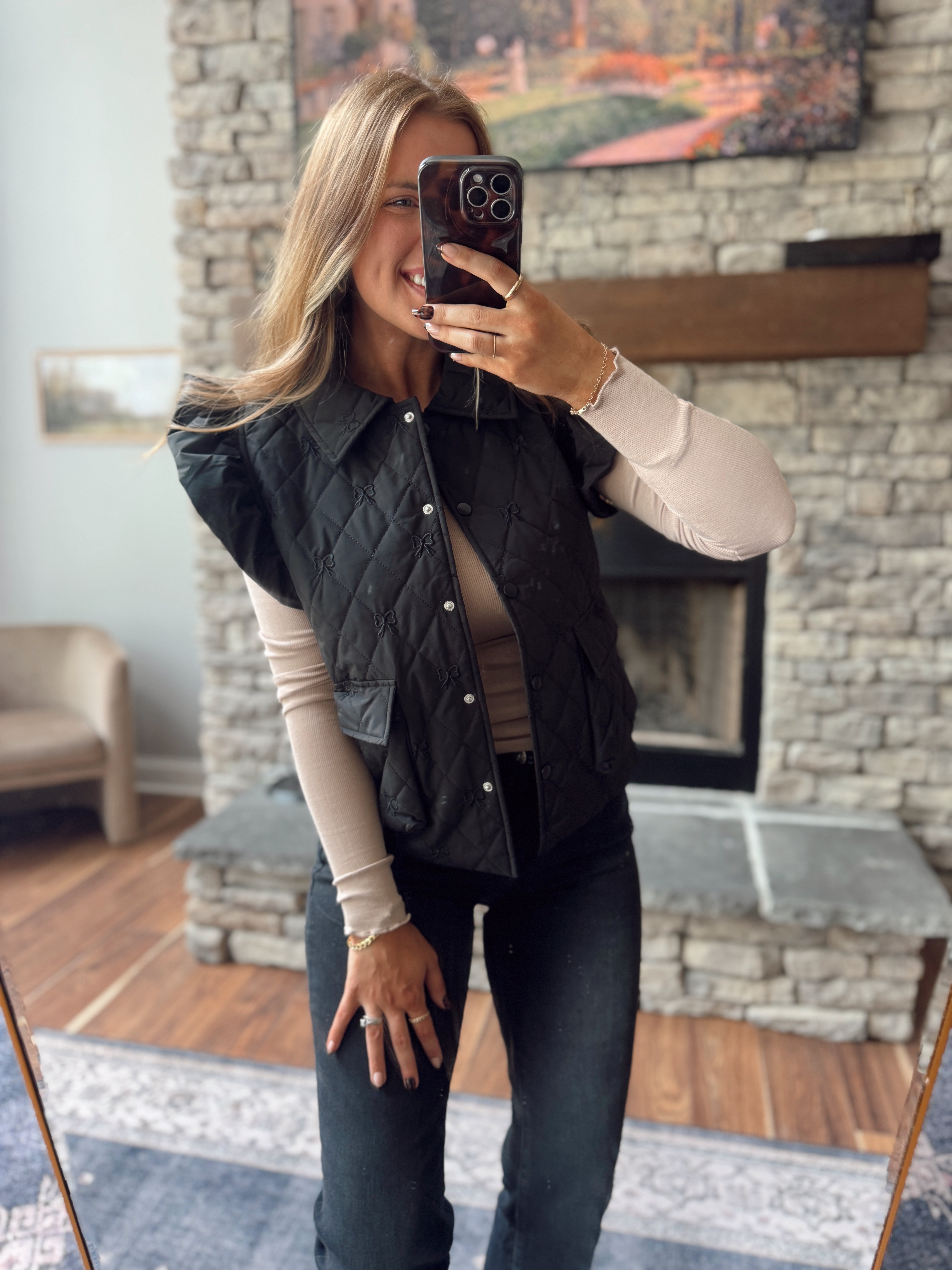 Black Bow Embroidered Quilted Vest