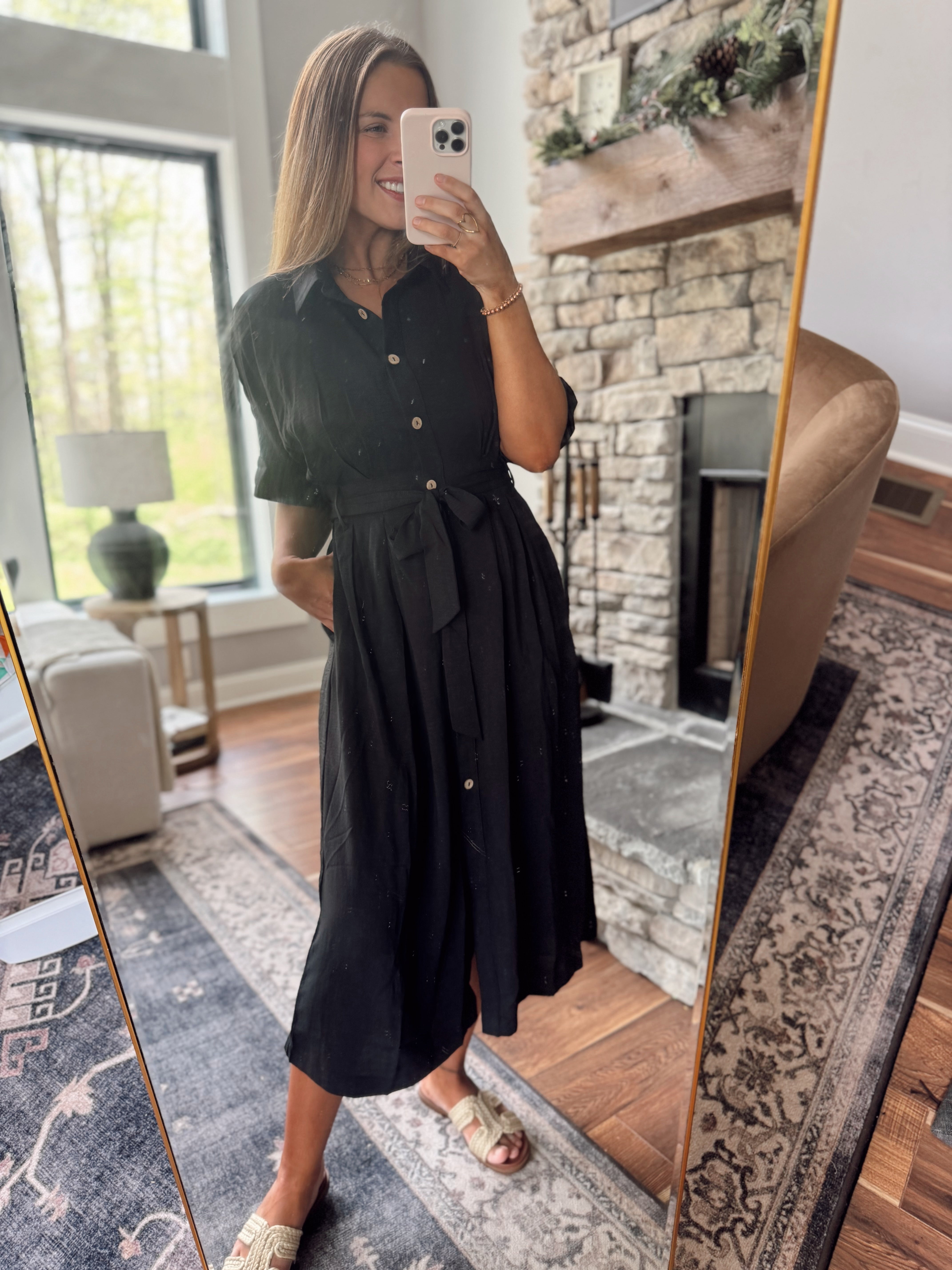 Black Airflow Belted Button Down Midi