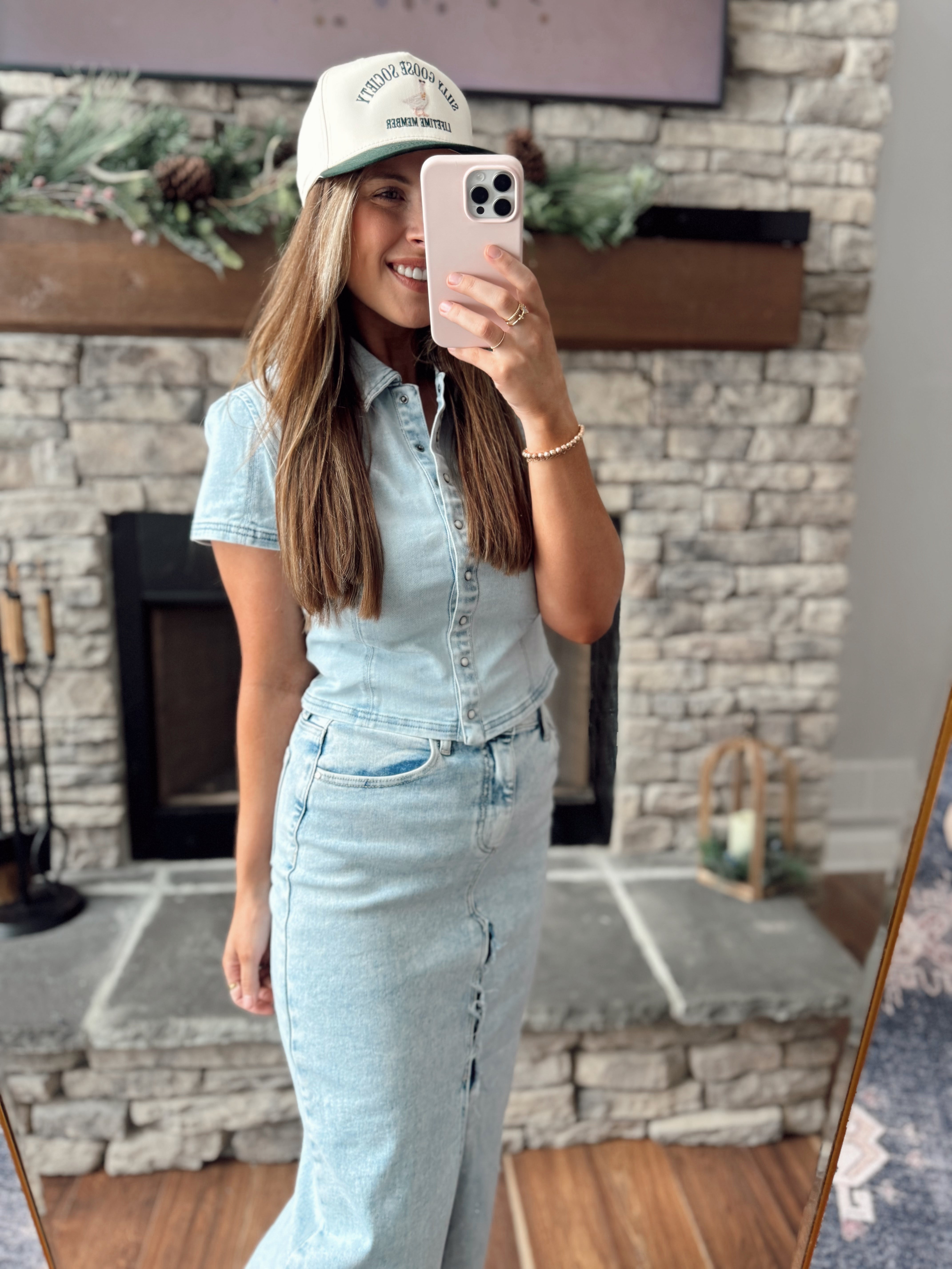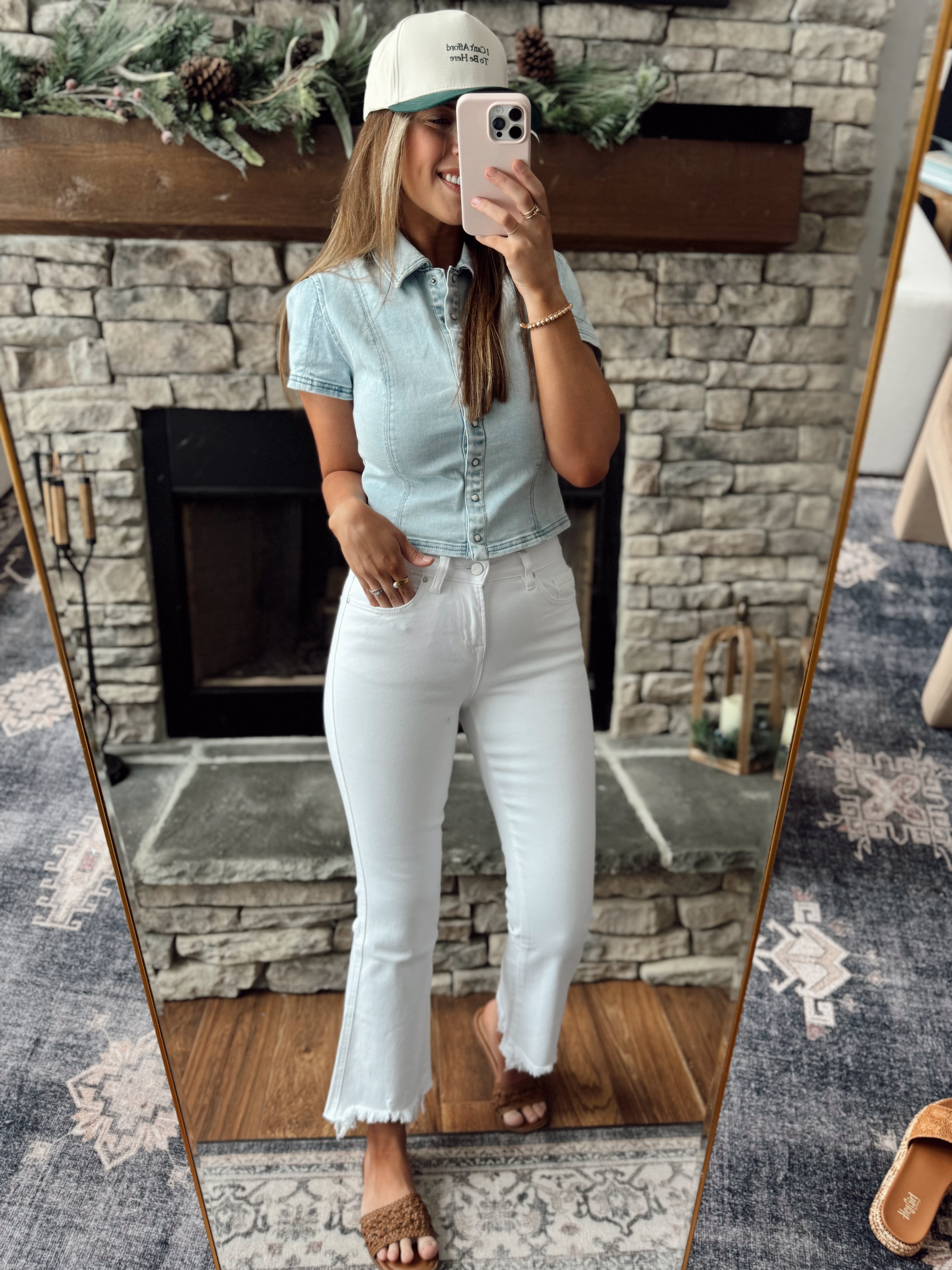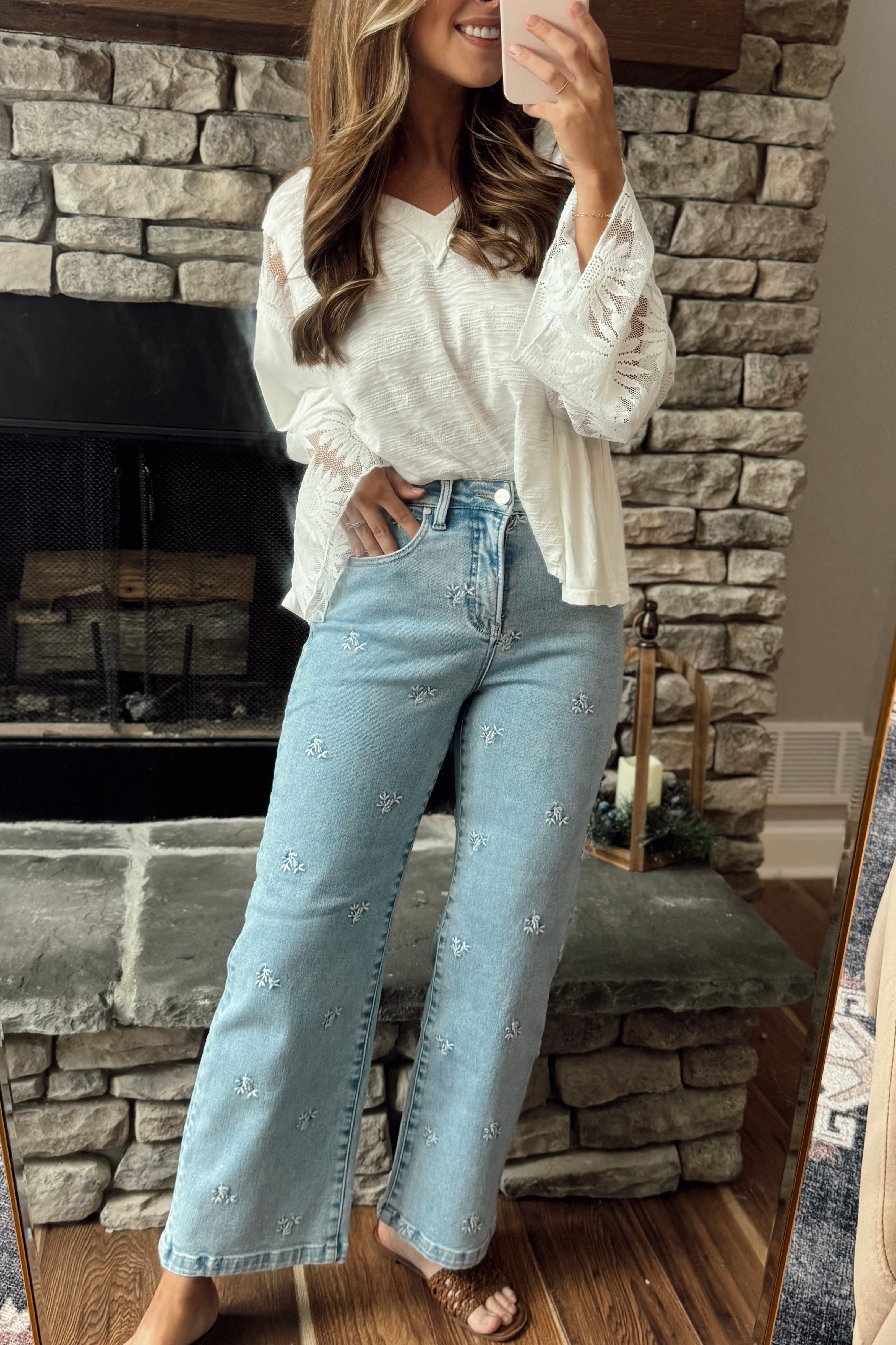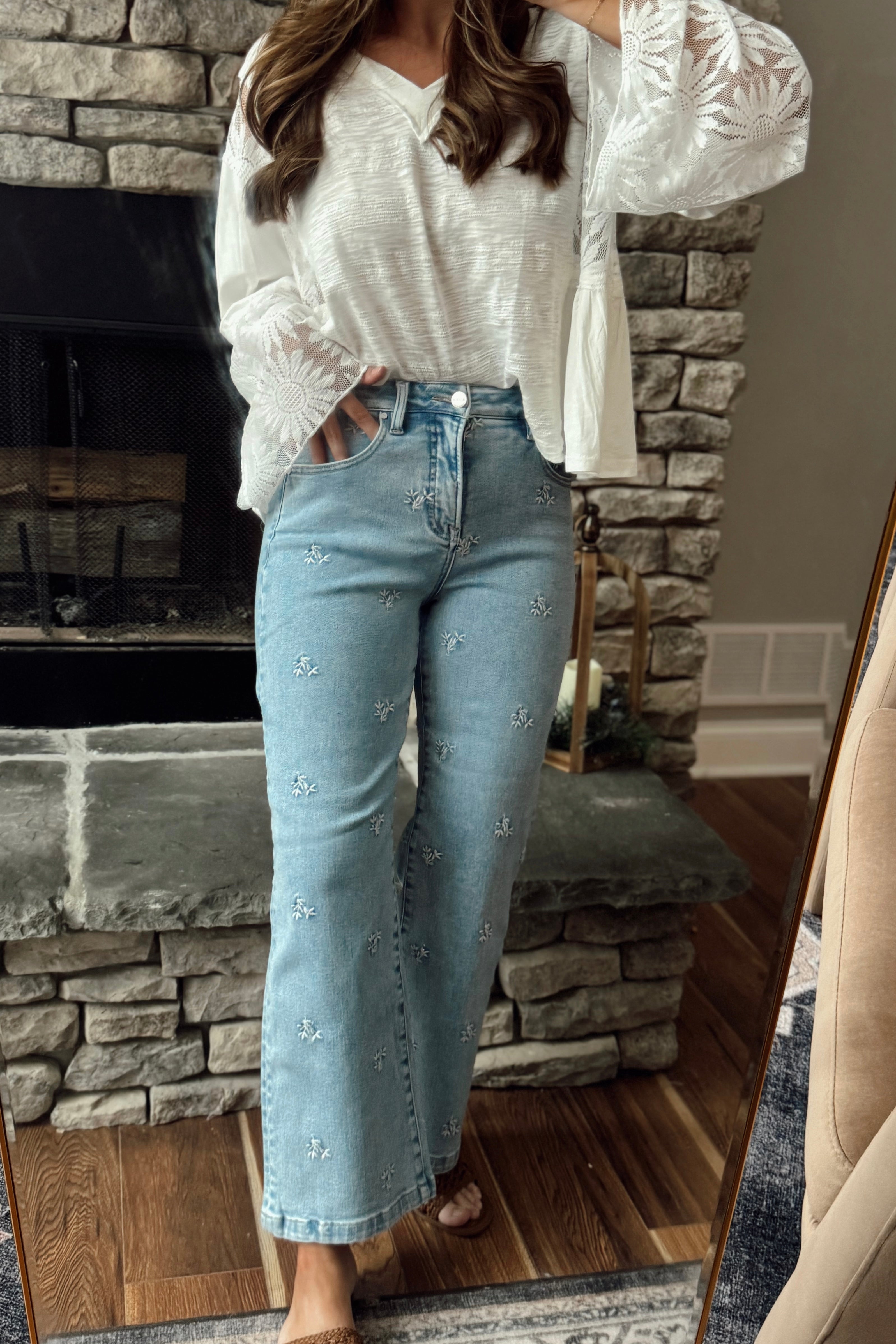 Risen Light HR Cropped Wide Leg Embroidered Denim