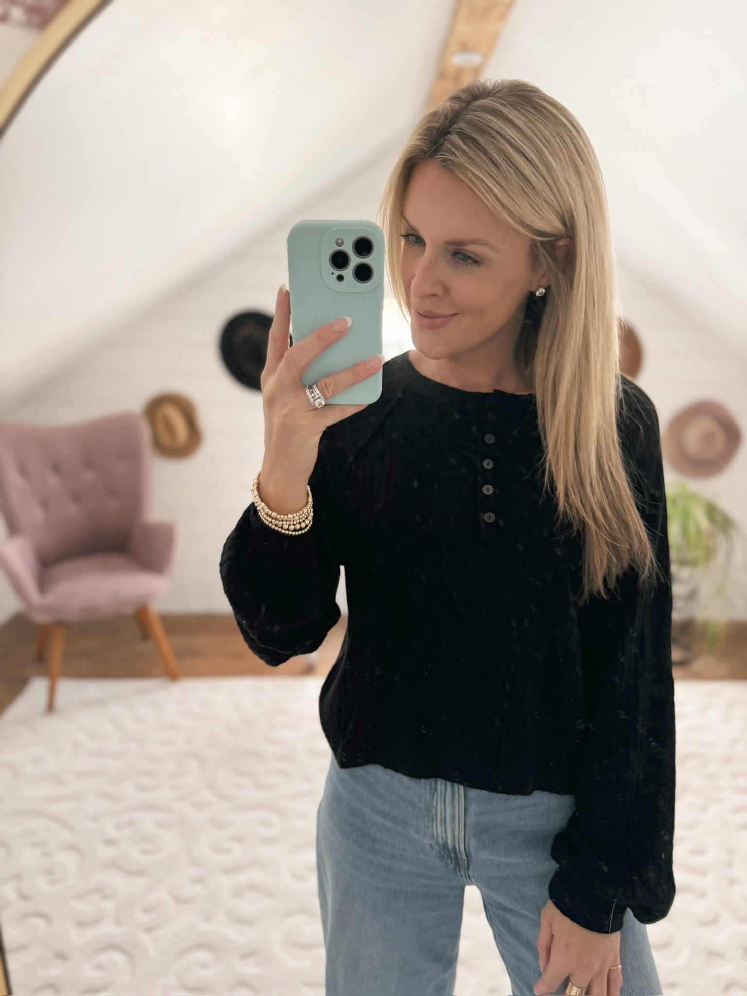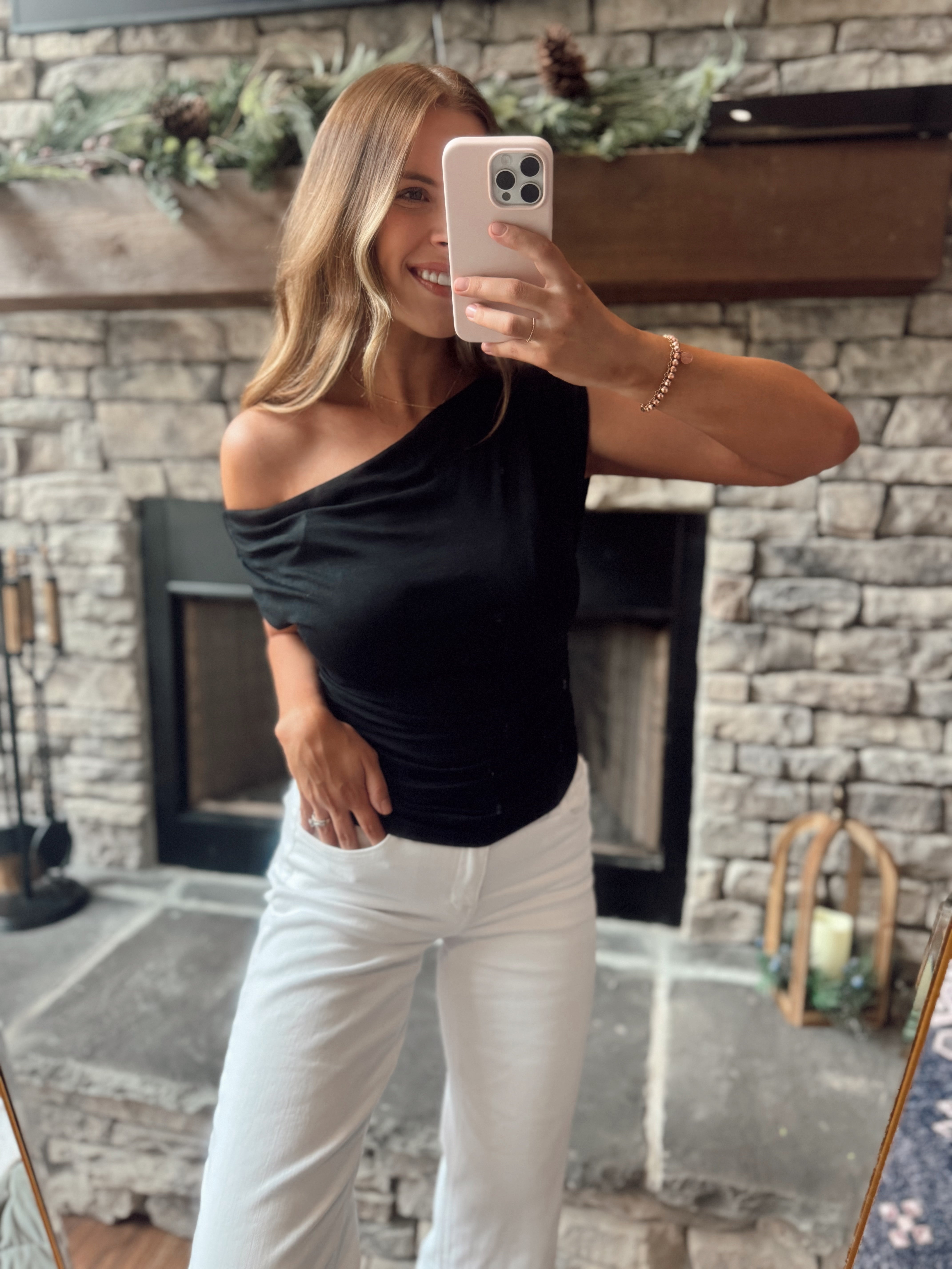 Black Essential Scoop Neck Fitted Ribbed Knit Top