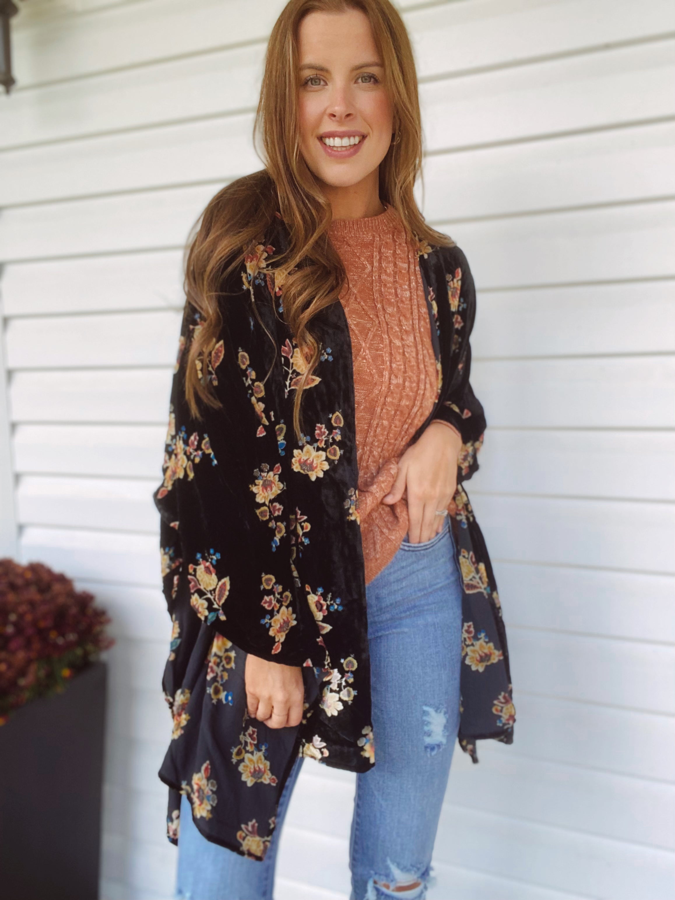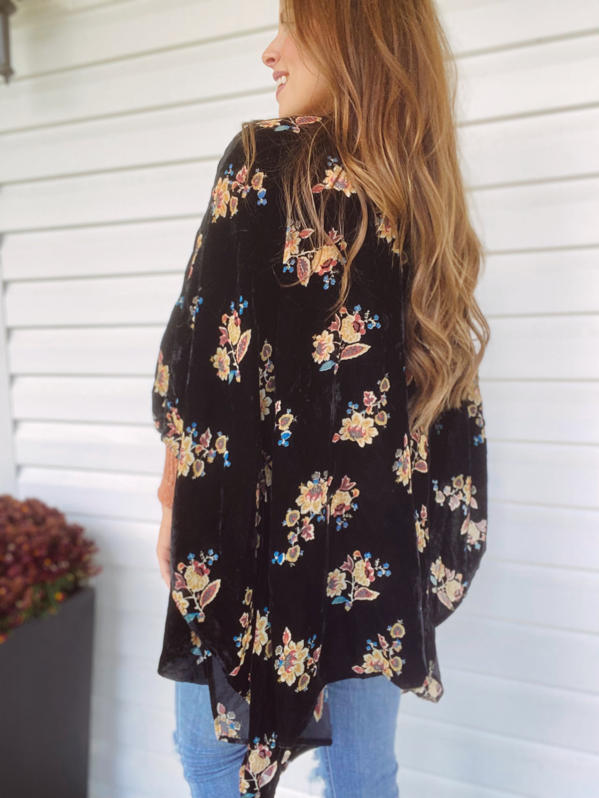 Skylar Black Floral Velvet Kimono