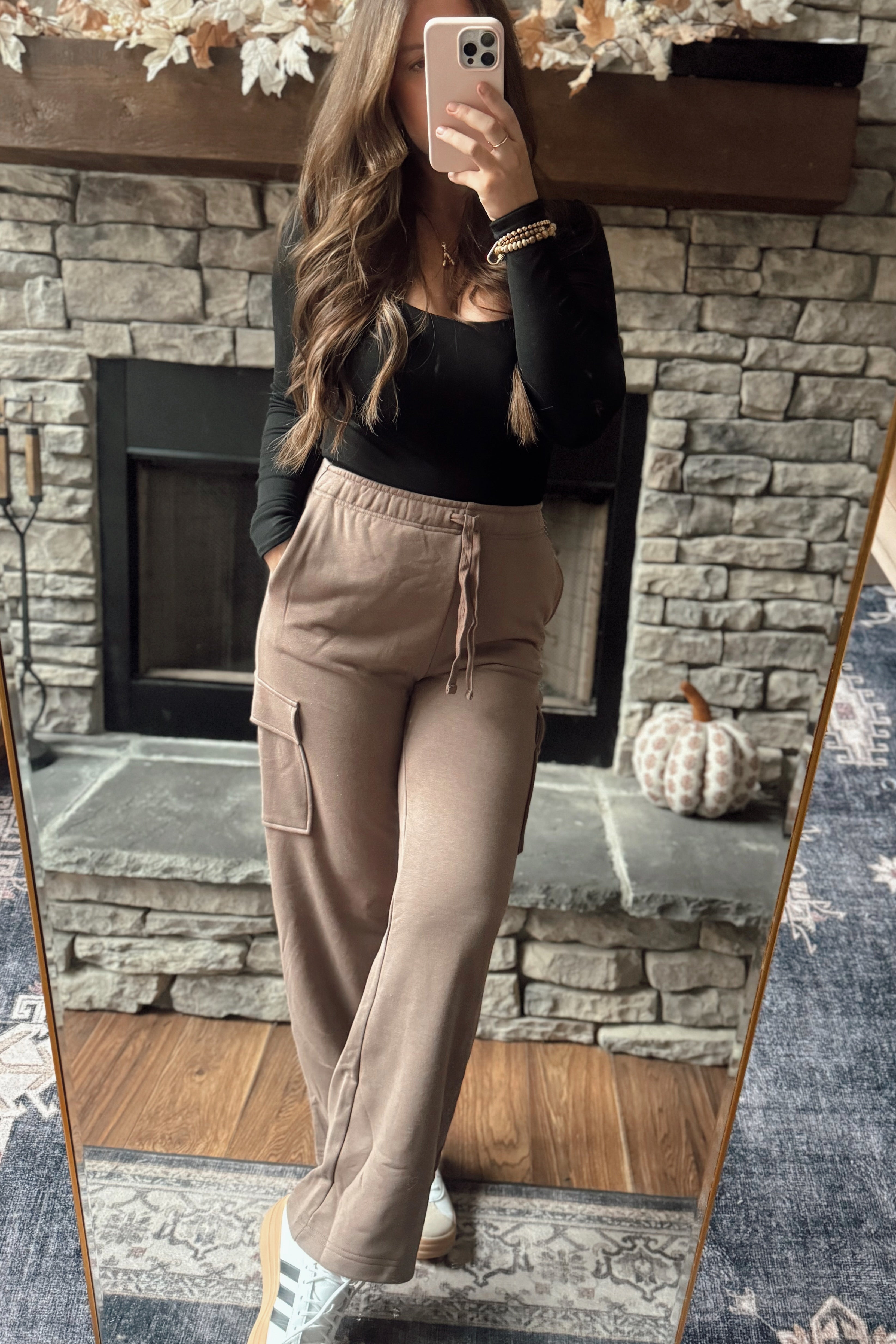 Smoky Brown Chill Weekend French Terry Straight Leg Cargo Sweats