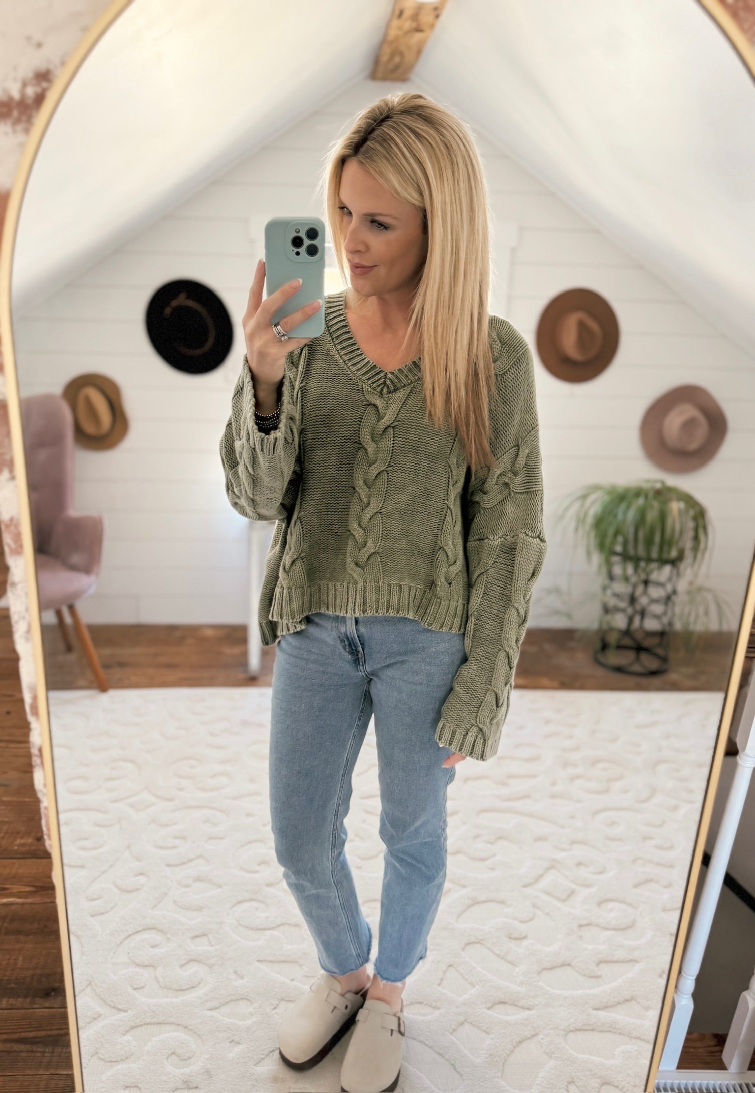 Smokey Olive Cable Knit Sweater