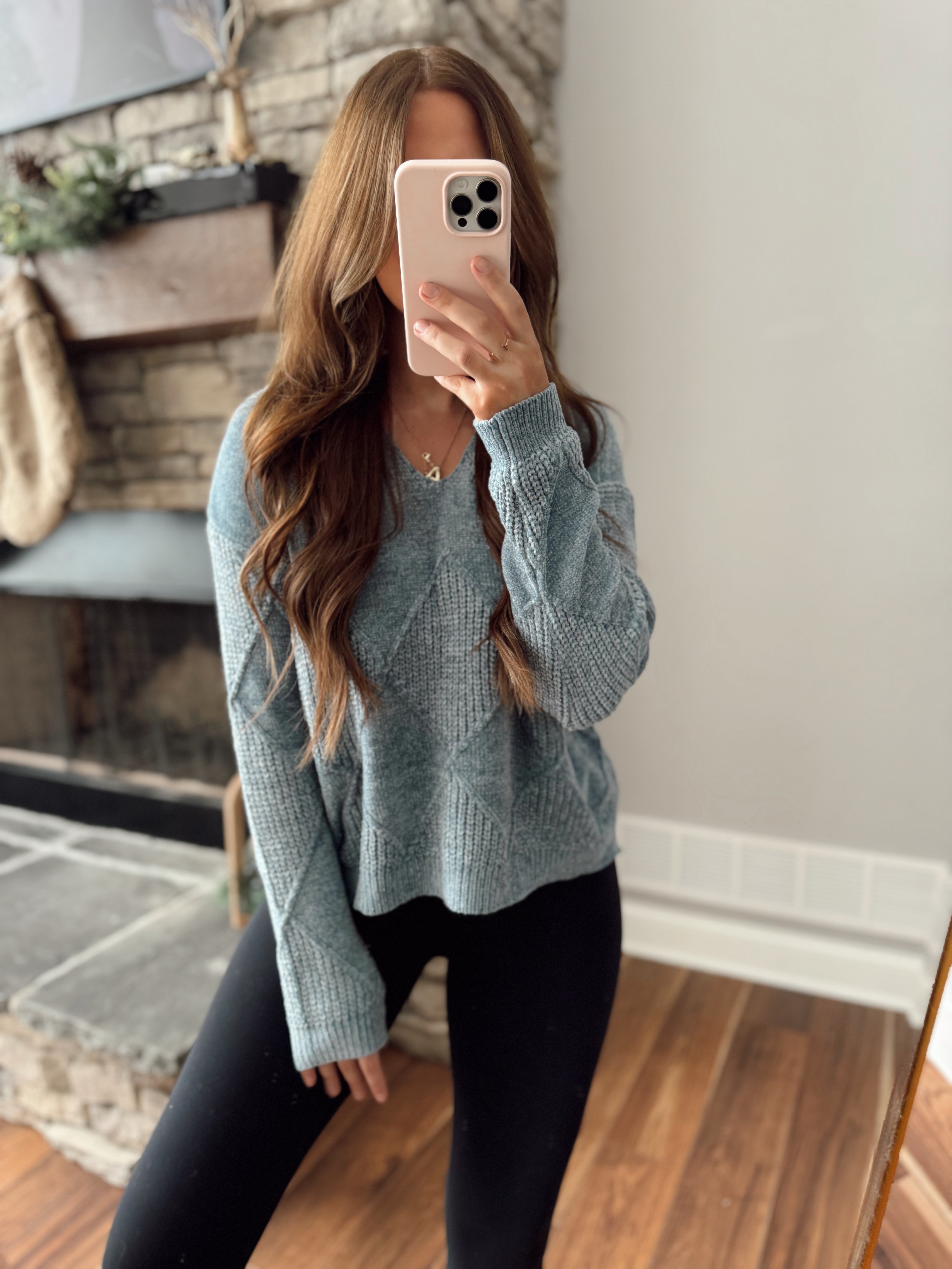 Slate Sleigh Rides Chenille Yarn Cozy Knit Sweater
