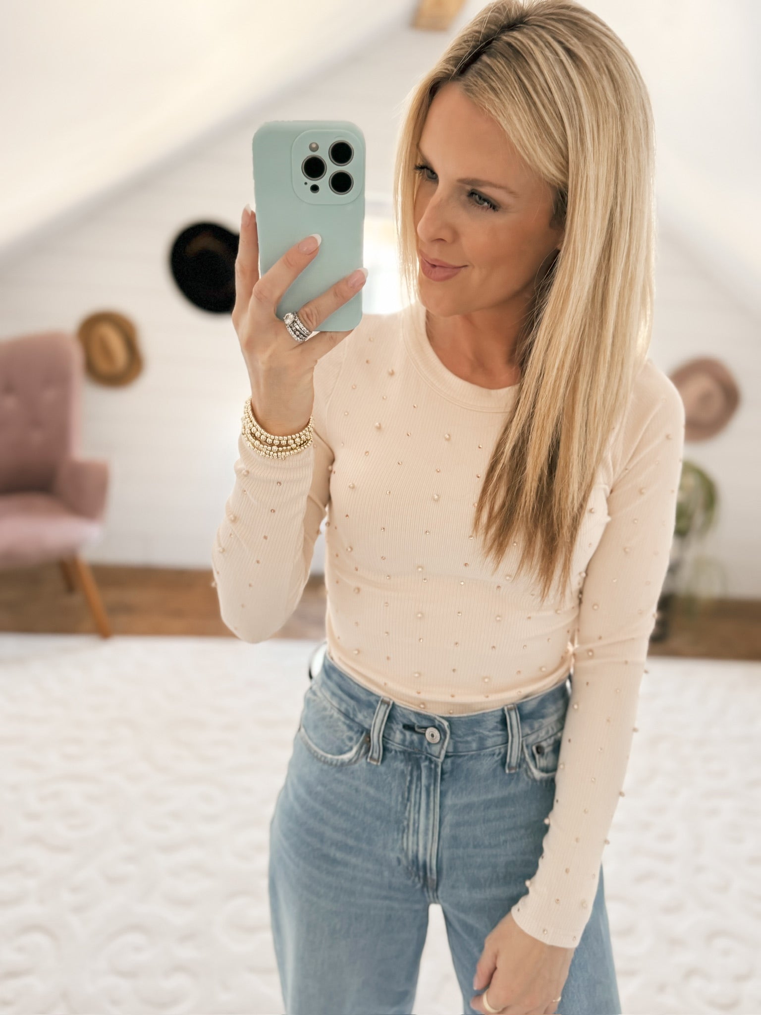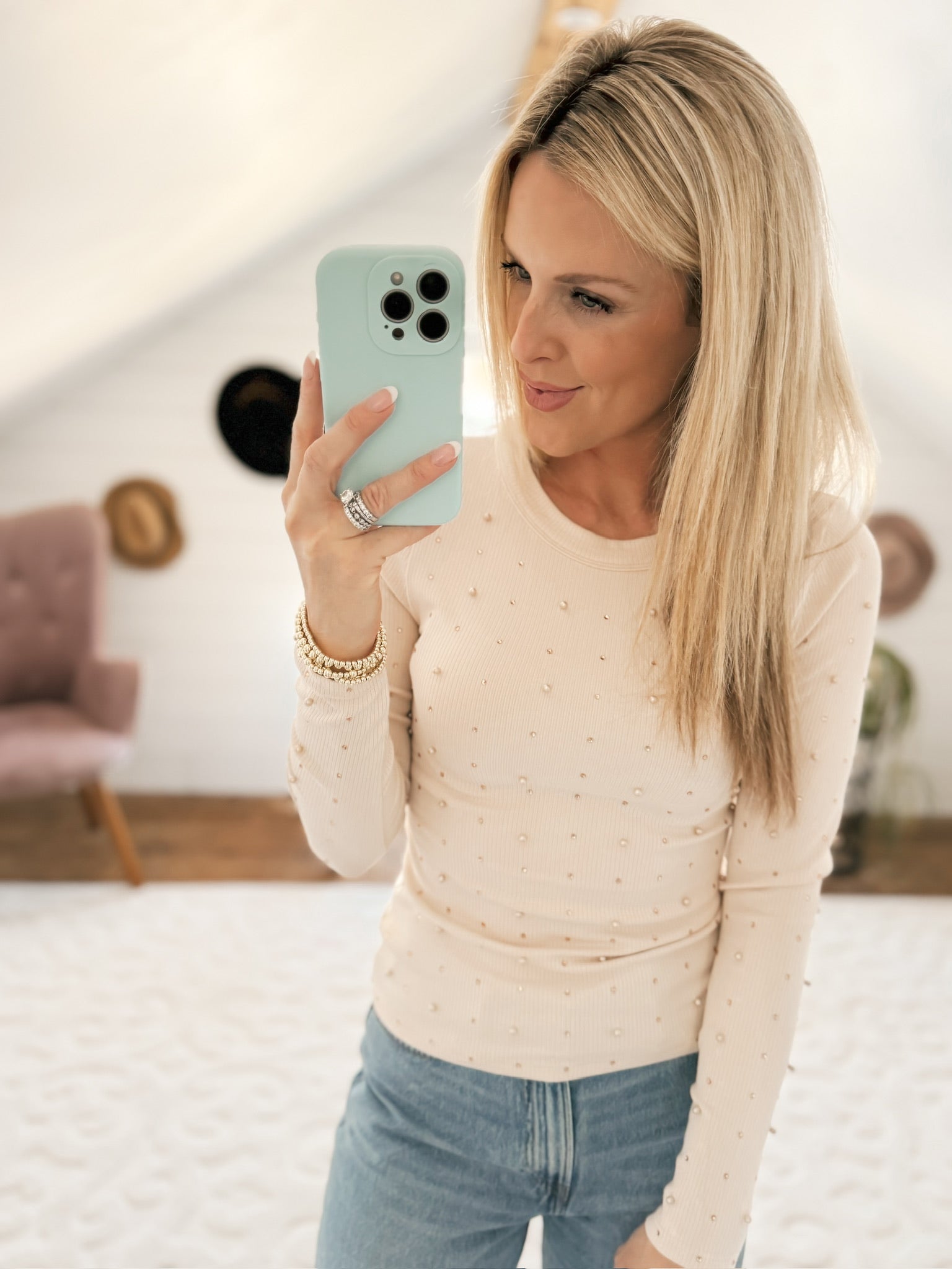 Spotlight Bling Ivory Rhinestone Knit Turtleneck