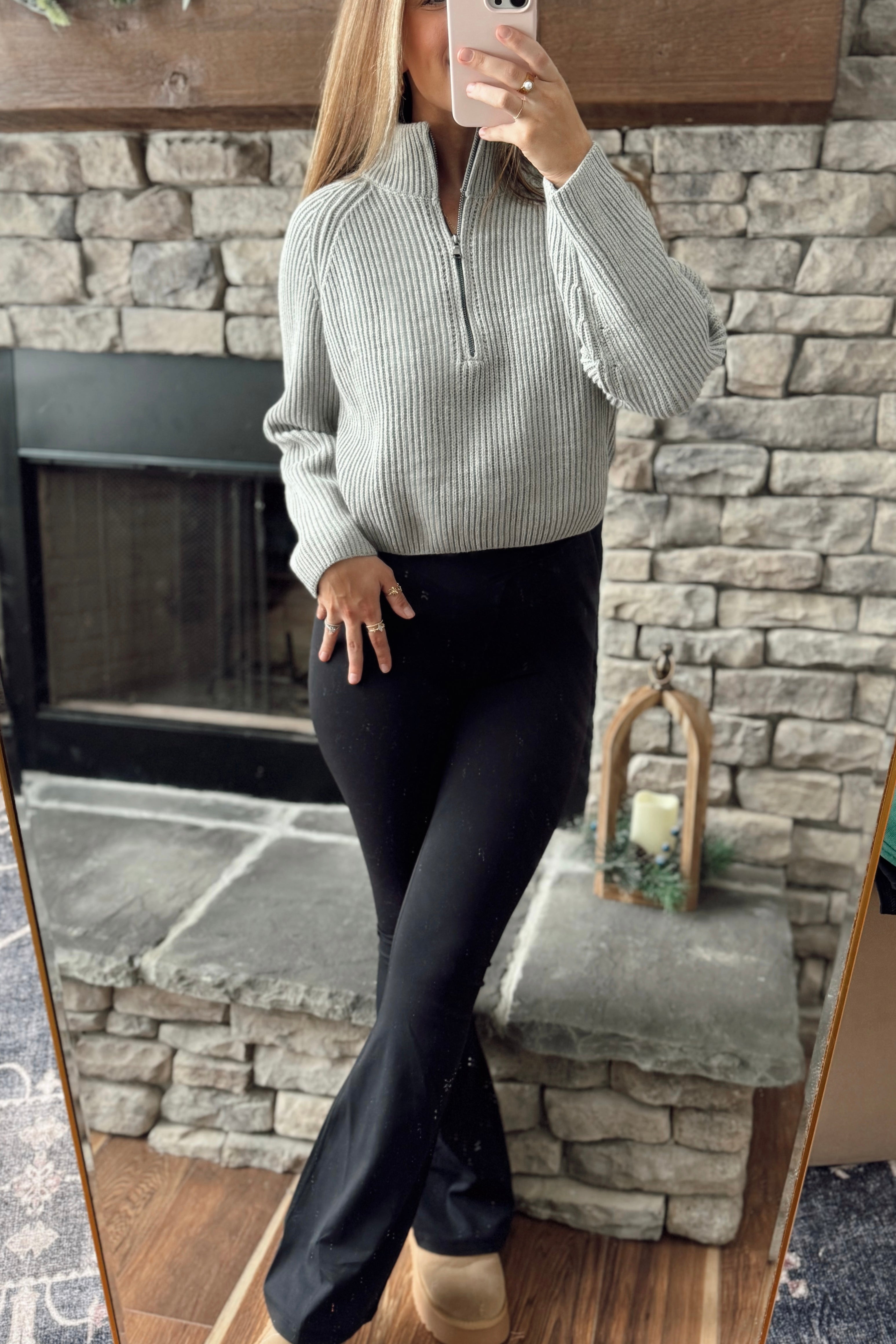 Straight Up Heather Grey Cropped Half Zip Knit Sweater