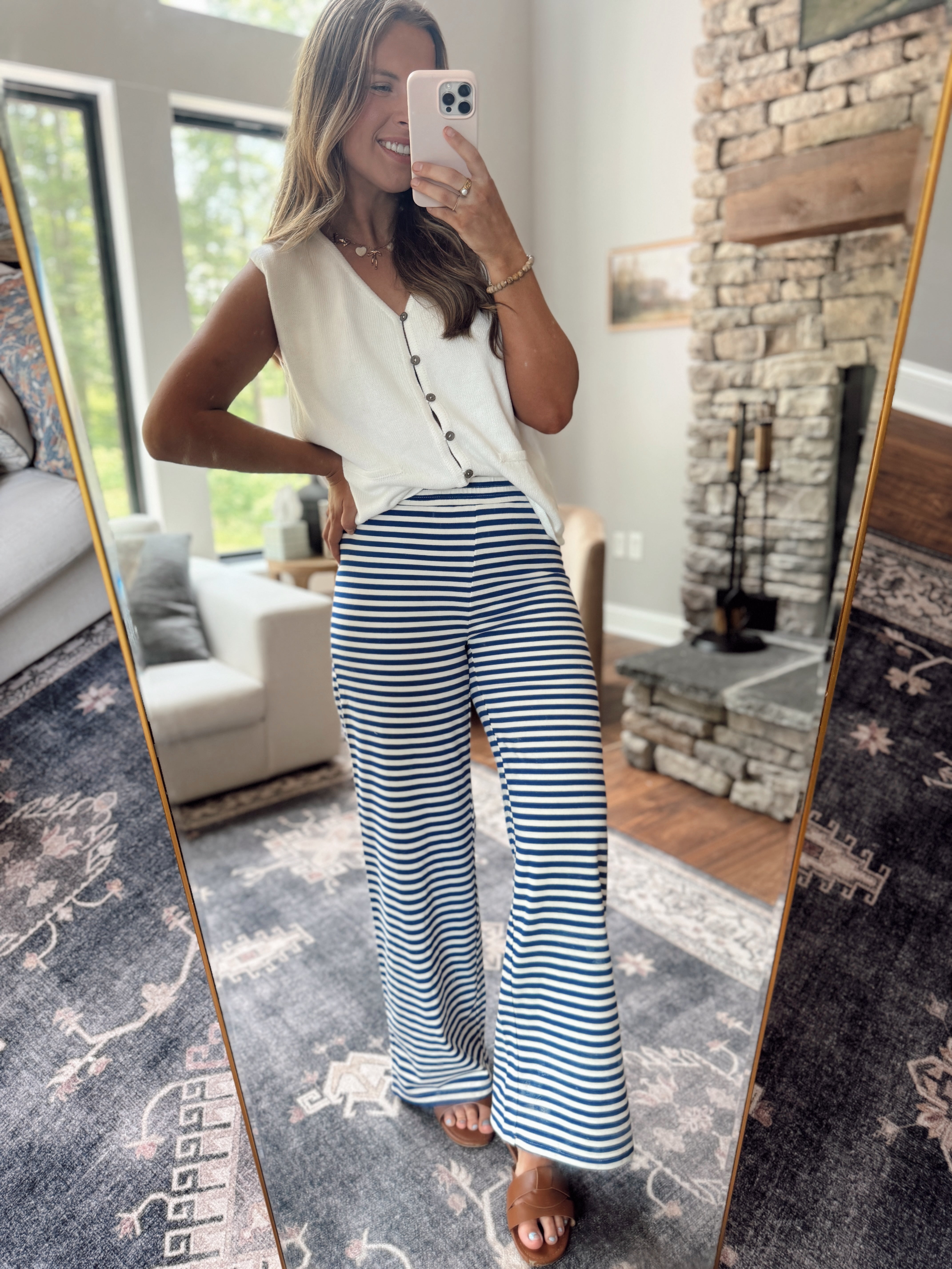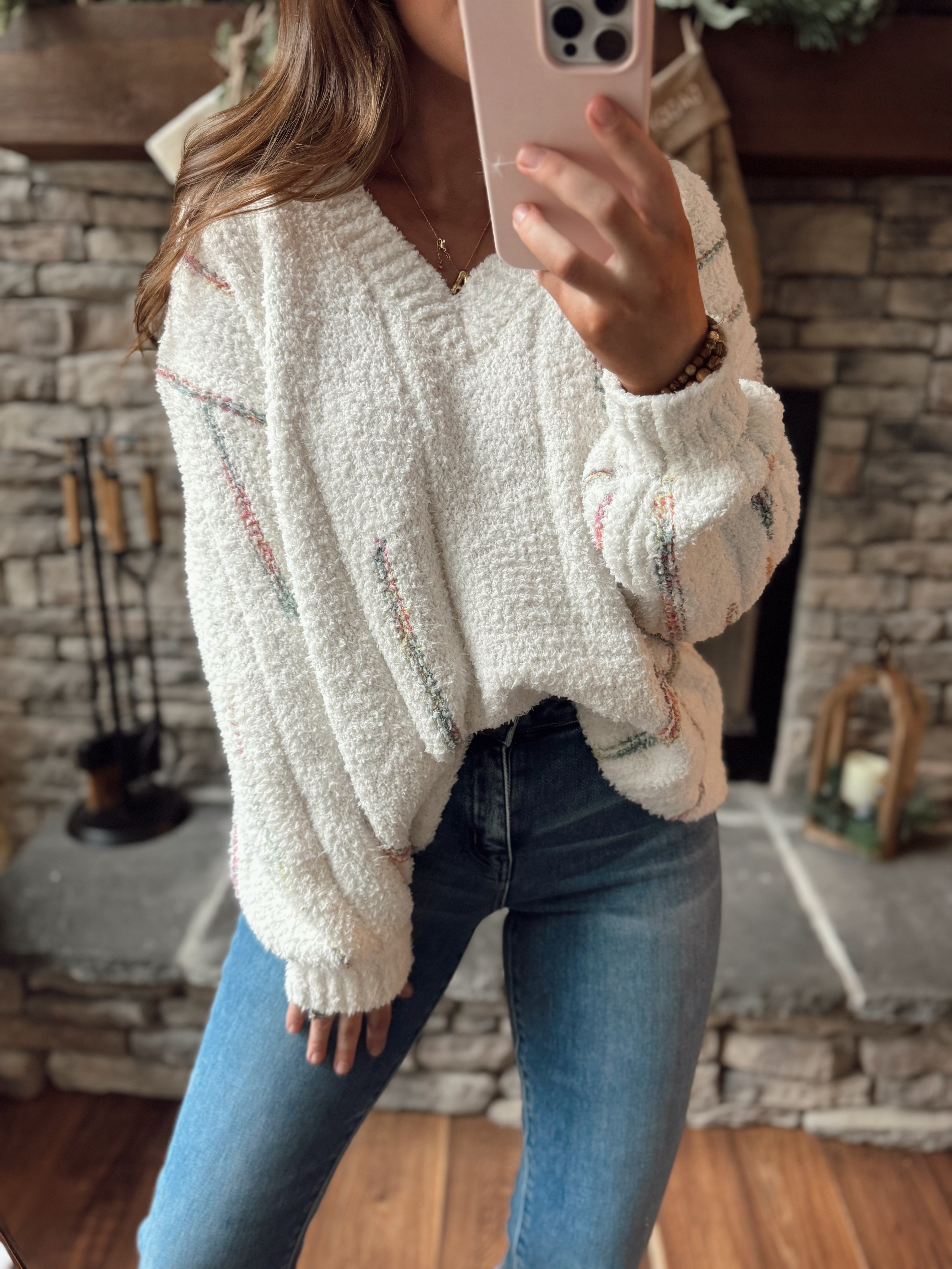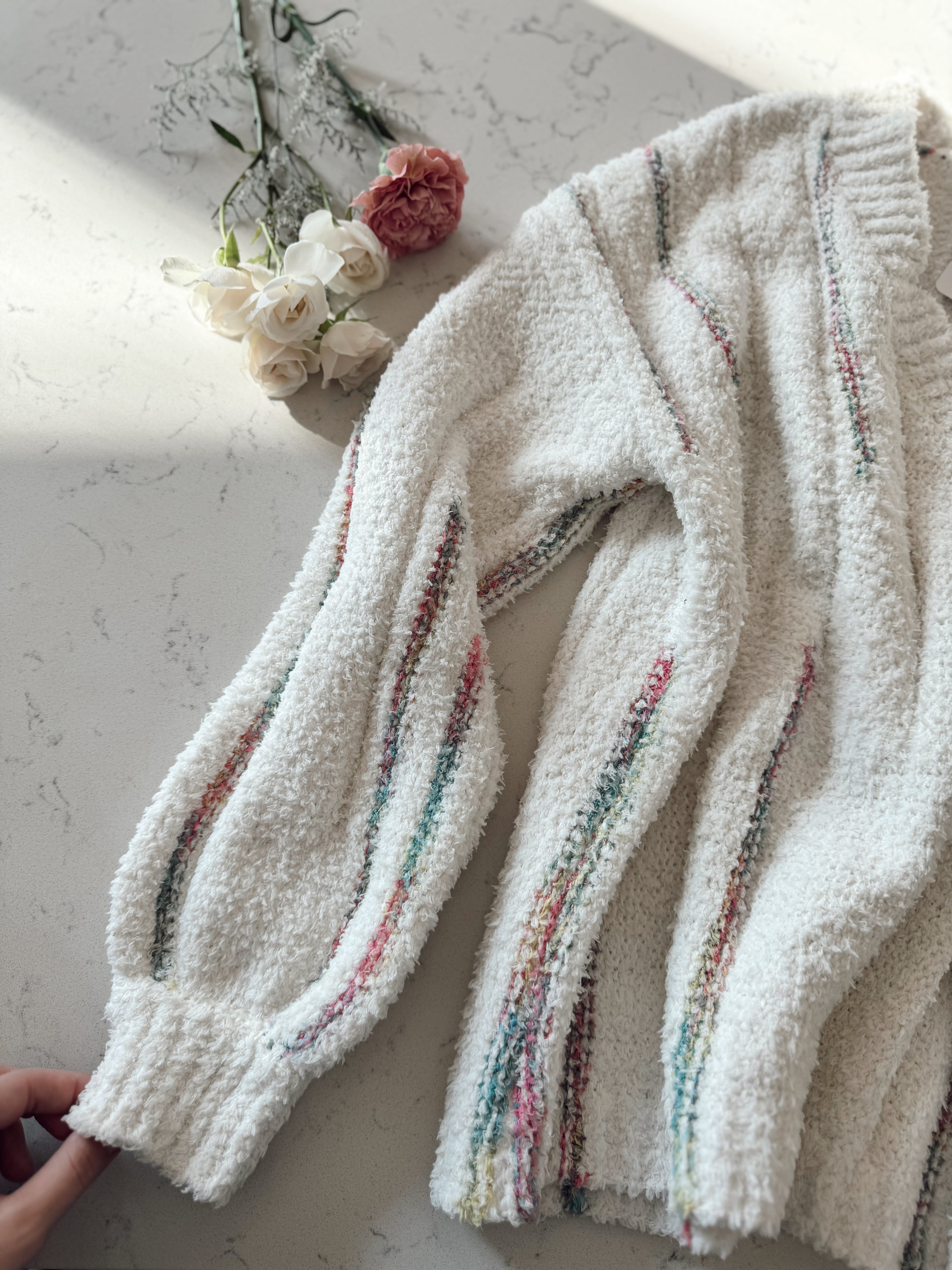Stripes of Many Colors Ivory Oversized V-Neck Striped Sweater