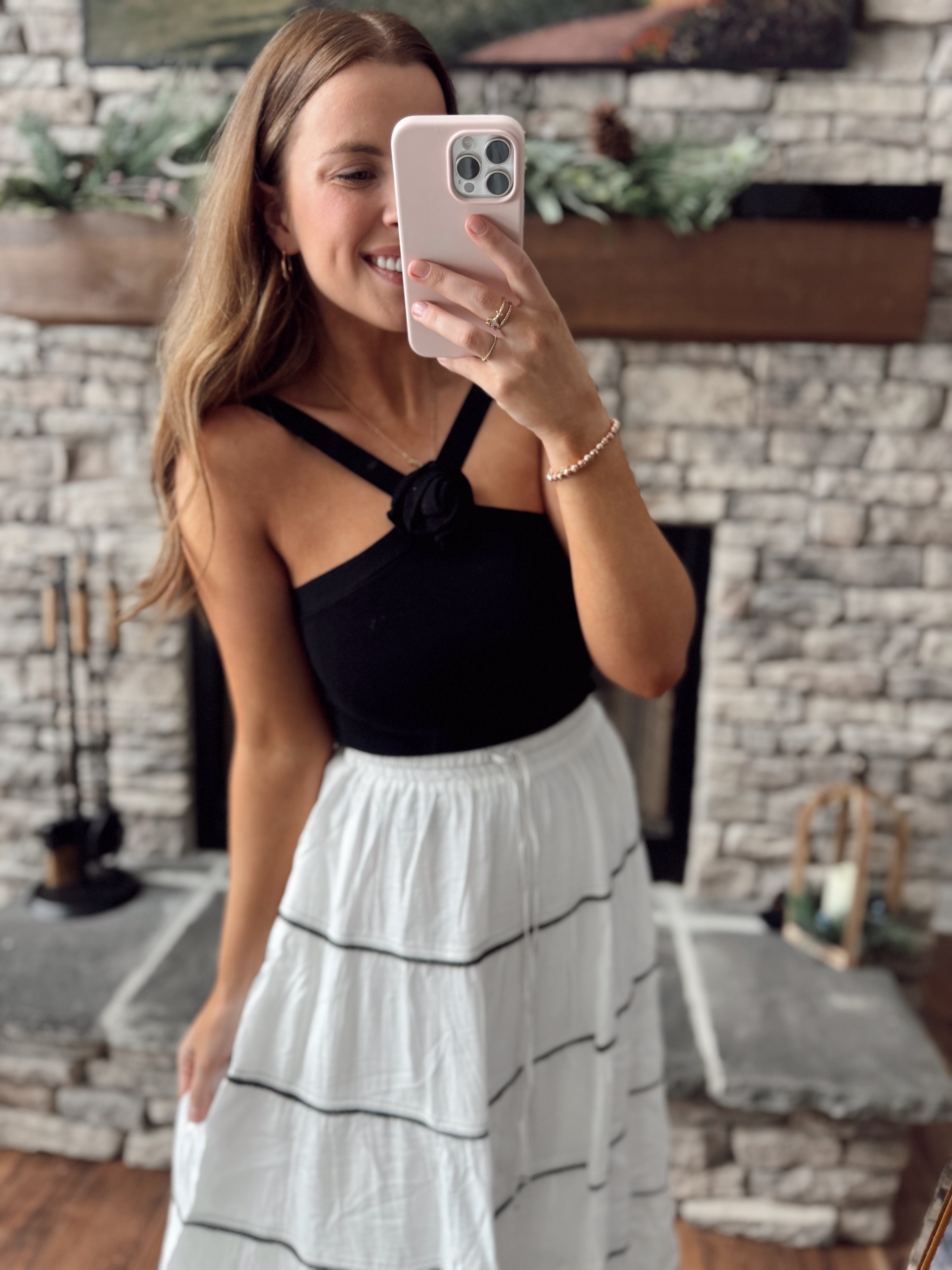 Sweet Fling Black Flower Detail Halter Neck Knit Tank