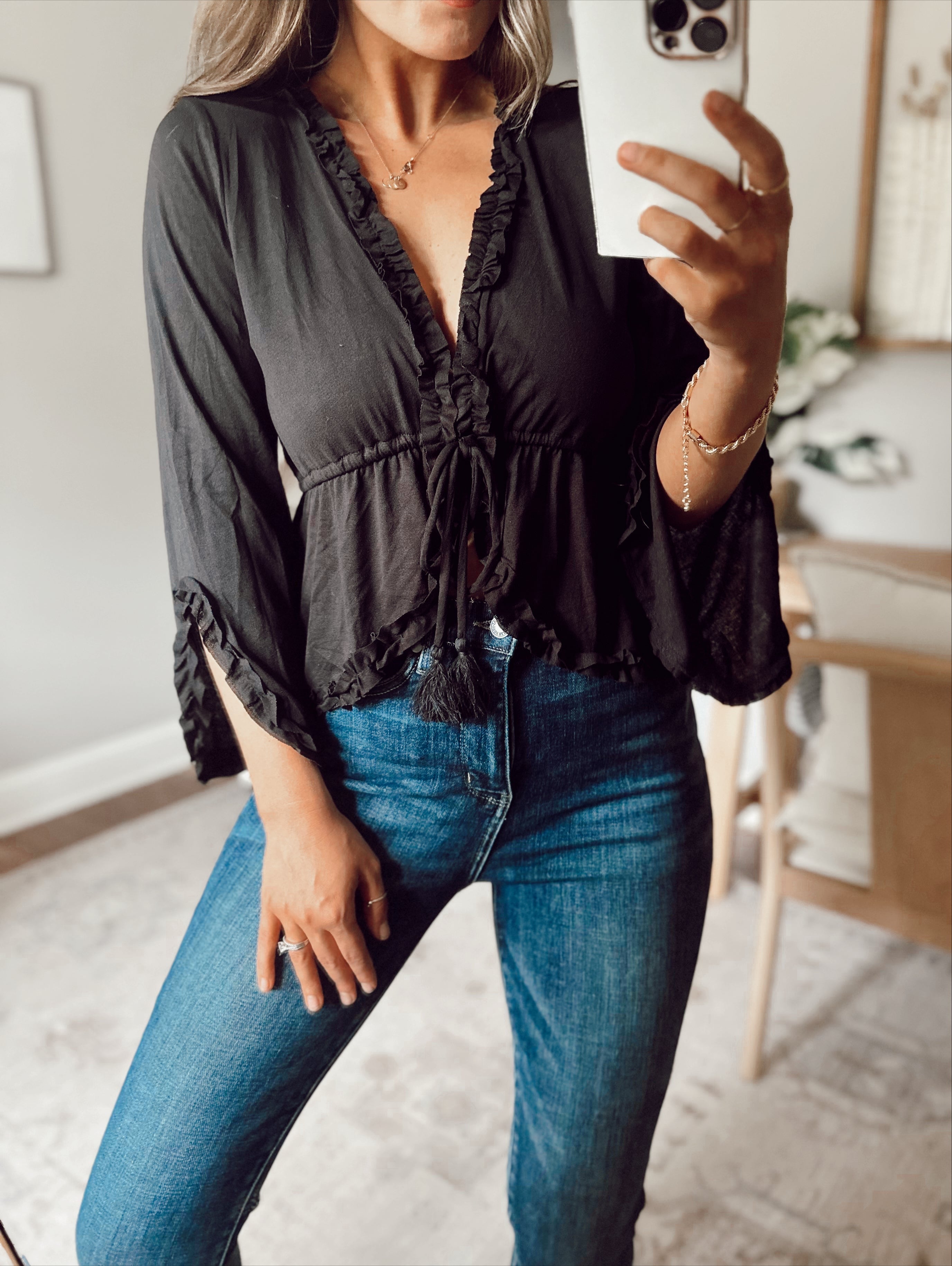 Sweet Attractions Black Ruffled Babydoll Cardi