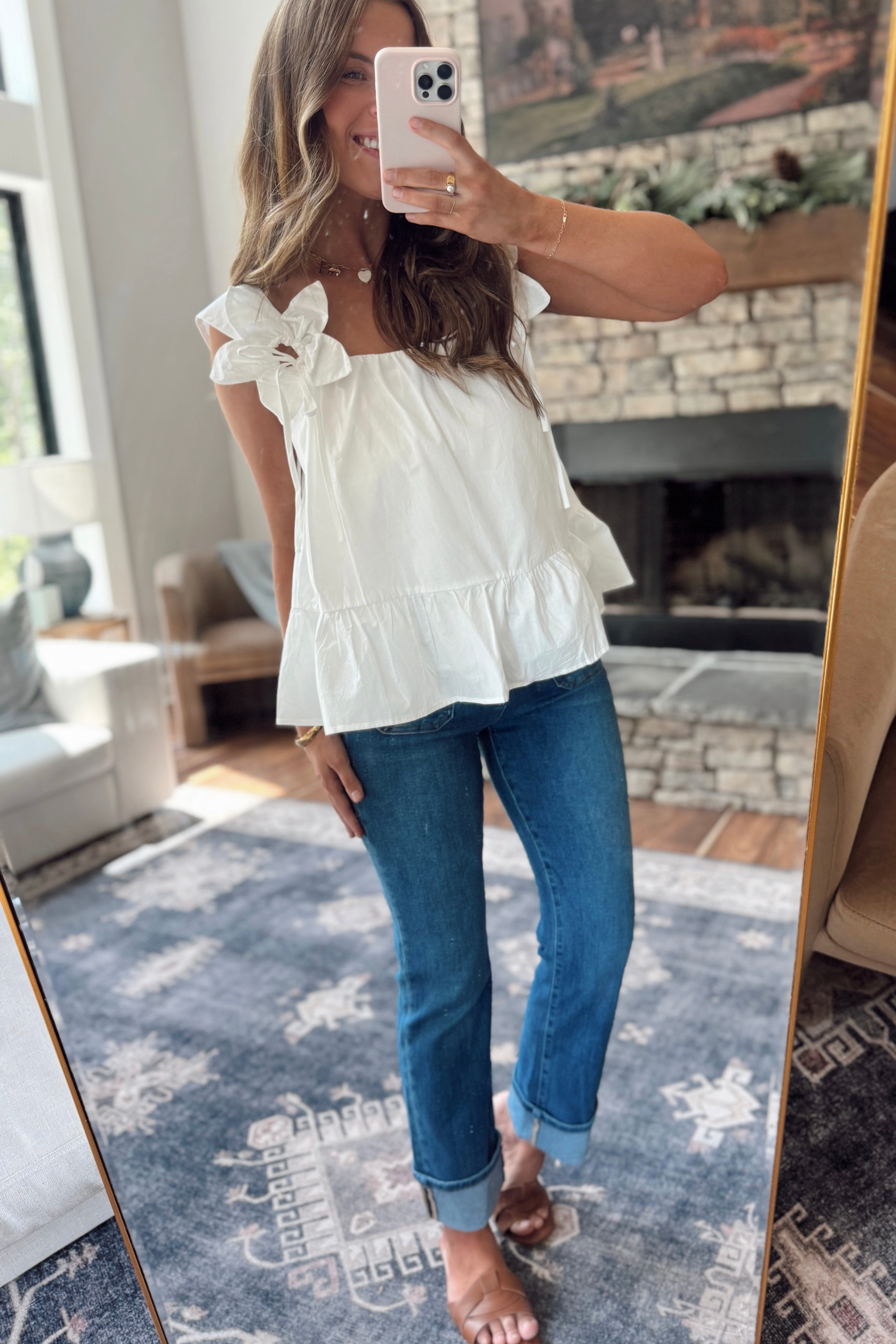 Sweet & Pure Off White 3D Flower Peplum Tank