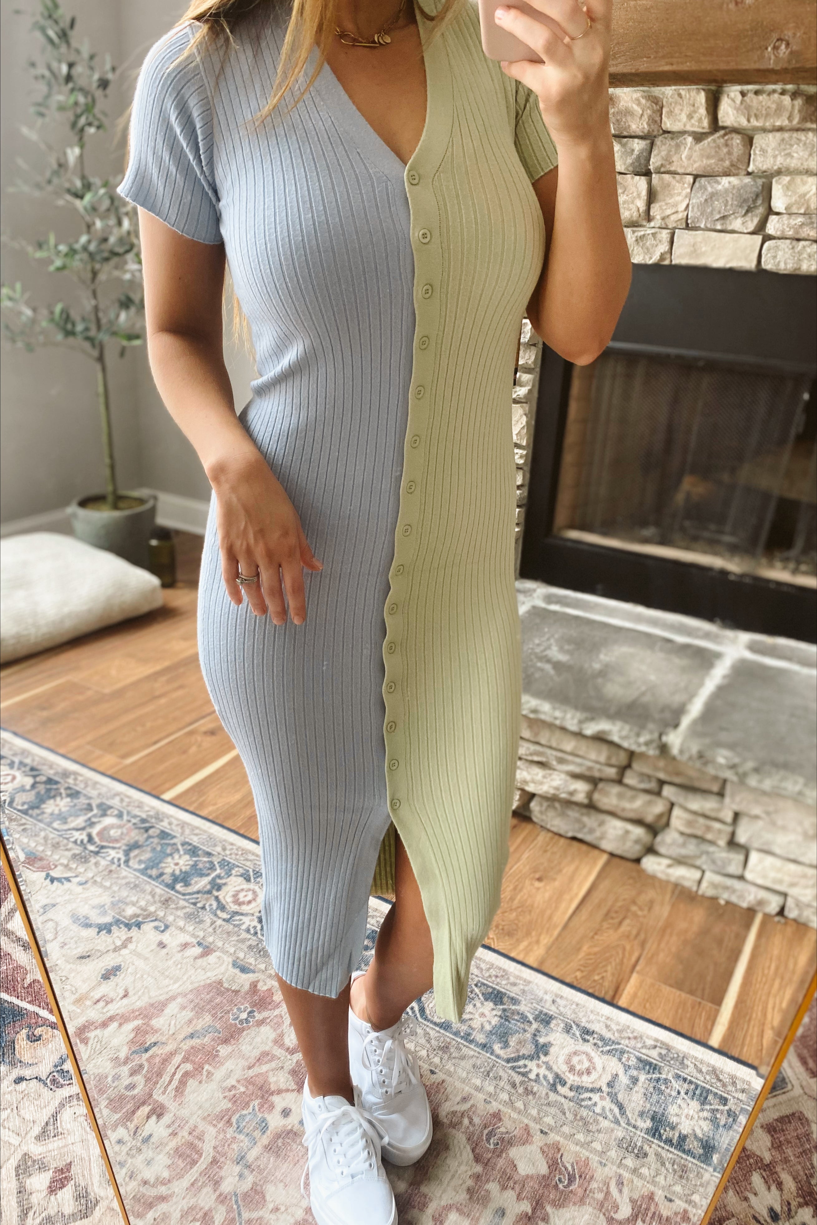 Sweet Arrival Sage/ Baby Blue Colorblock Sweater Dress