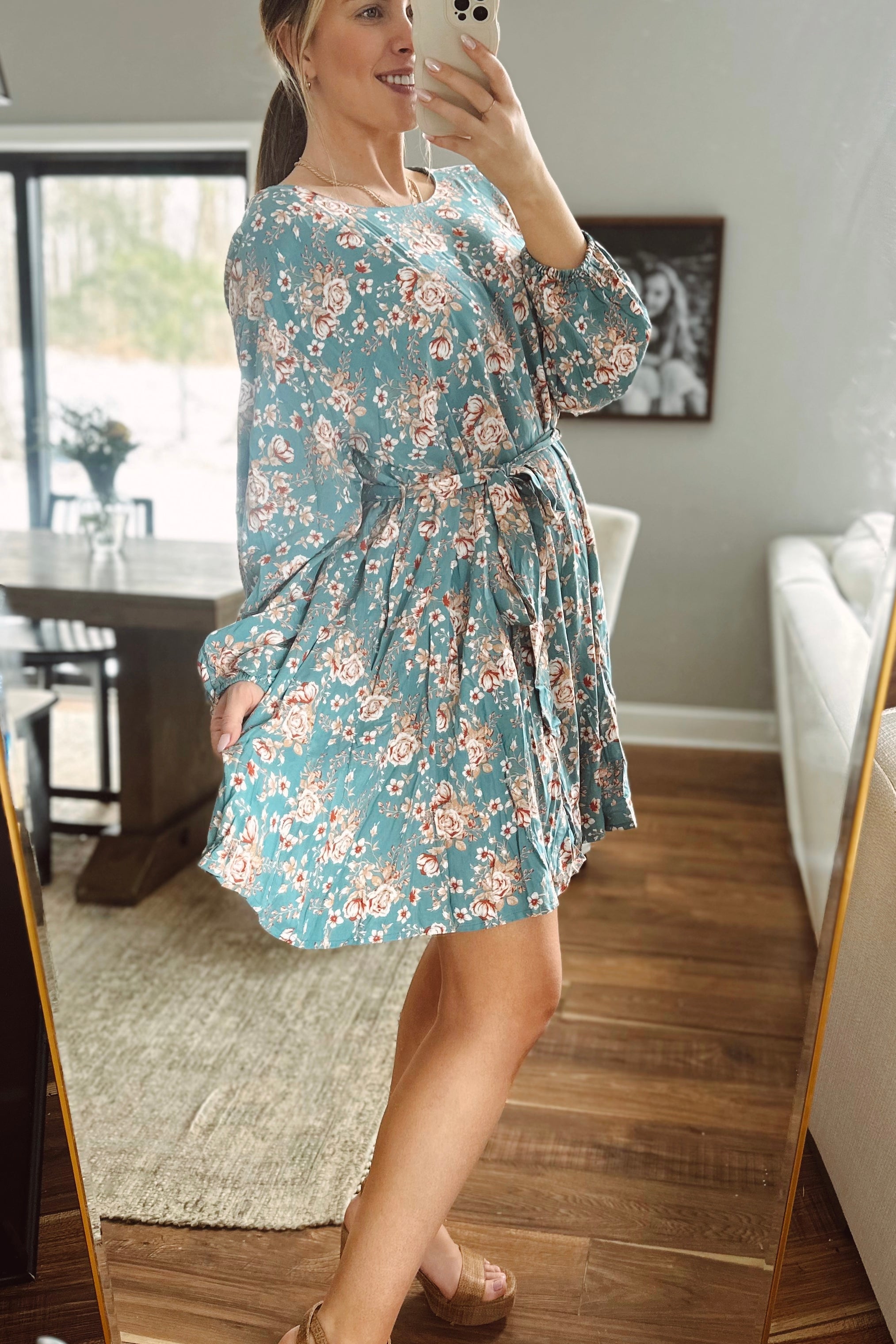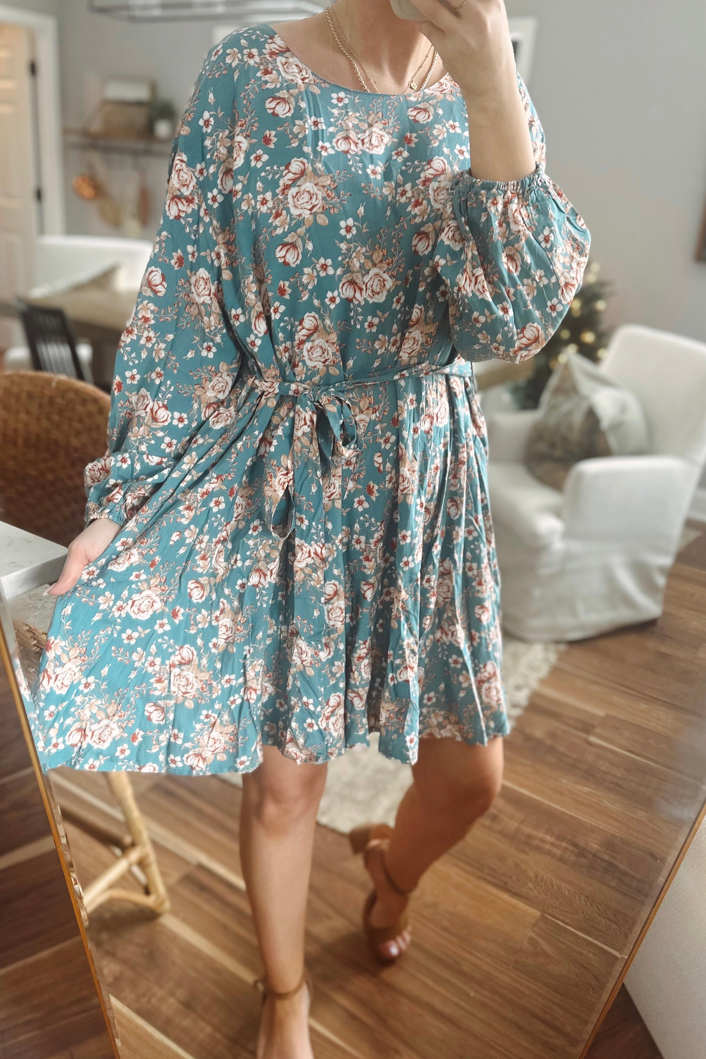 Sweet Tea Teal Floral Tie-Waist Mini