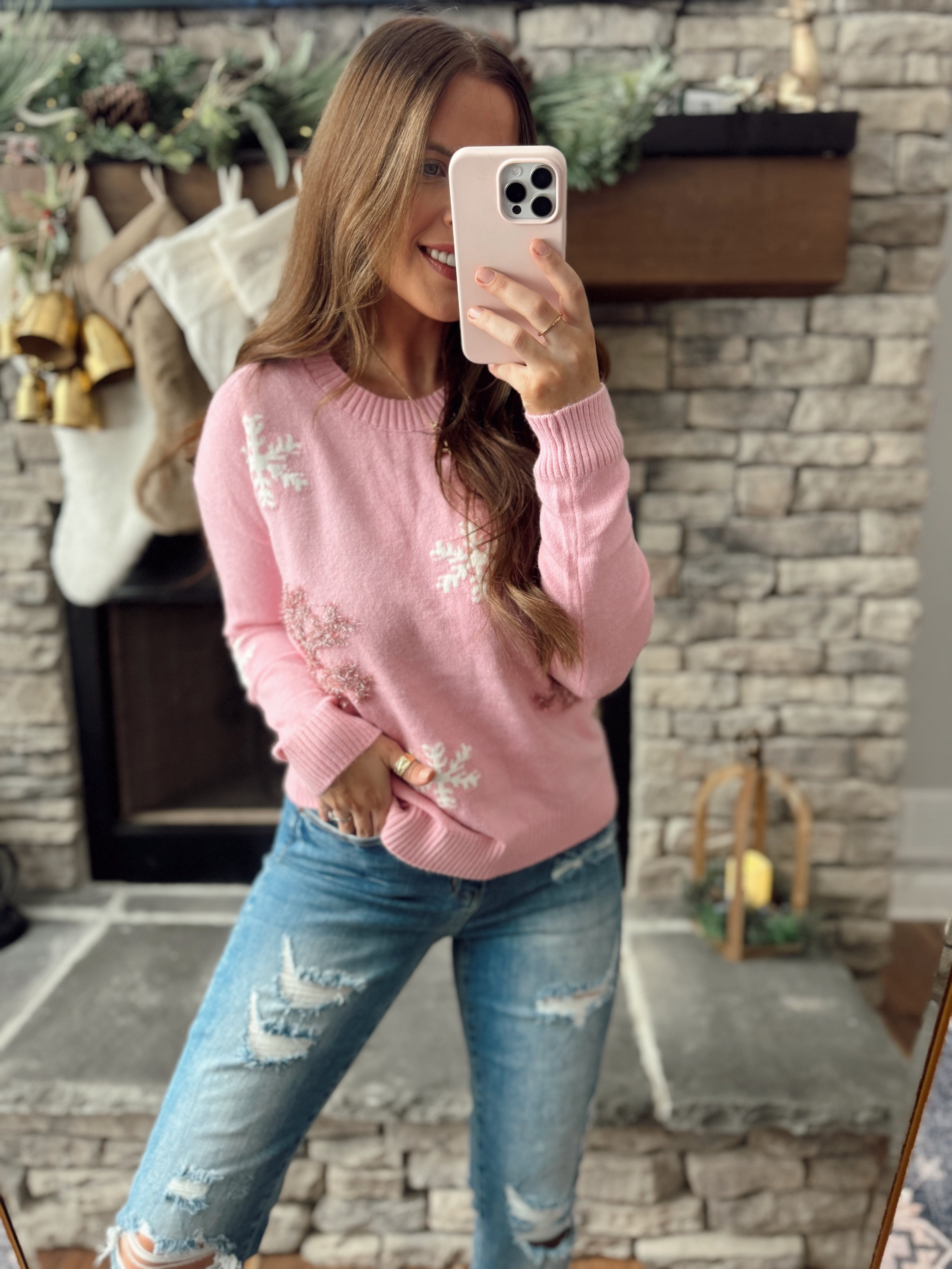 Sweetest Snowflake Pink Winter Snowflake Crew Sweater