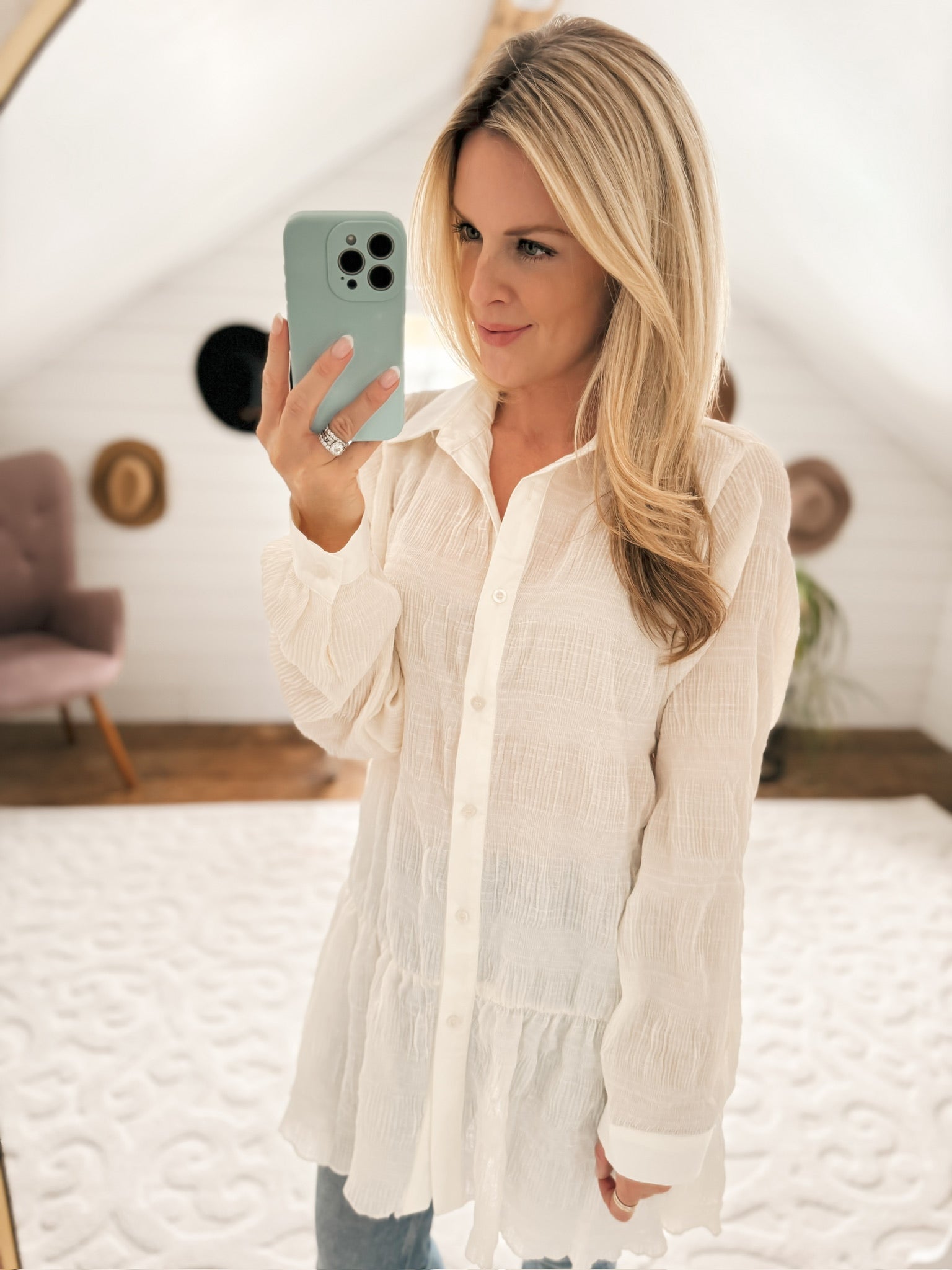 Take My Hand Off White Gauzy Button Up Tunic