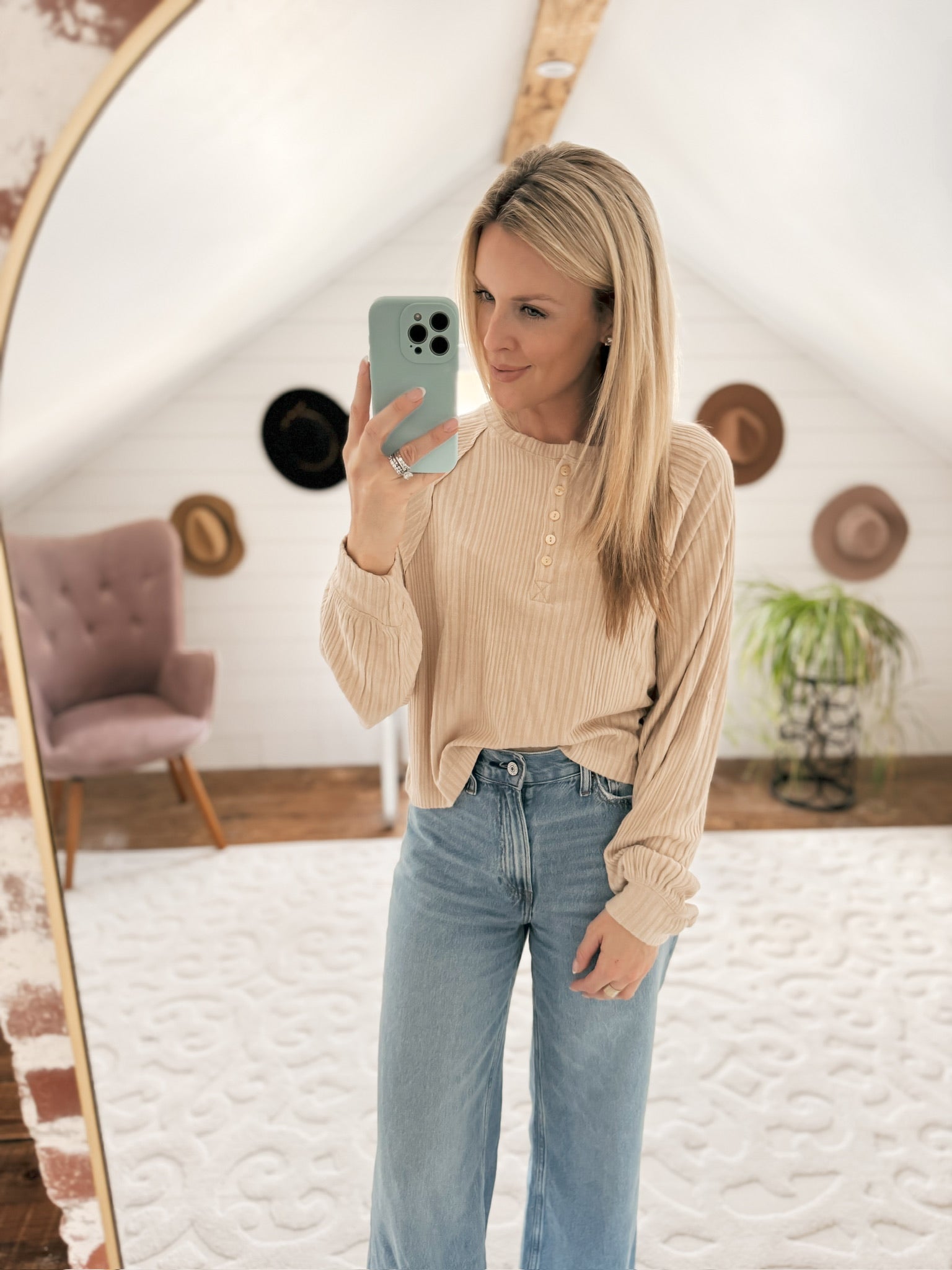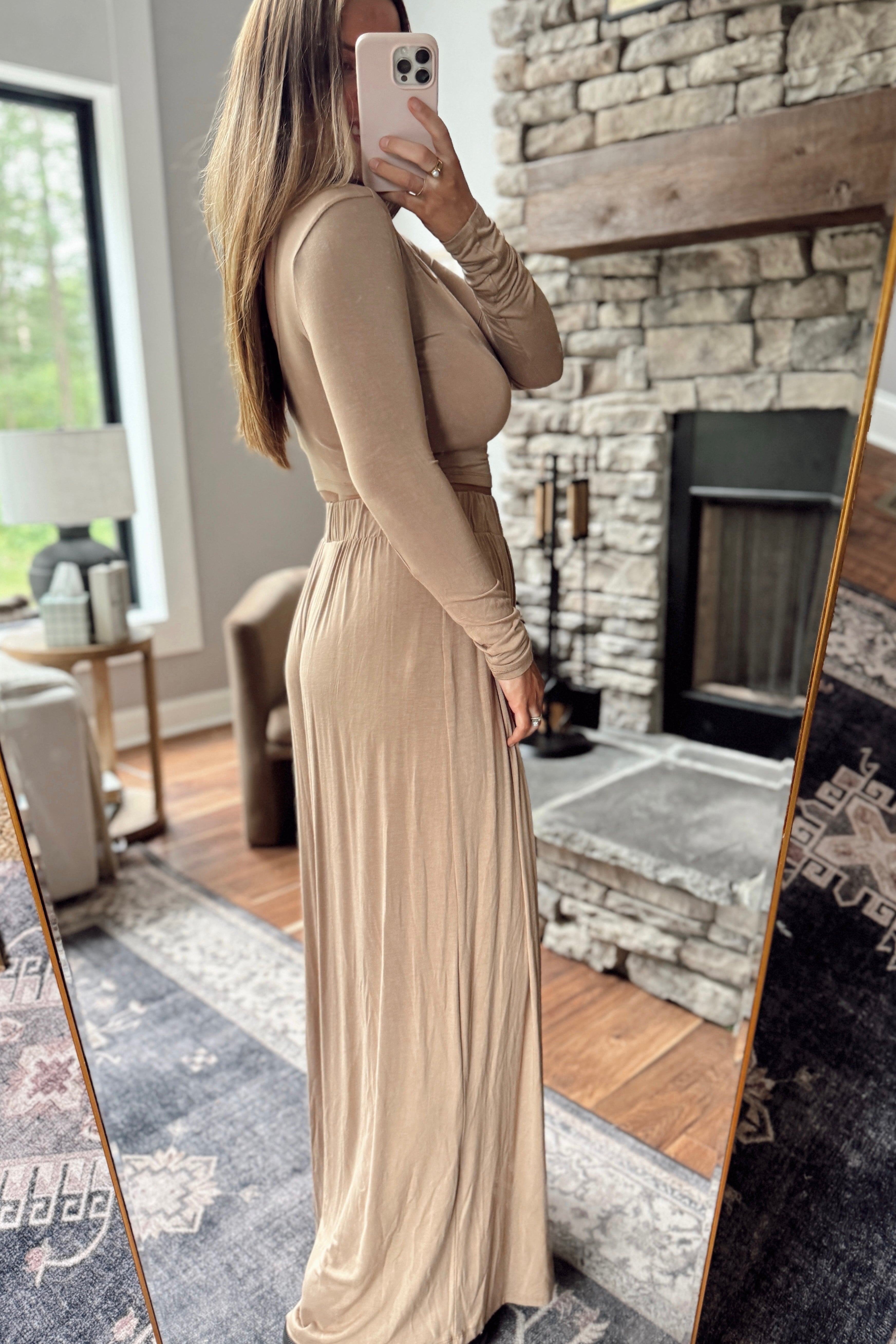 Taupe Go With The Flow Long Sleeve Top and Pant Set
