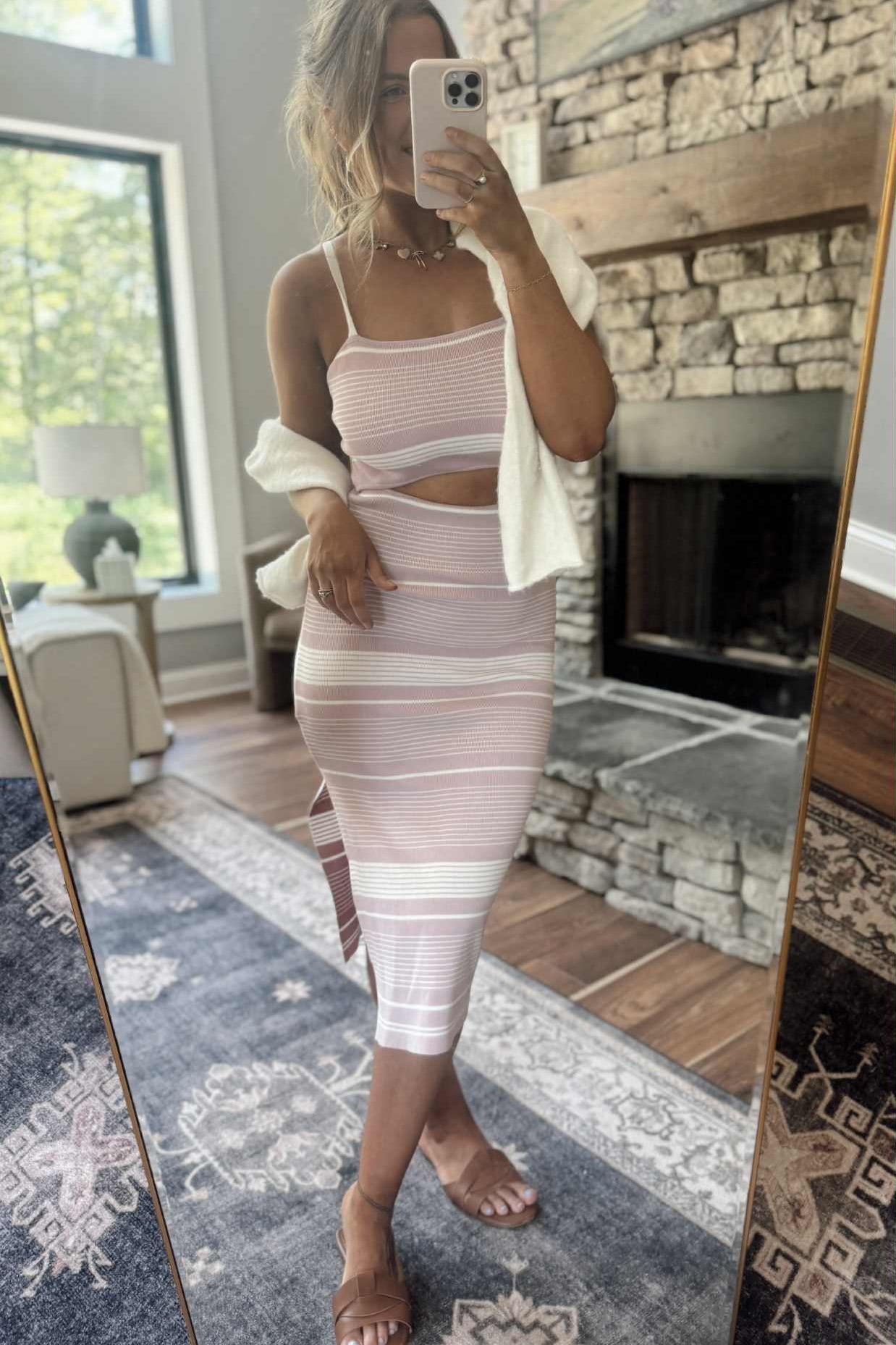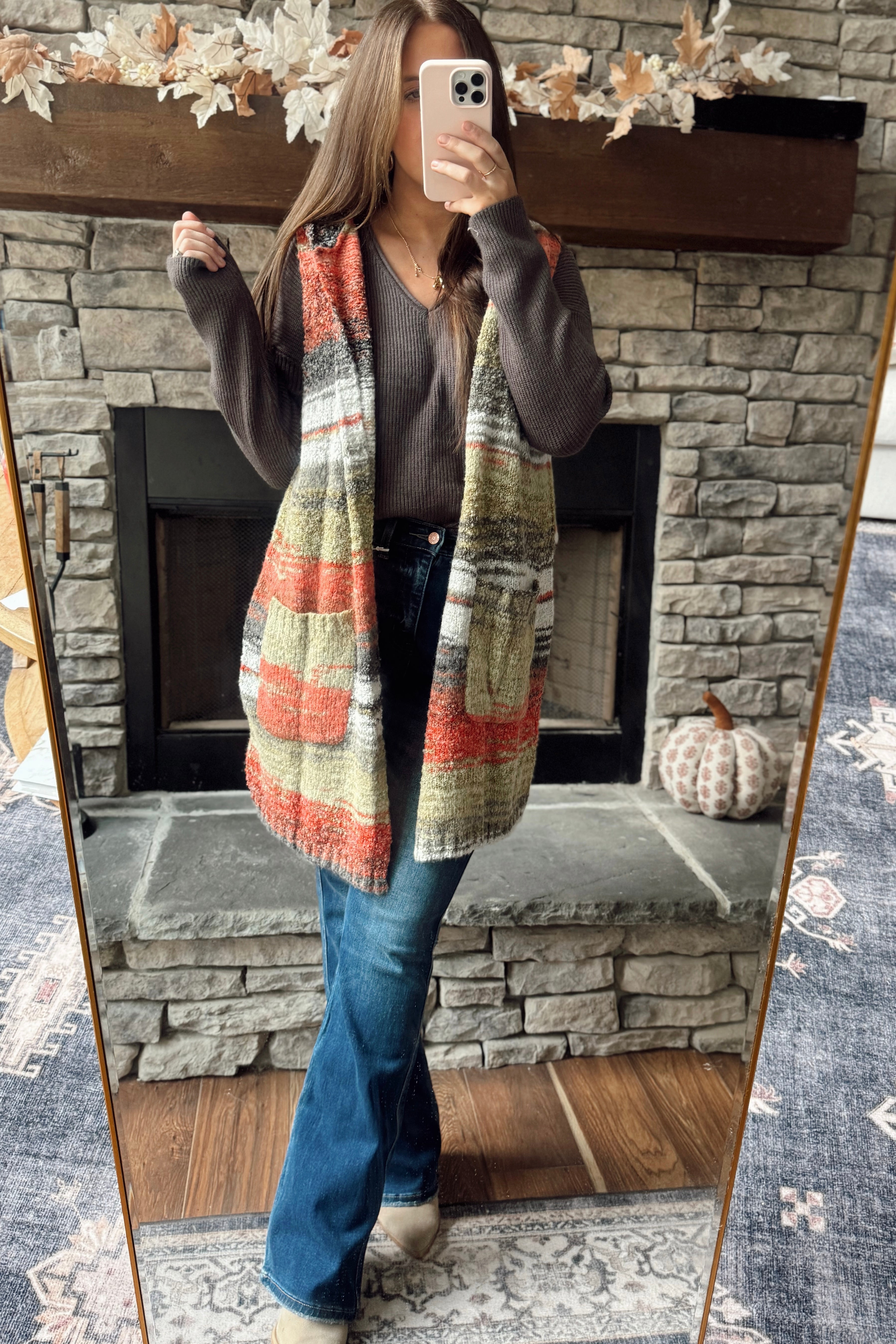 Tracey Blue Multi Stripe V-Neck Pullover Sweater w/ Side Pockets