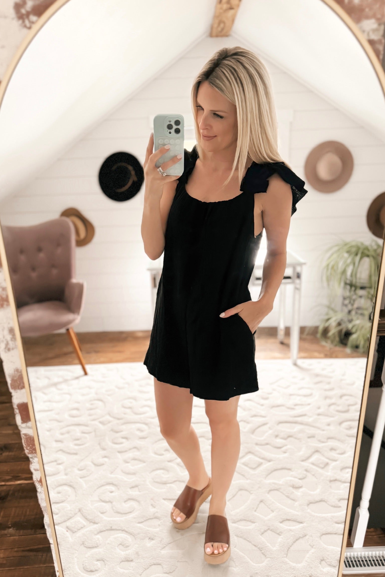 Trendsetter Black Ruffle Sleeve Gauze Romper