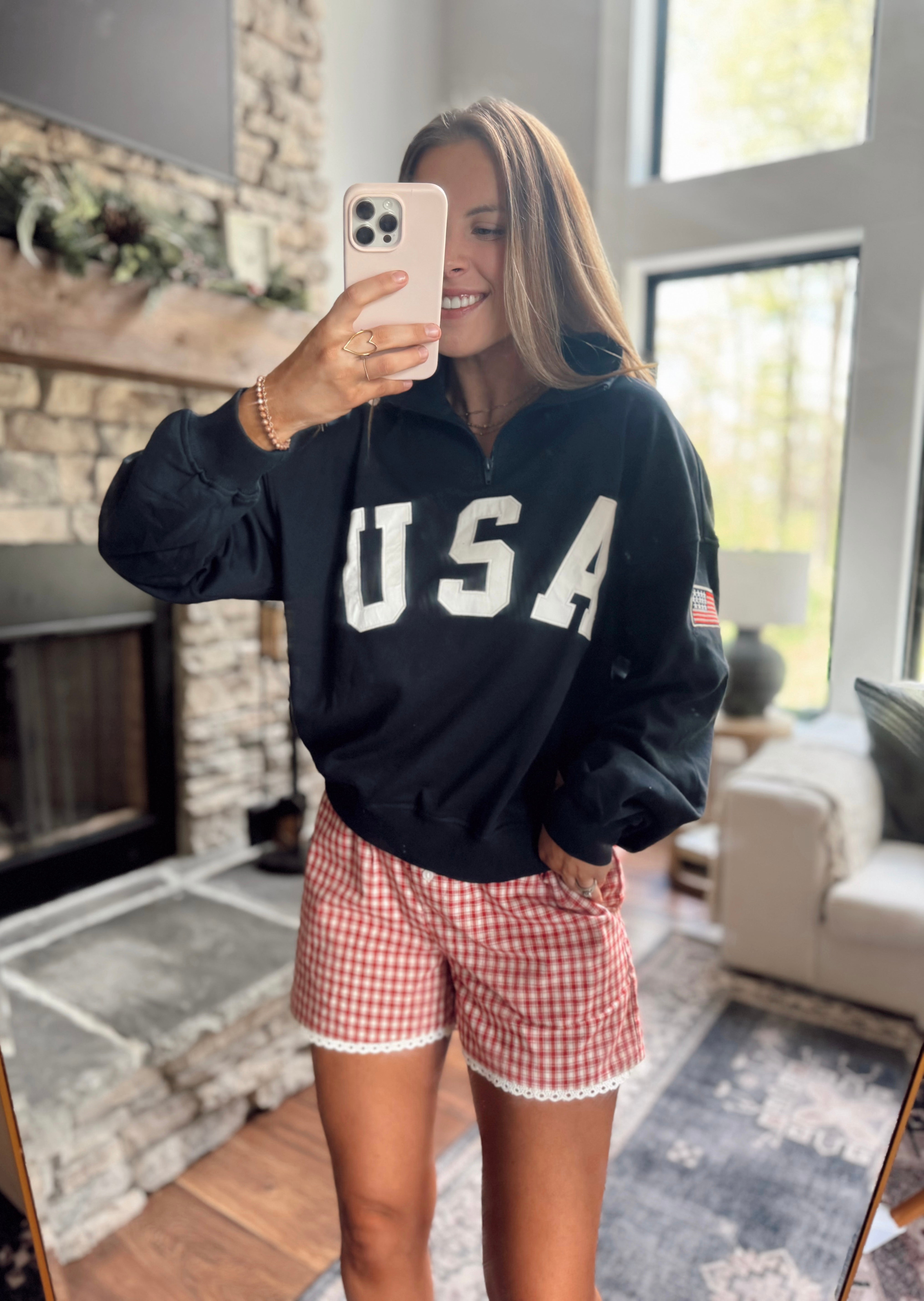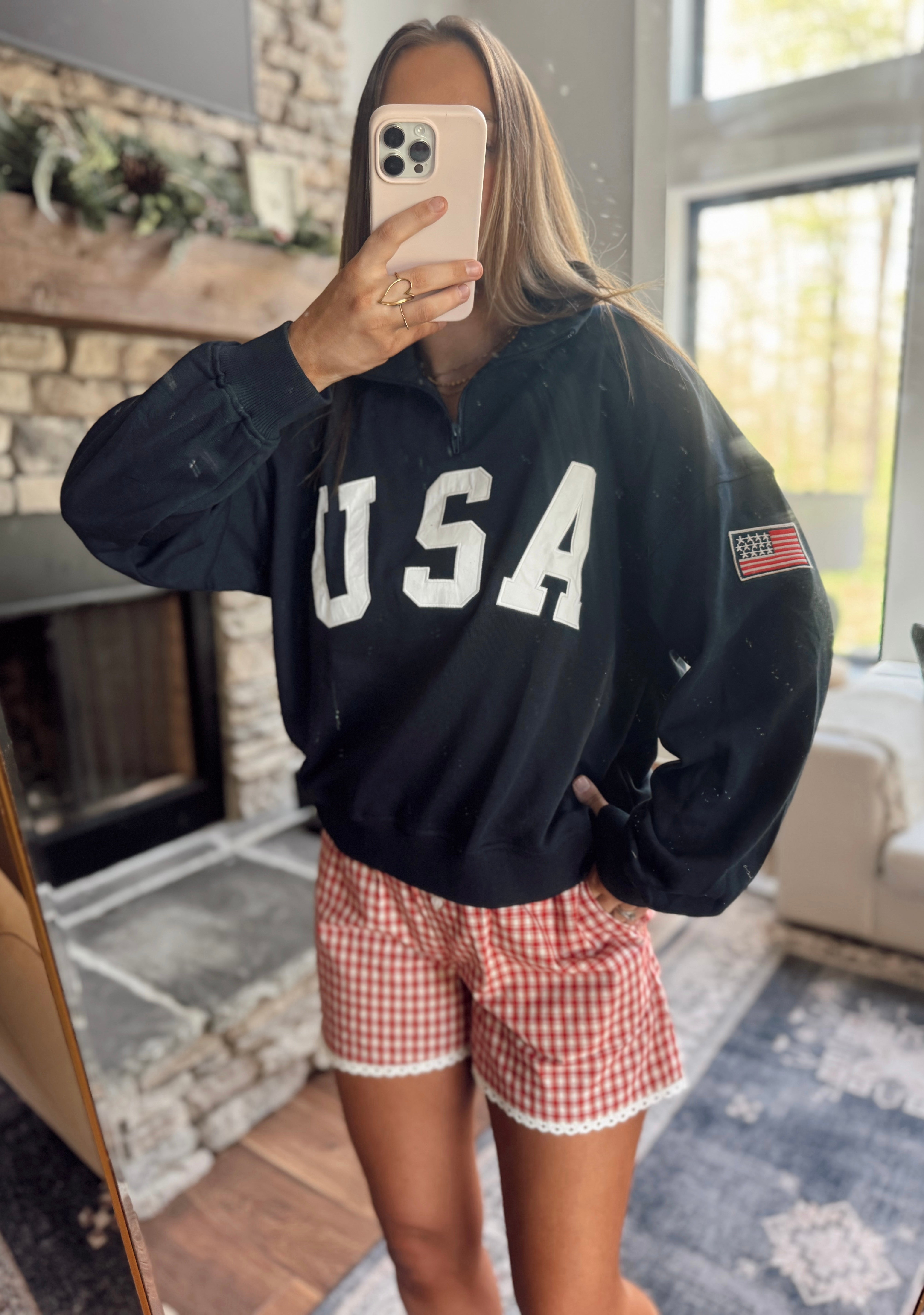 USA Contrast Half Zip Oversized Sweatshirt