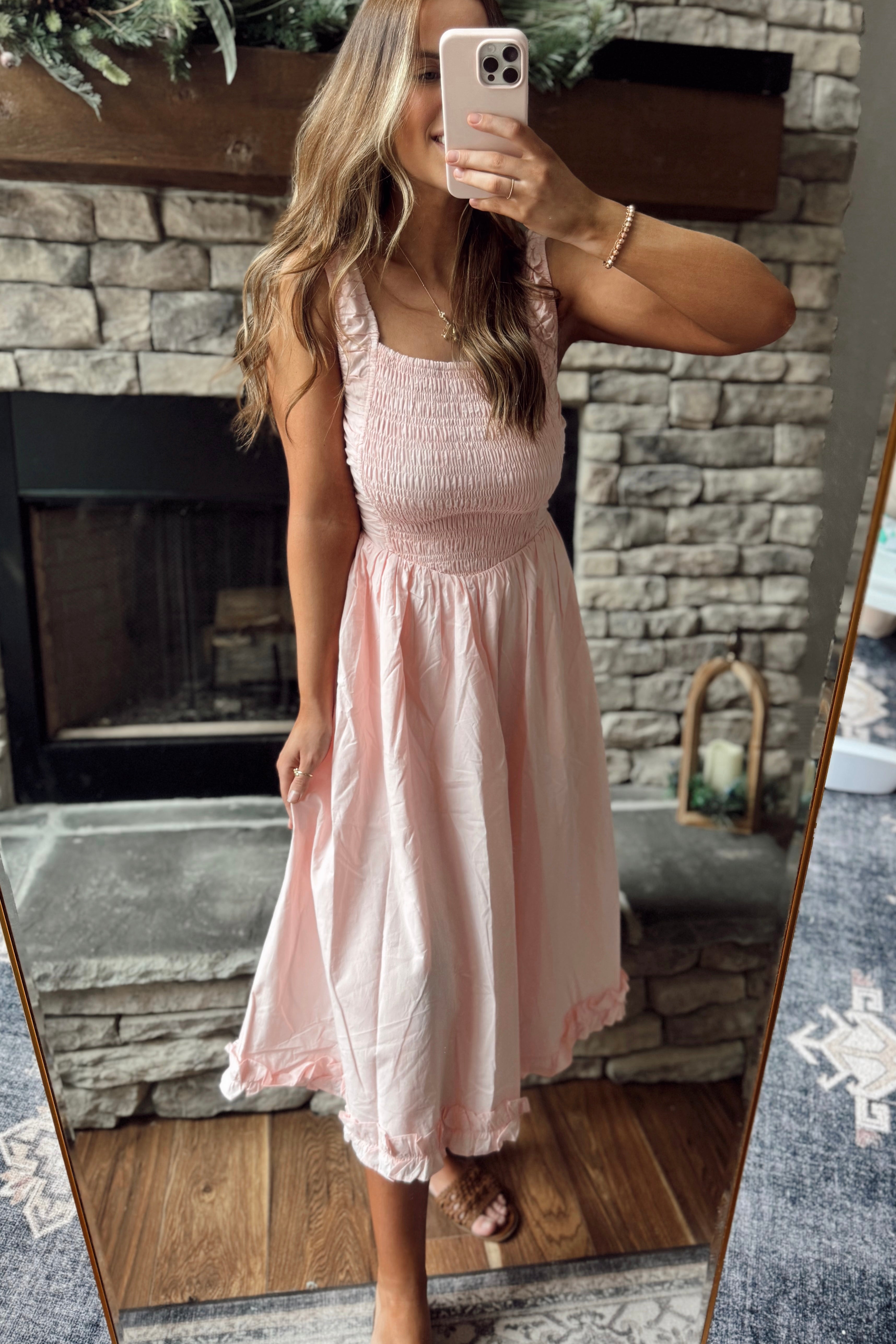 Velma Baby Pink Ruffle Hem Midi