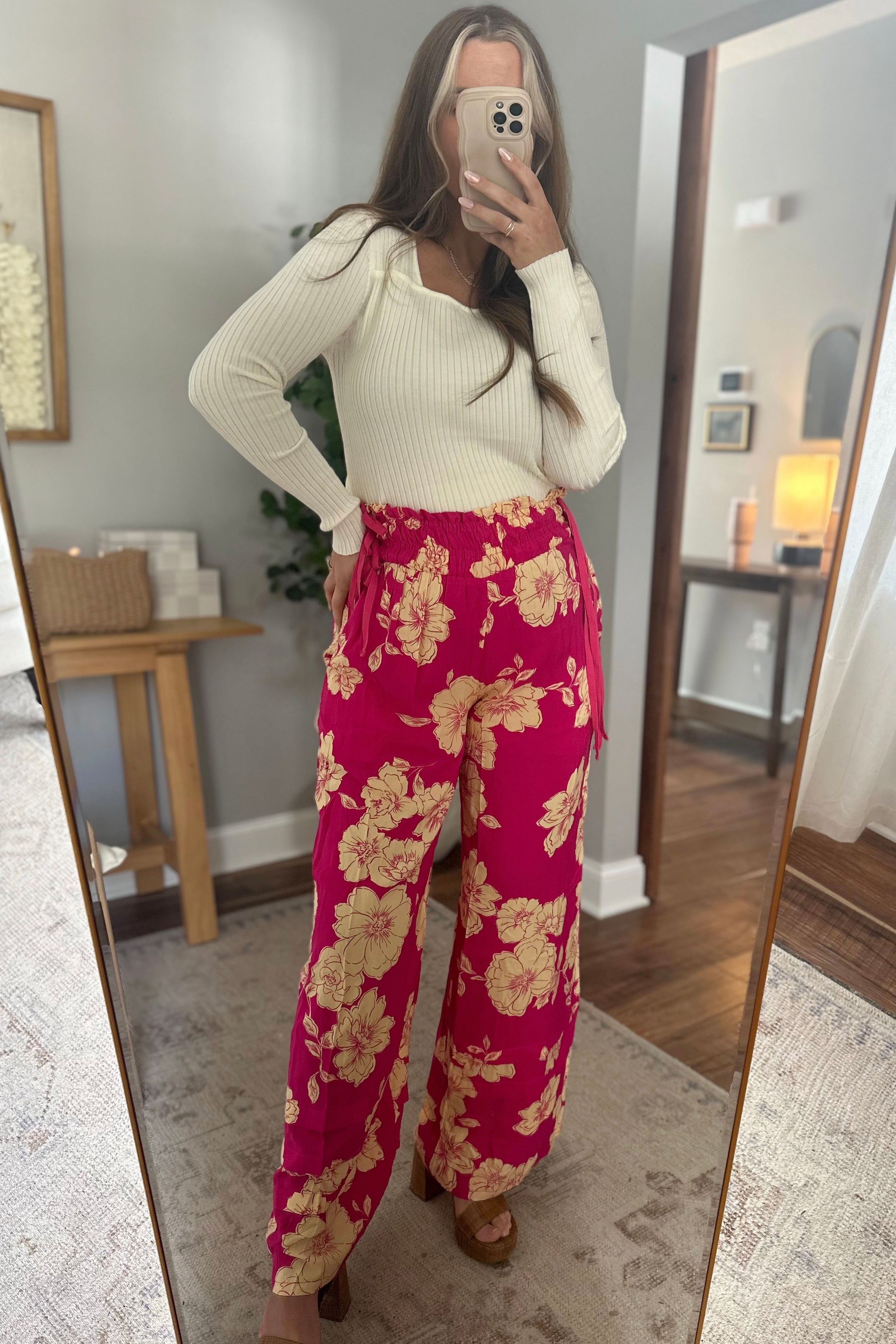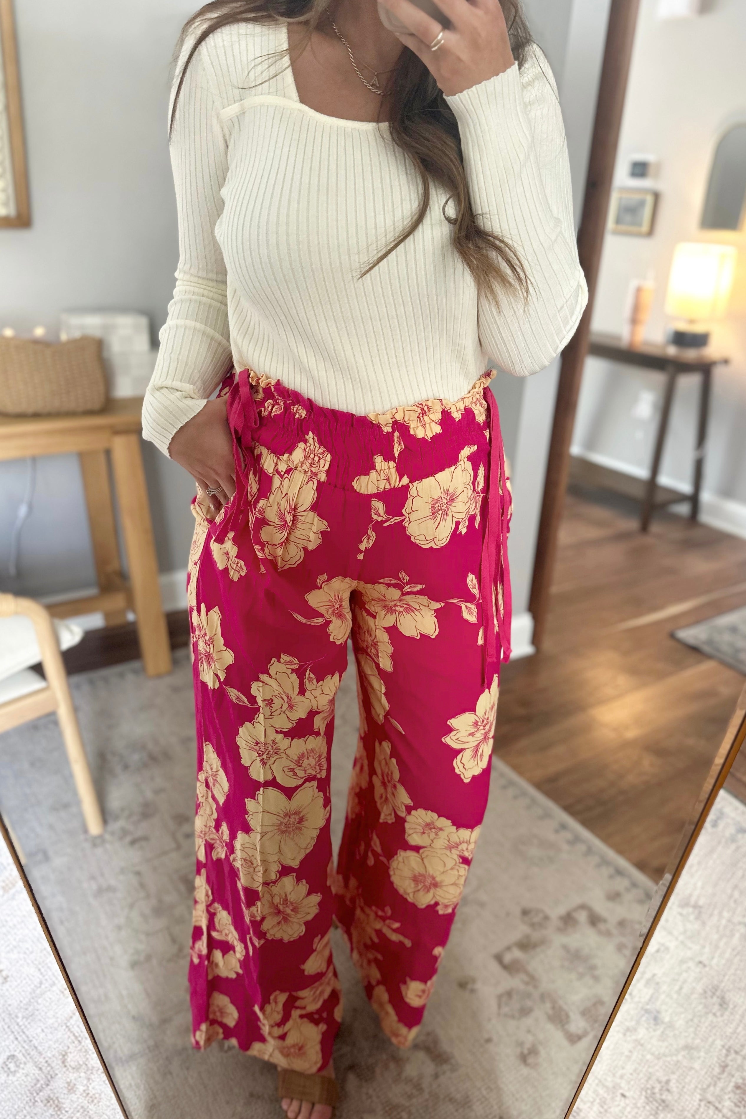 Vacay Vibes Magenta Peach Floral Wide-Leg Pants