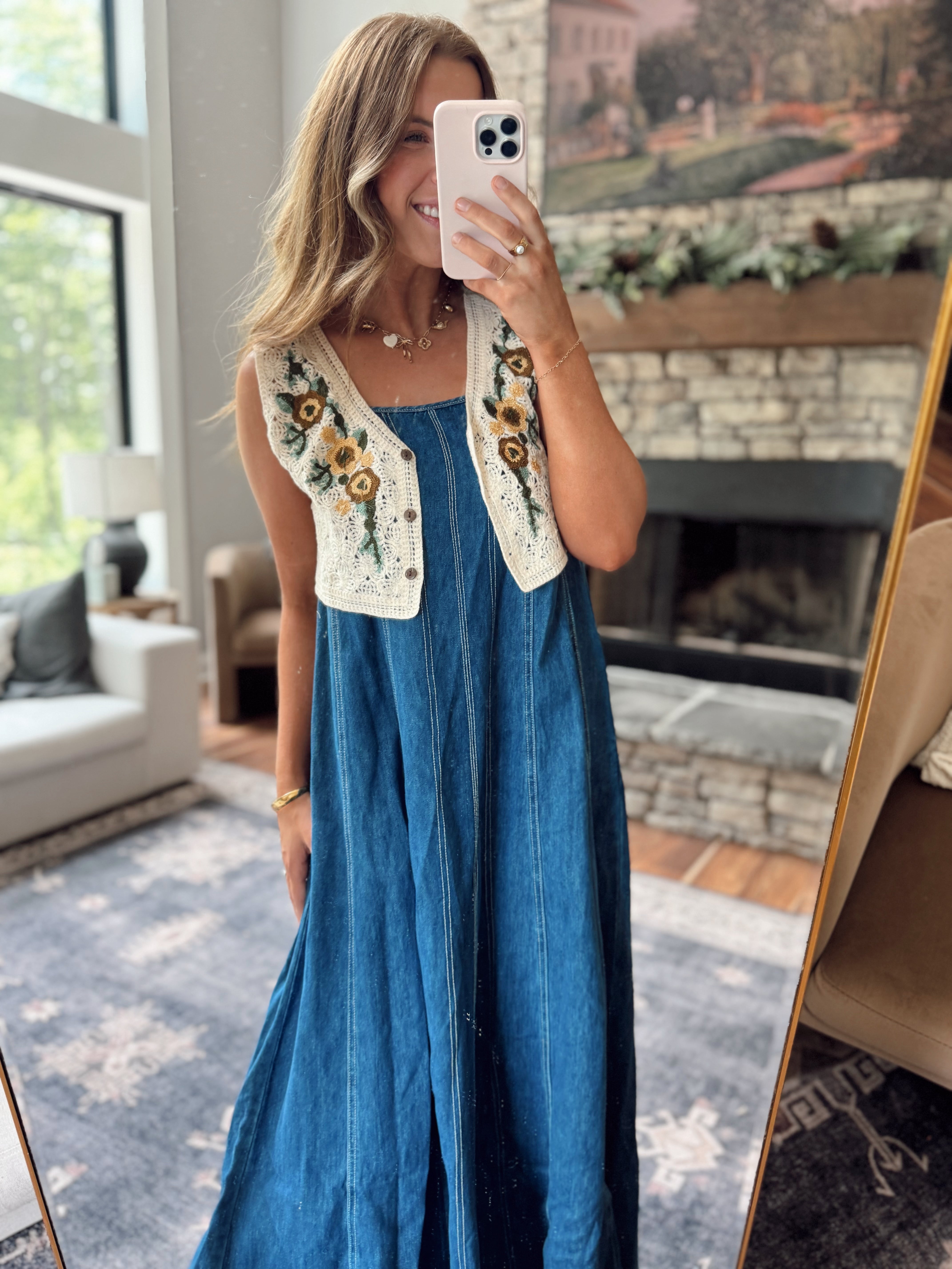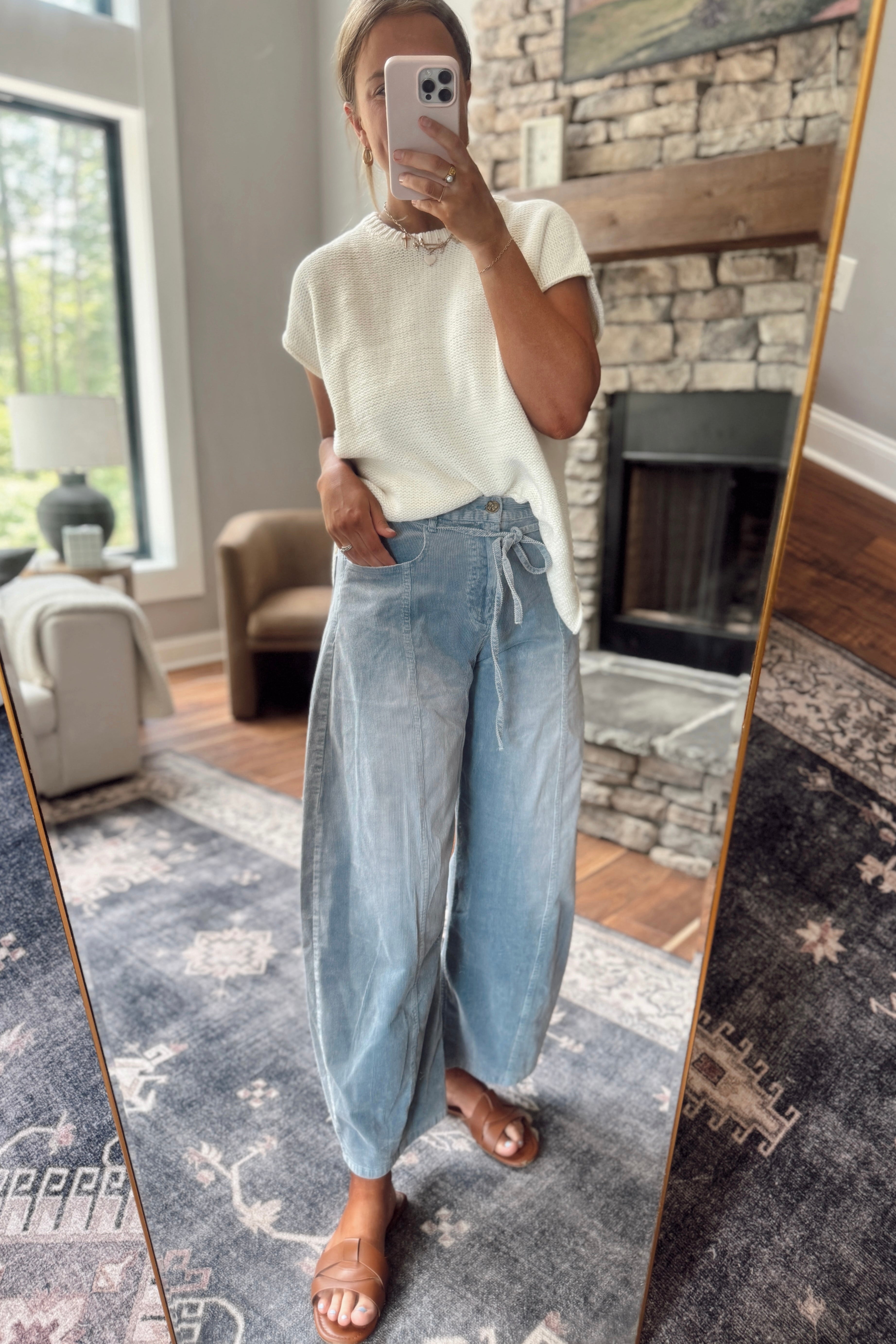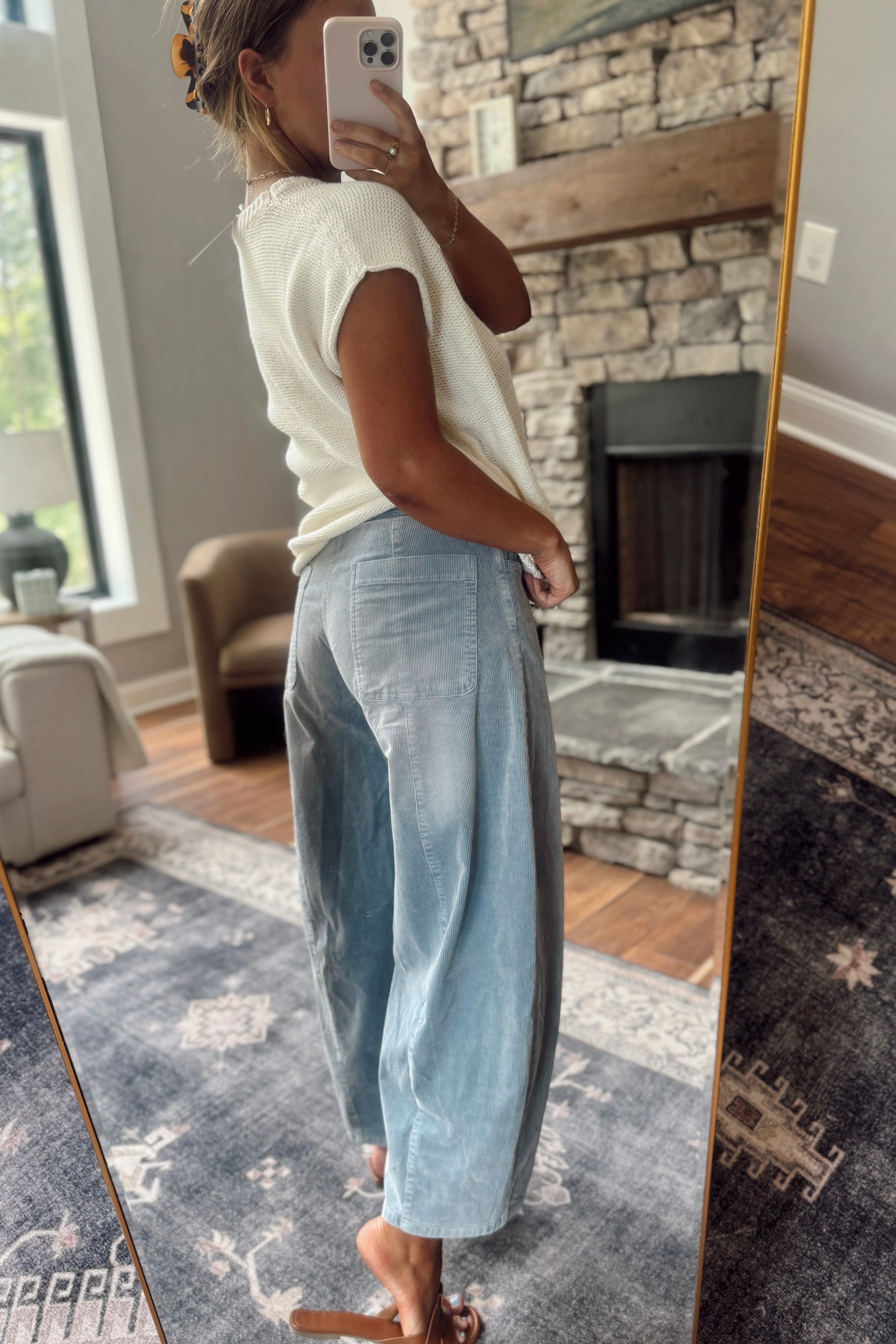 Washed Seafoam Embroidered Corduroy Jumpsuit