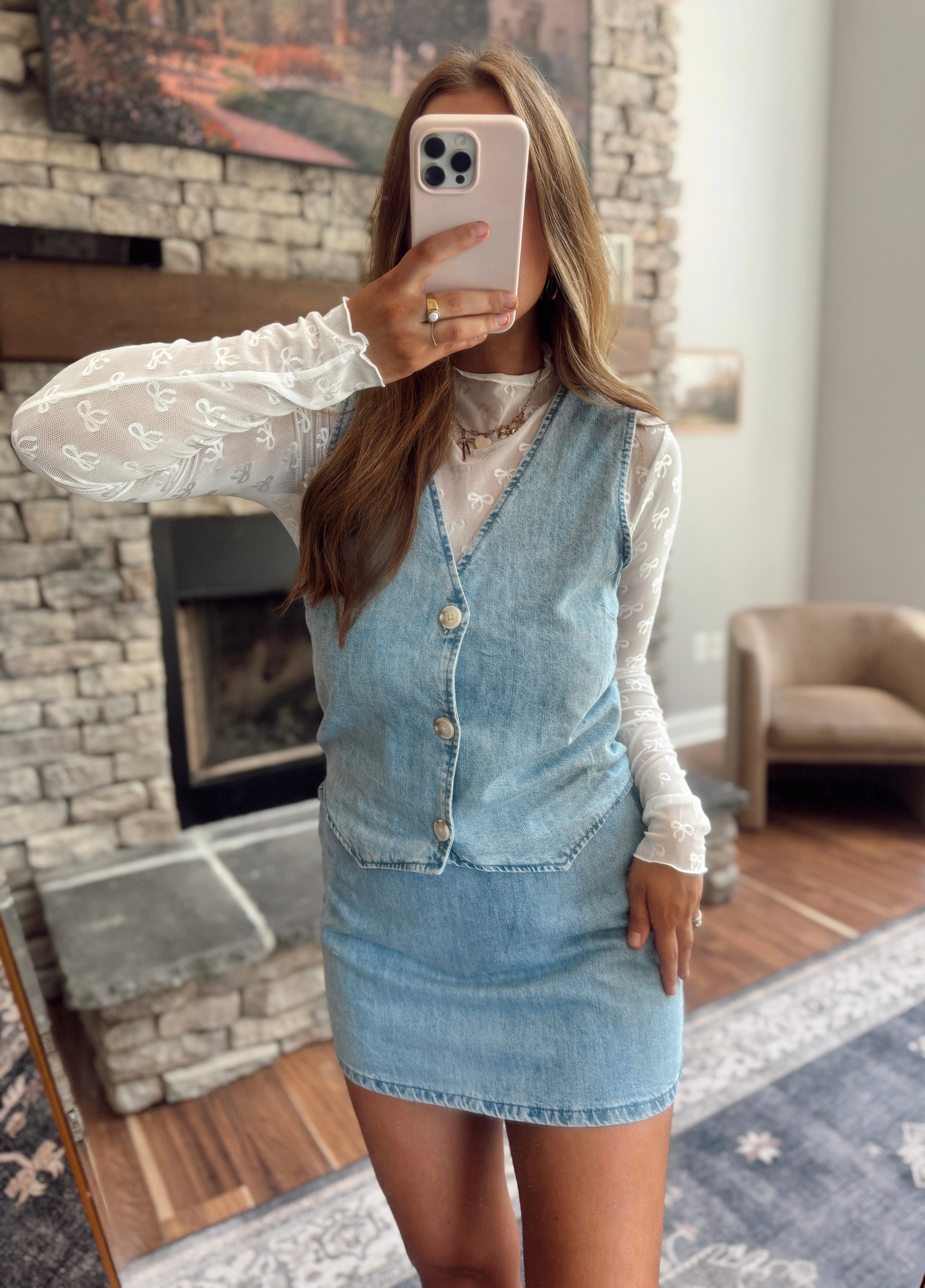 White Bowed & Beautiful Mesh Turtleneck Long Sleeve