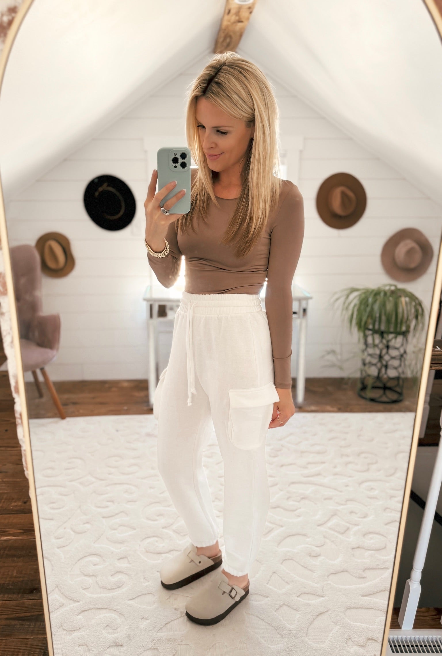 White Binge Worthy Cotton Fleece Cargo Joggers