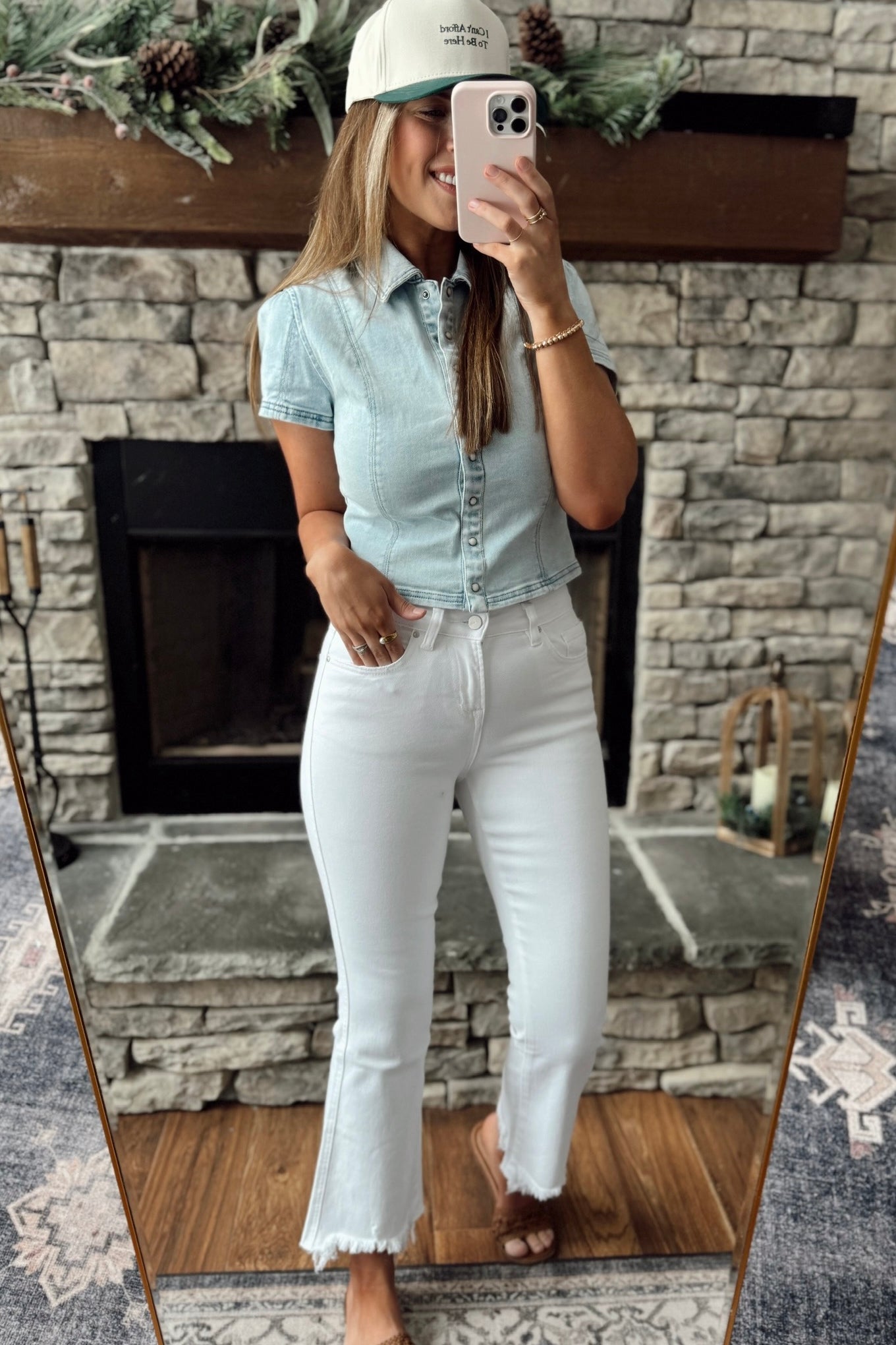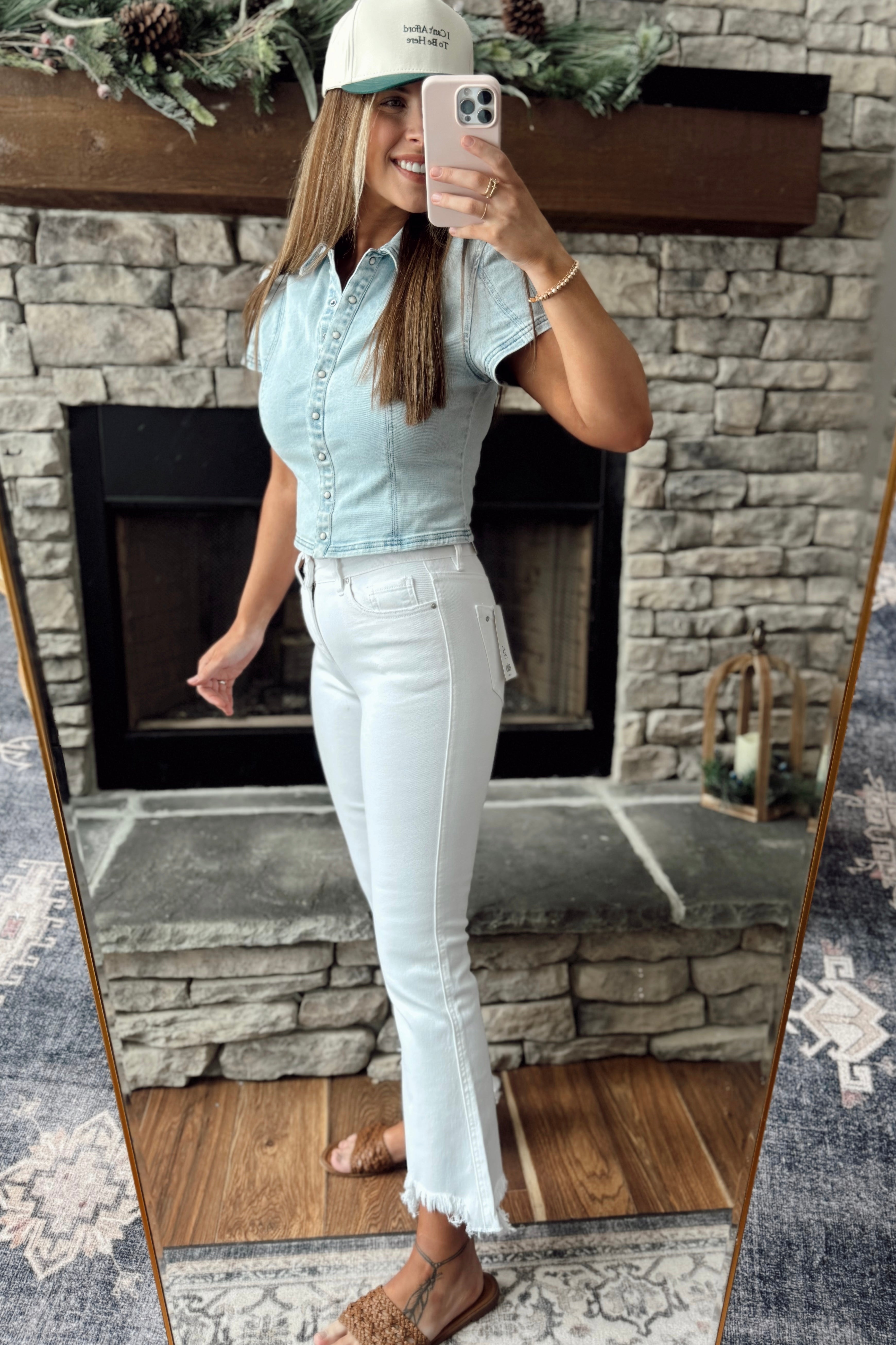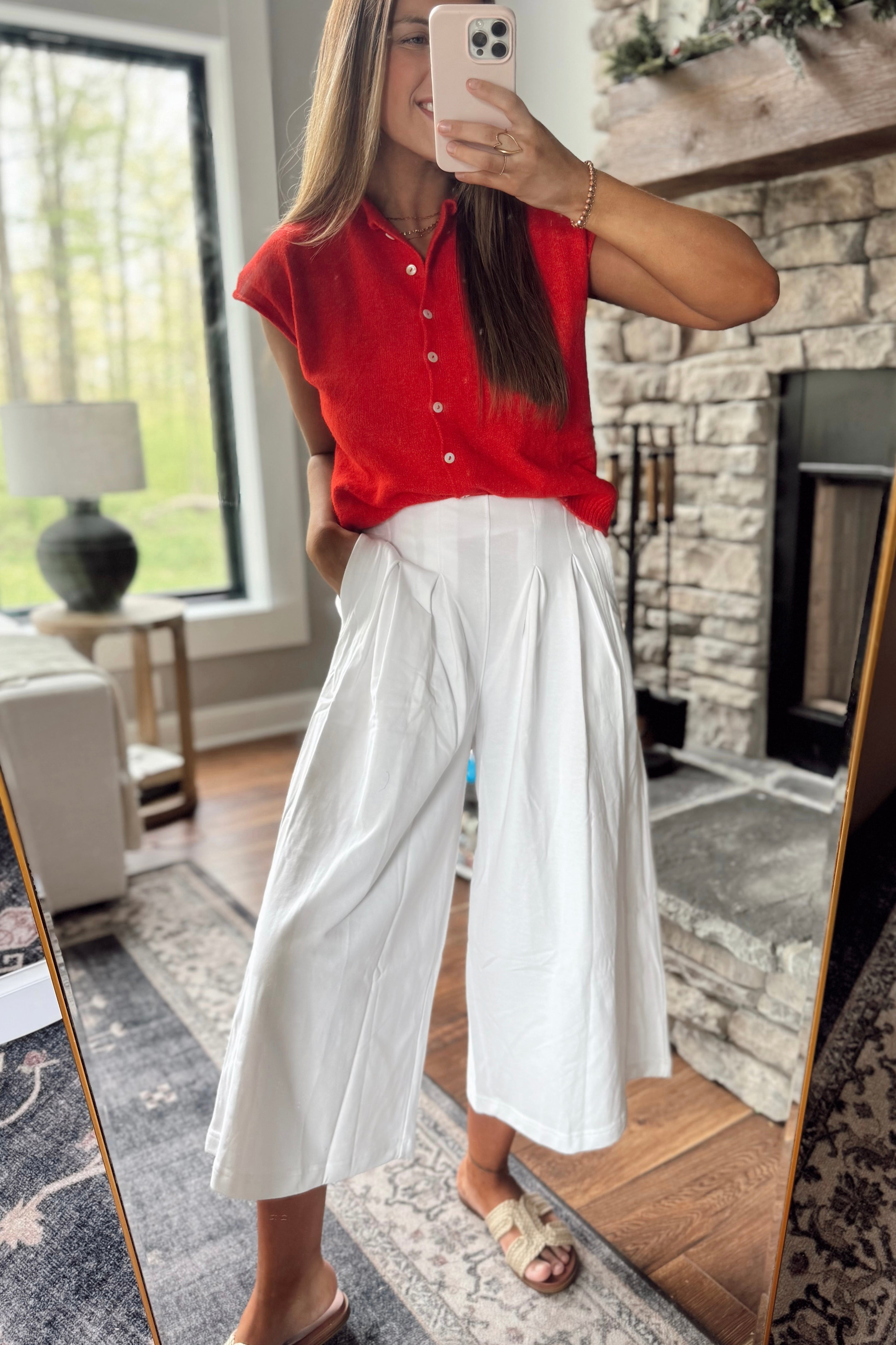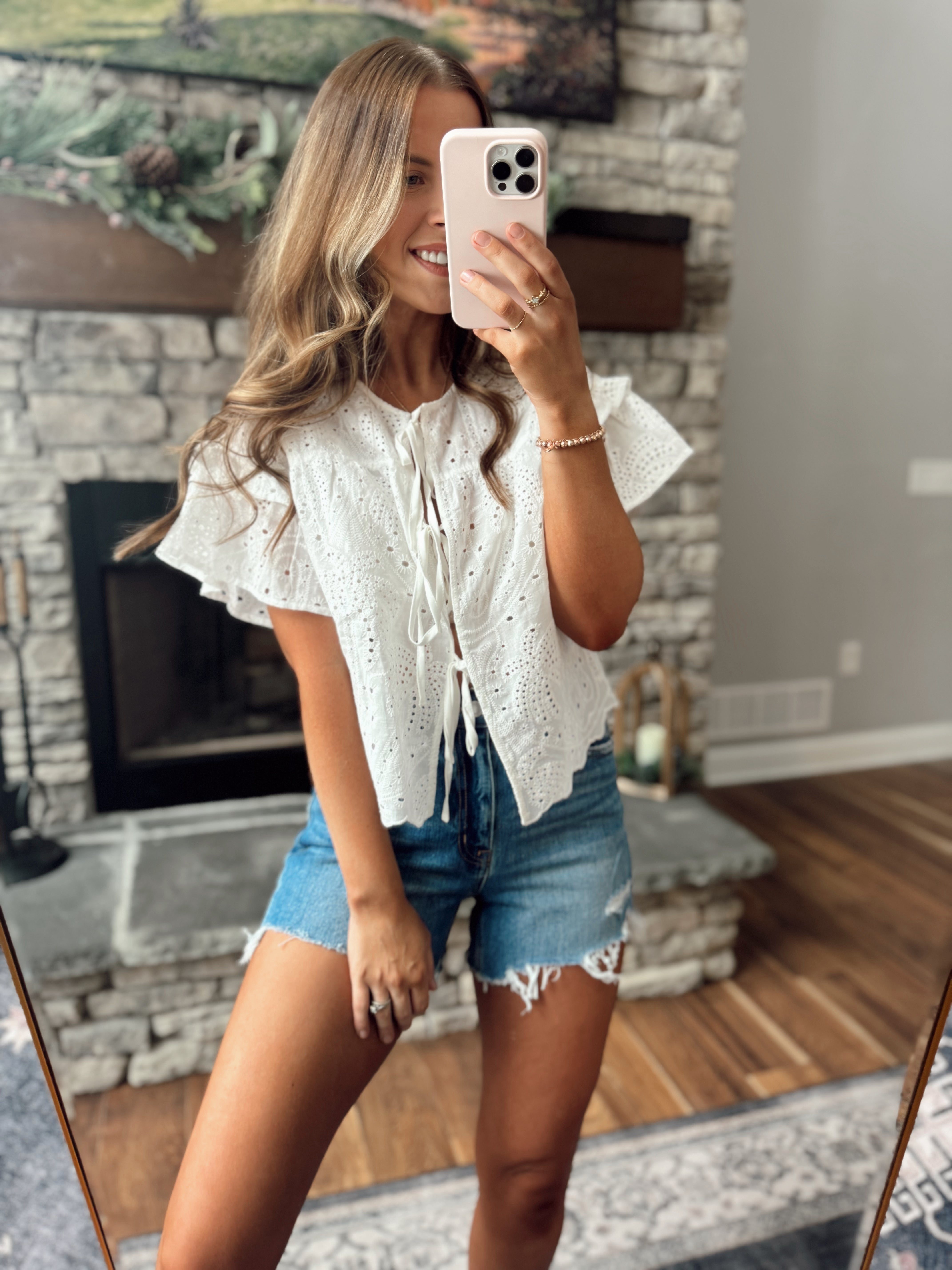 White Sands Palm Tree Eyelet Front Tie Flowy Top