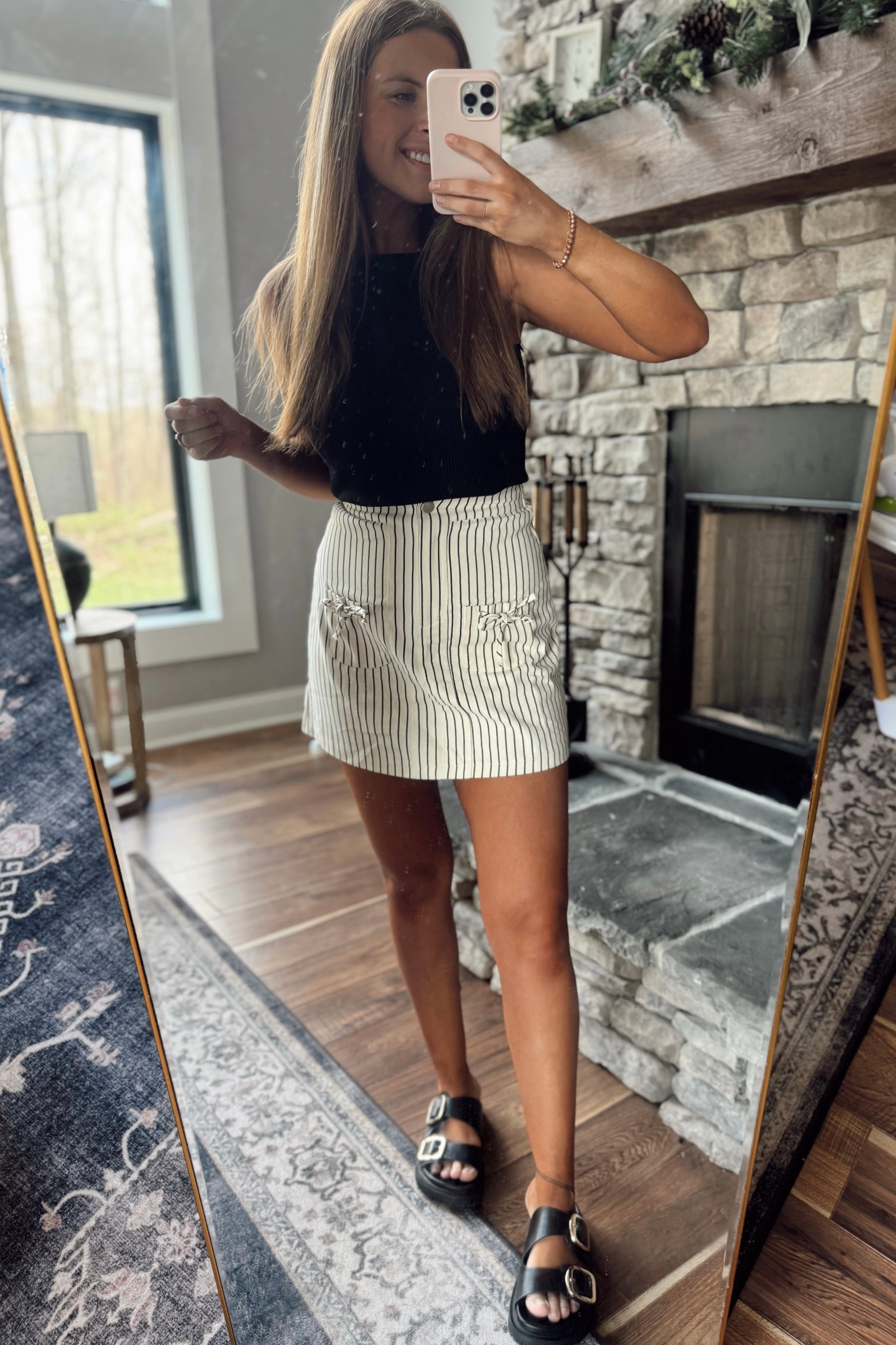 Zuri Ivory/Black Stripe Bow Detailed A-Line Mini Skirt