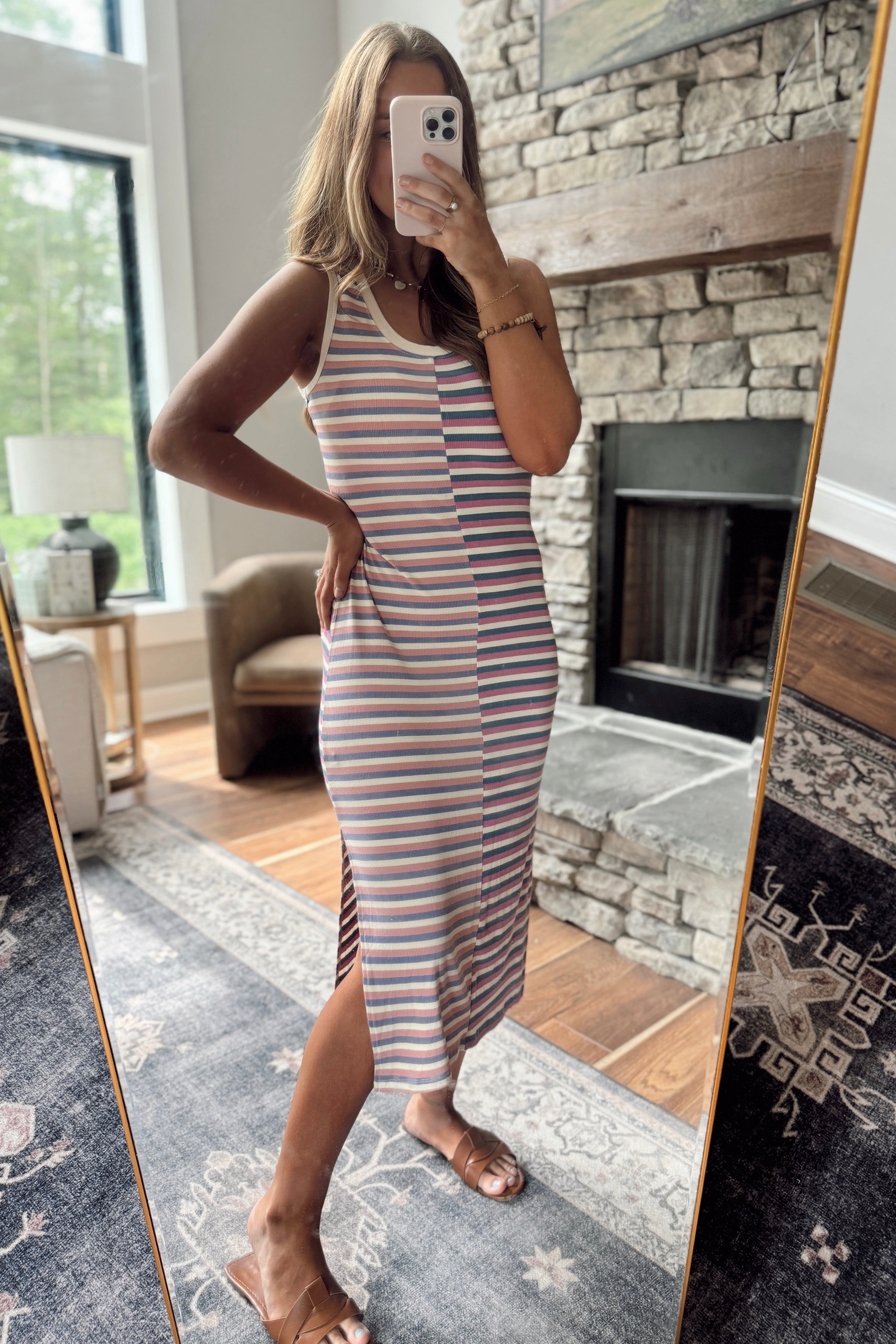 Zoey Purple Mix Striped Ribbed Sleeveless Maxi