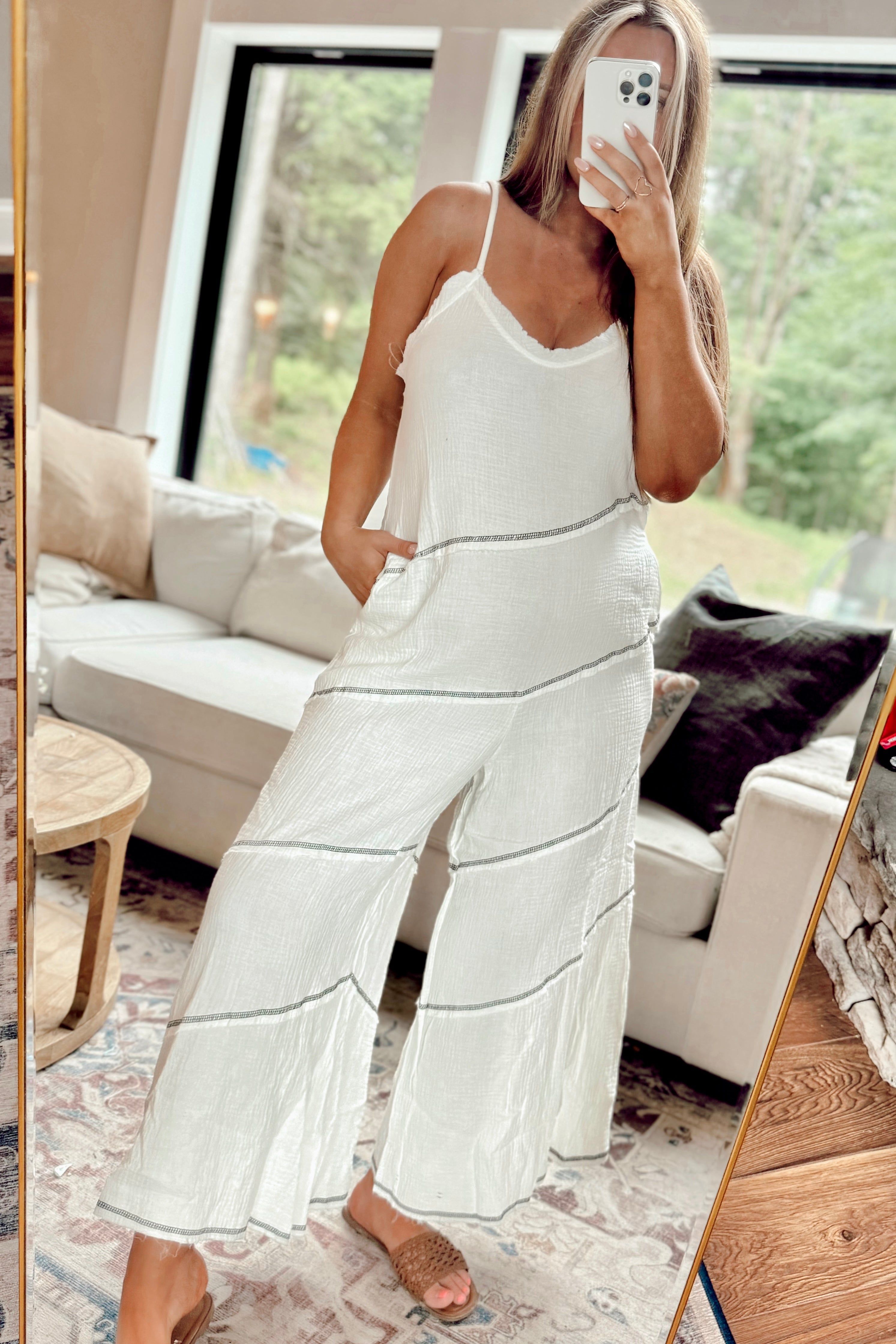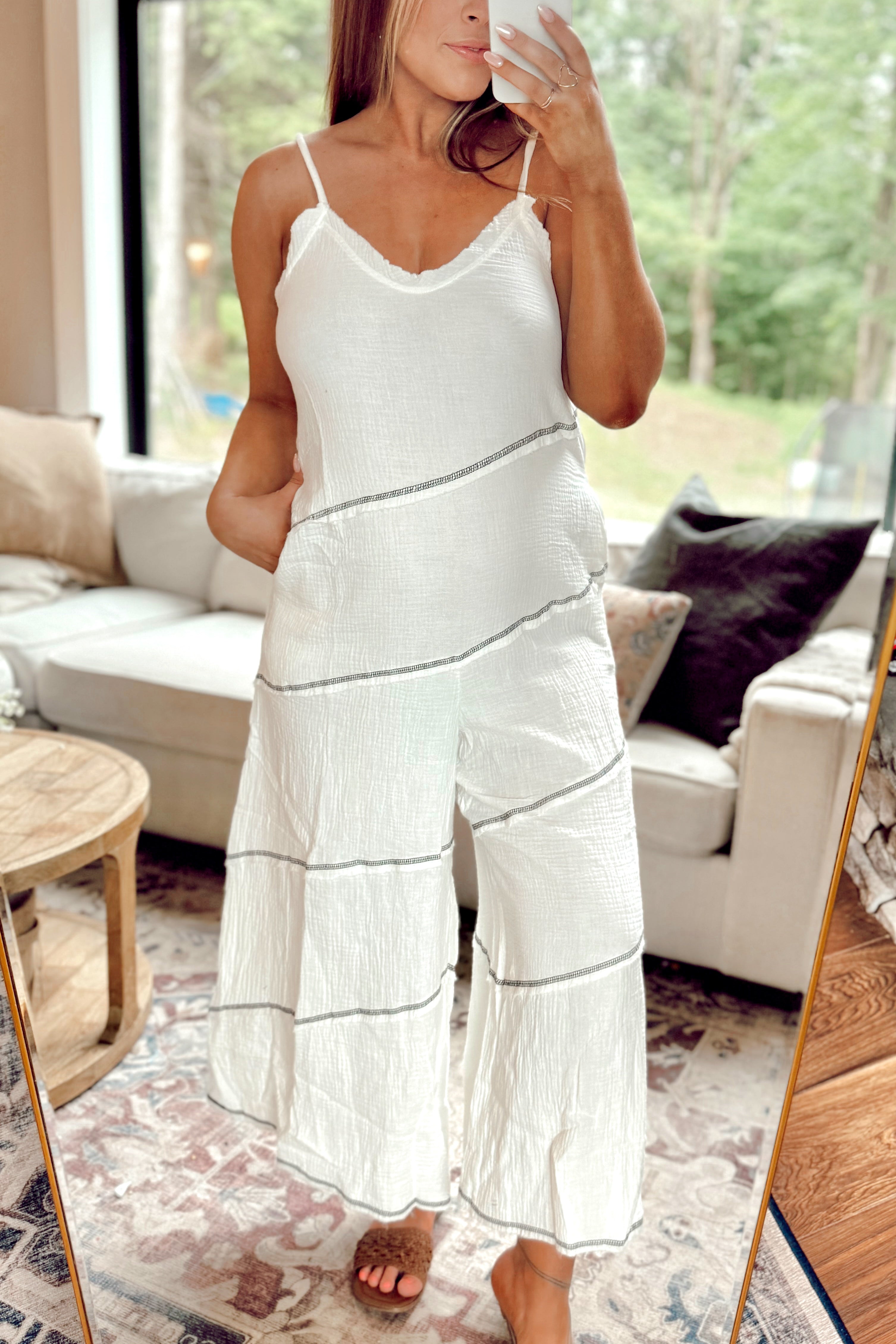 Boardwalk Daze White and Black Gauze Jumpsuit