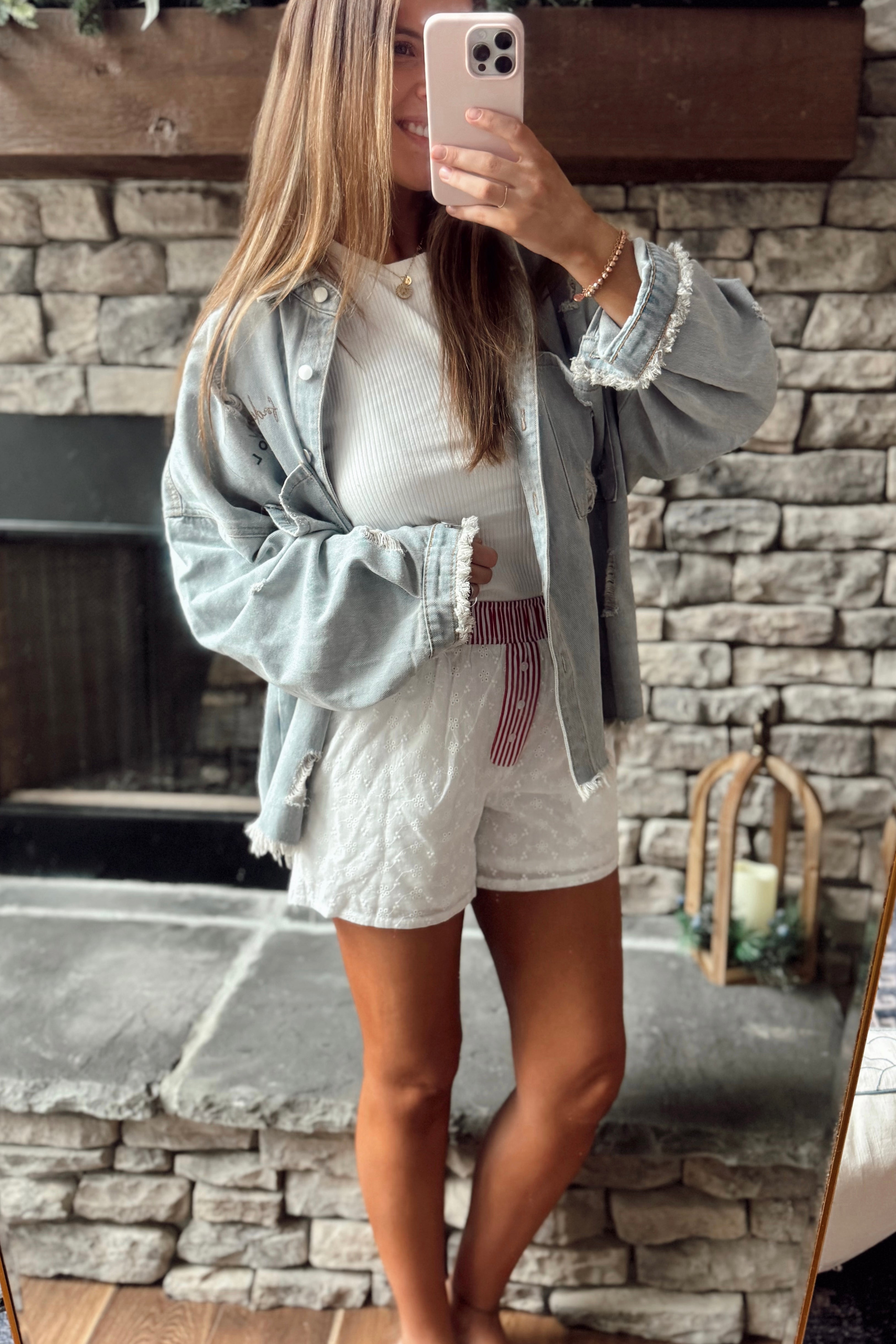Boat Days White/Blue Eyelet Boxer Style Shorts