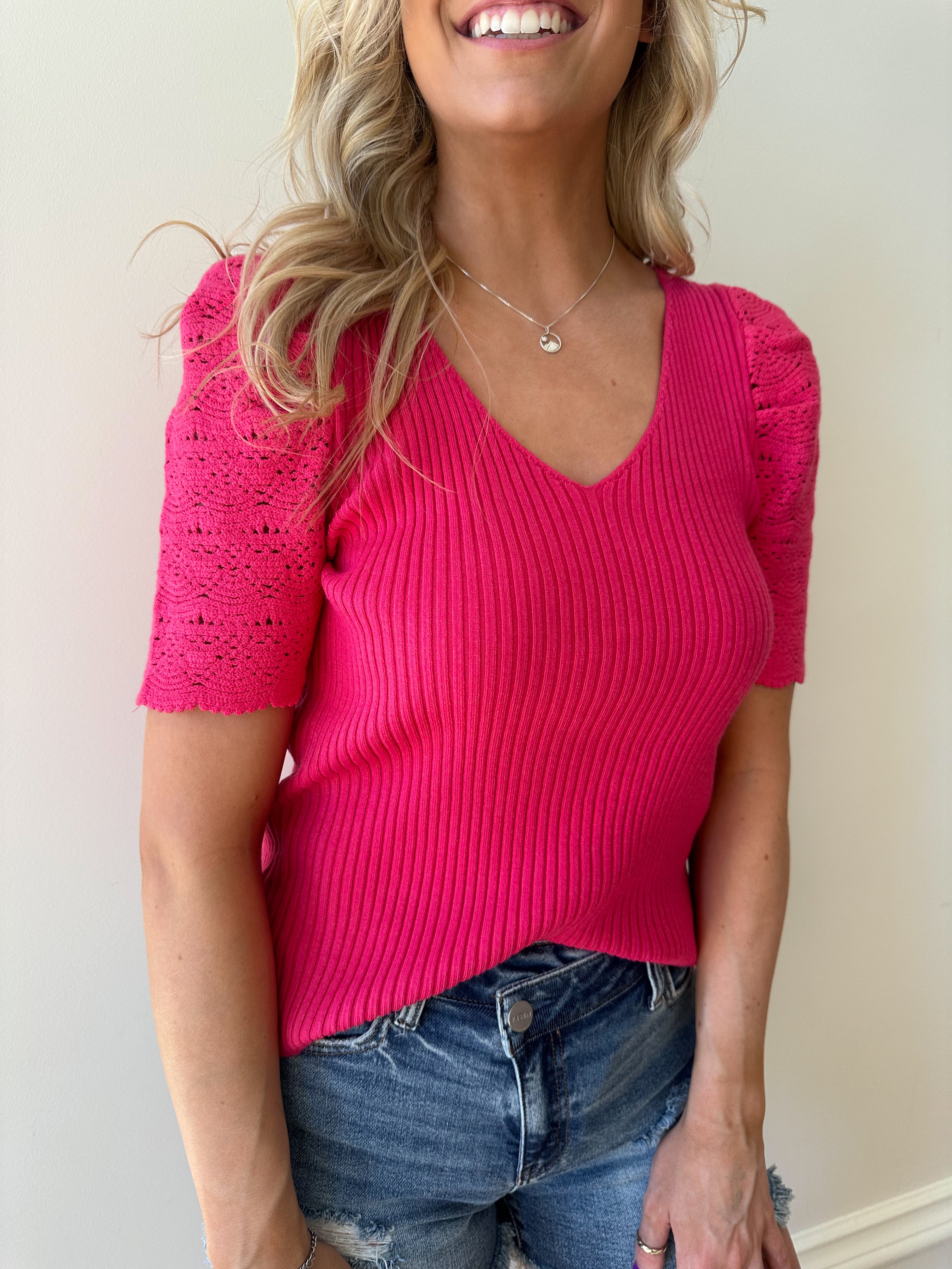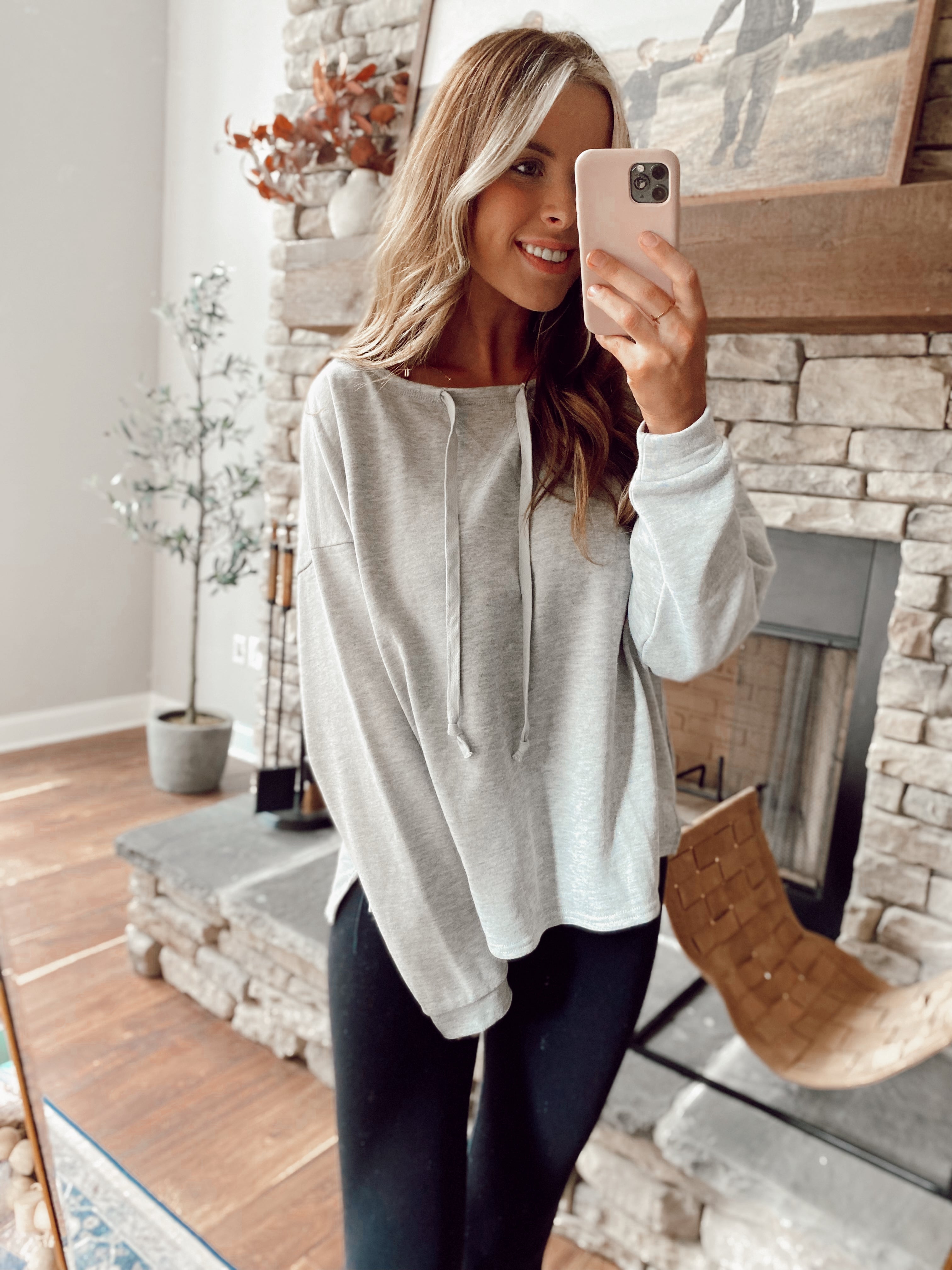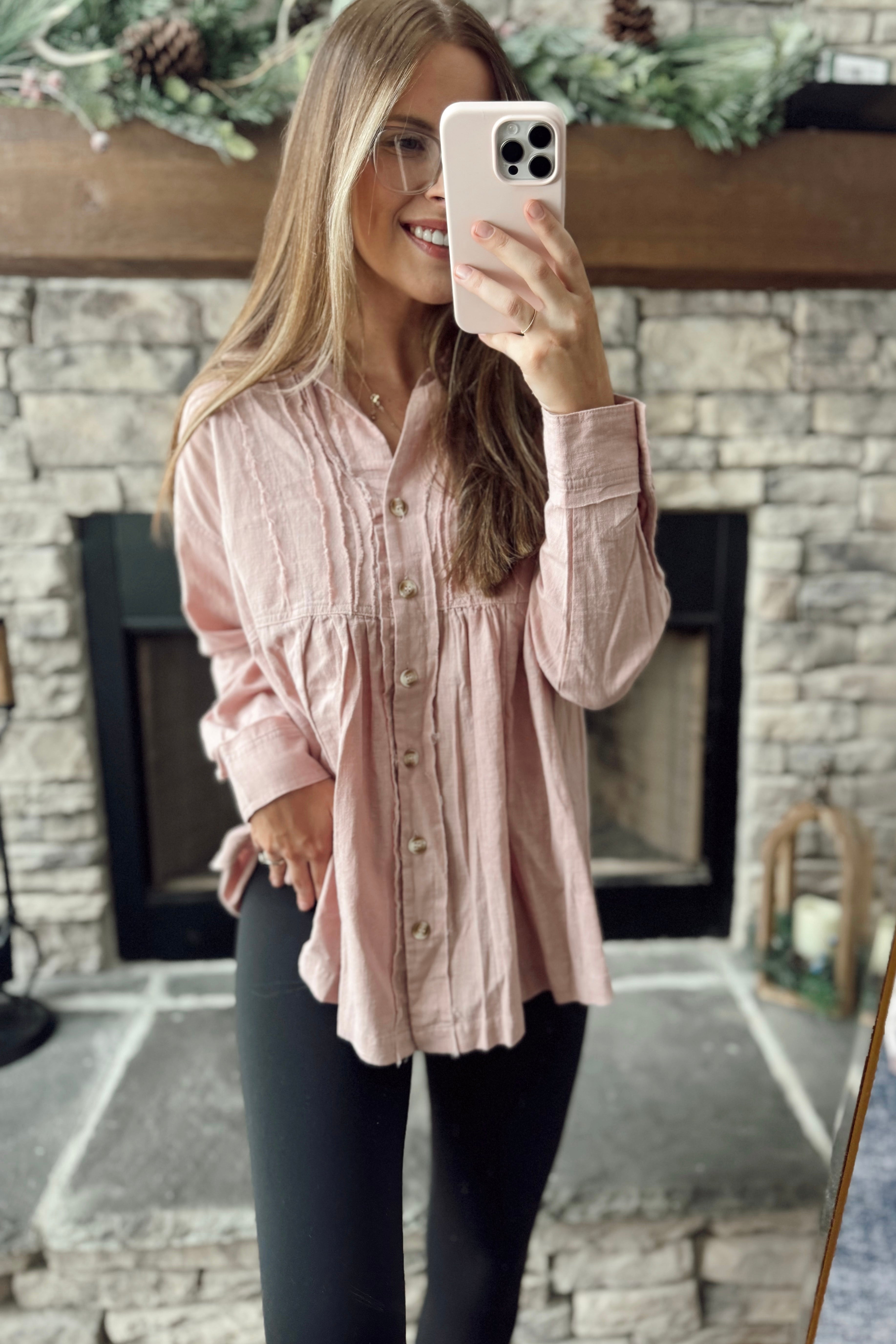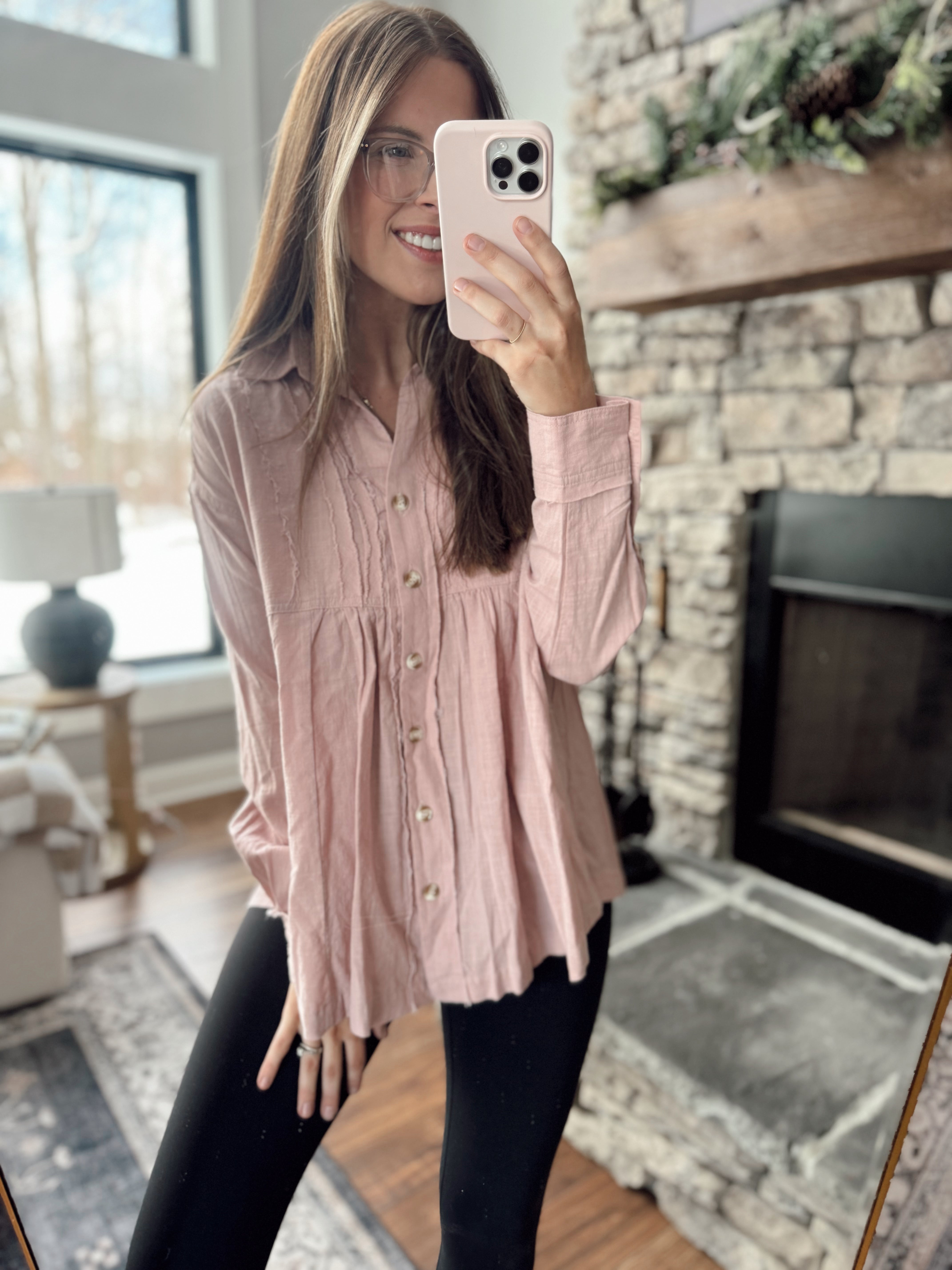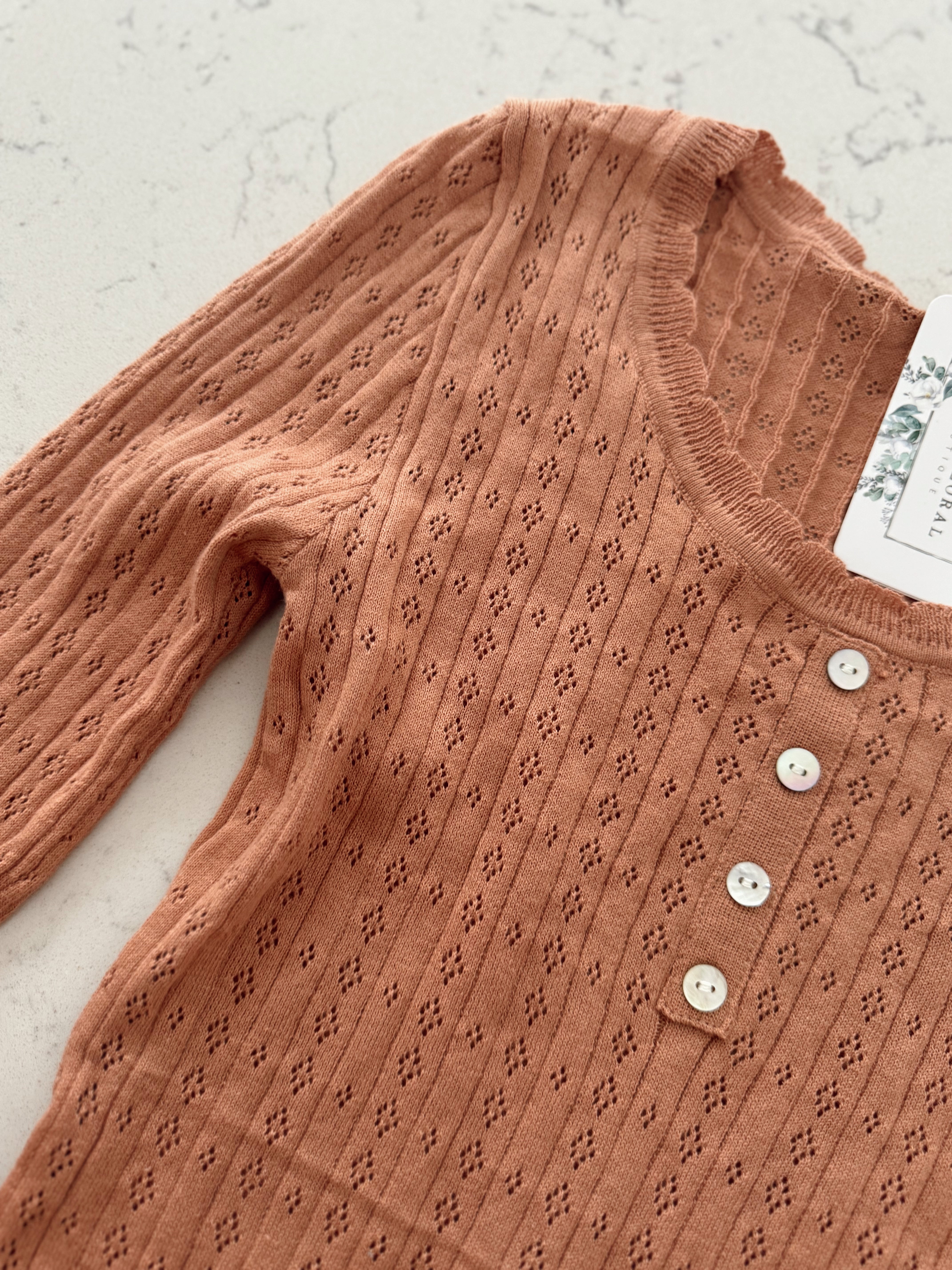 Breann Desert Sand Pointelle Knit Scoop Neck Henley