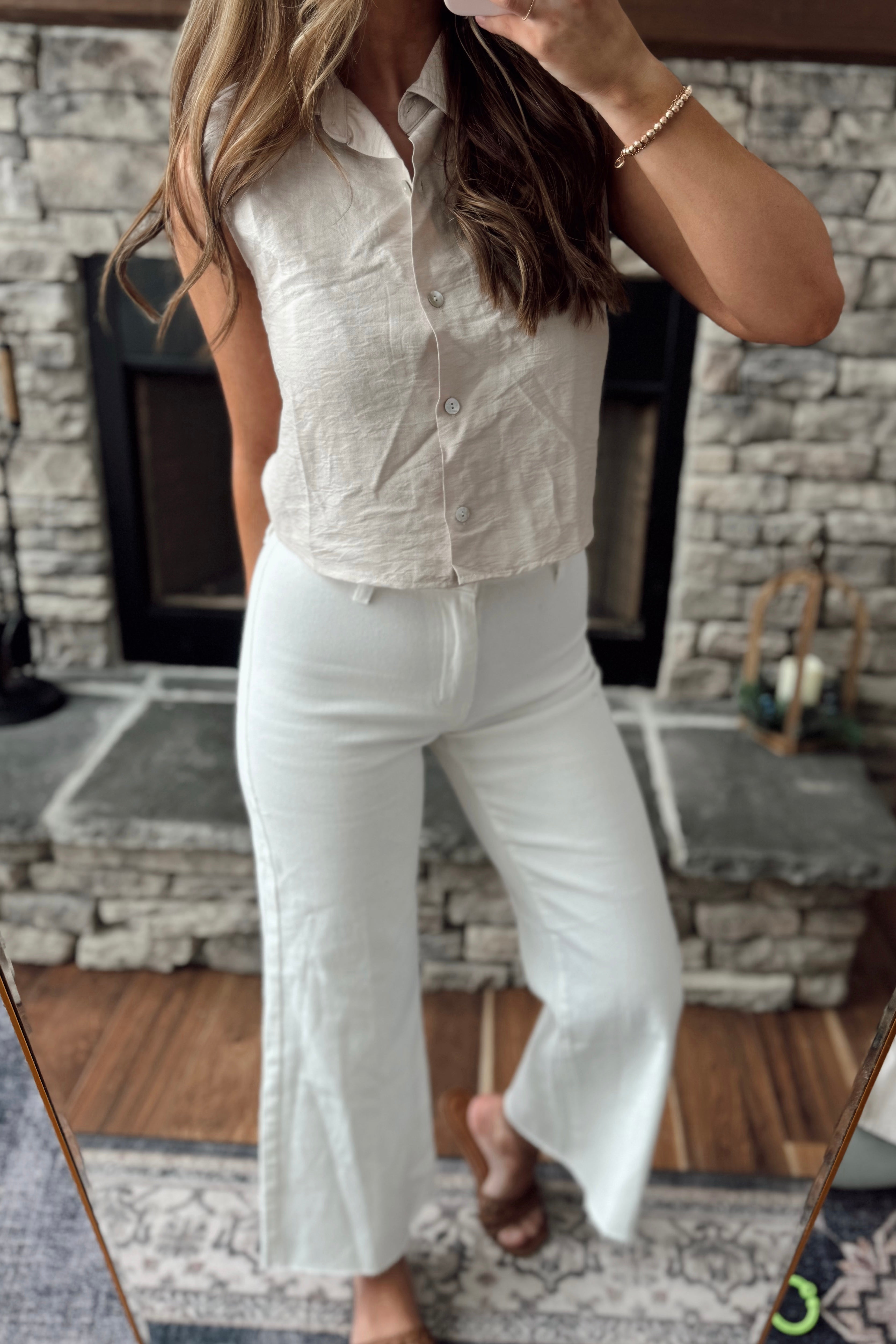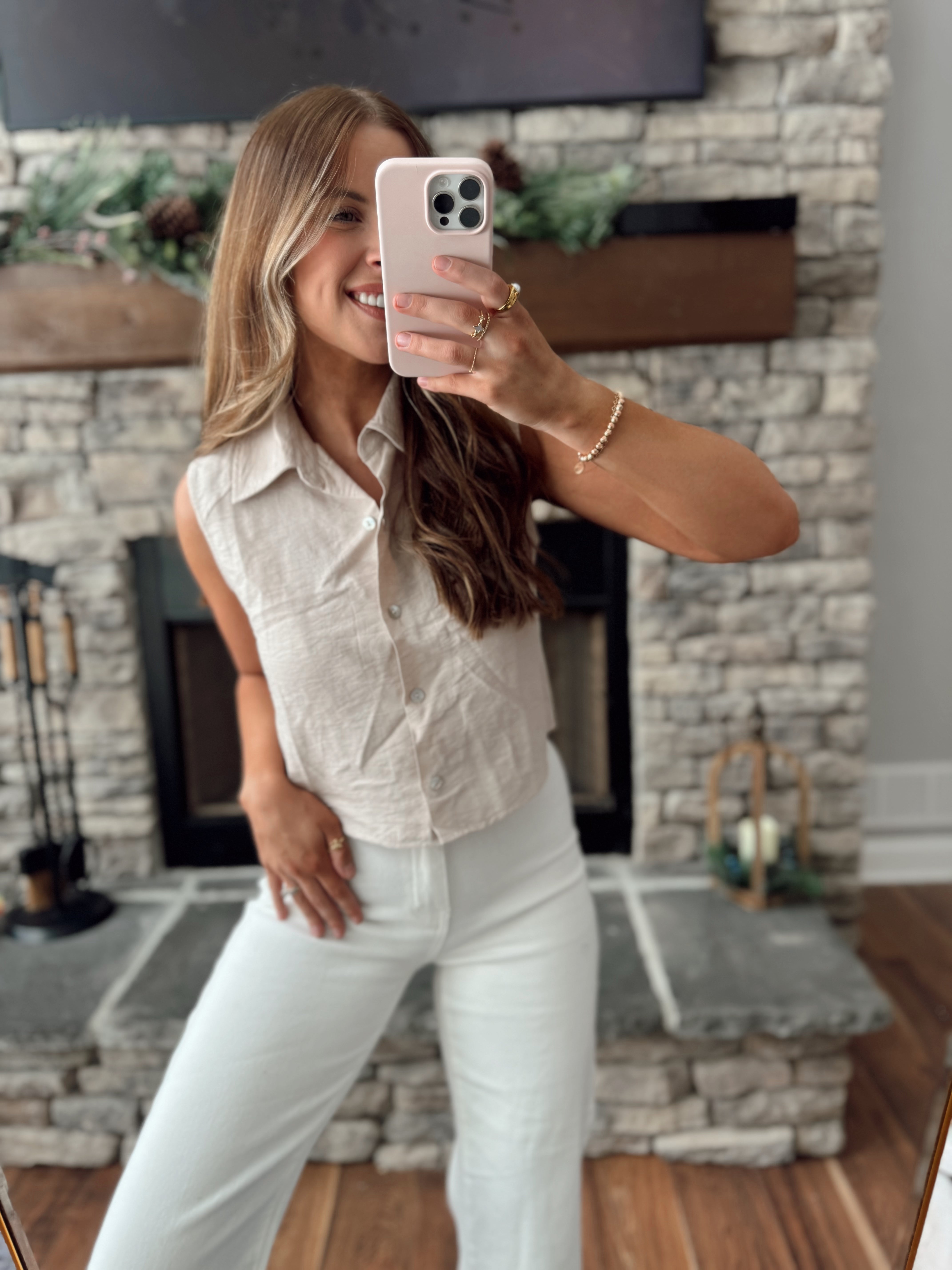 Bree Stone Sleeveless Cropped Collared Button Down Top