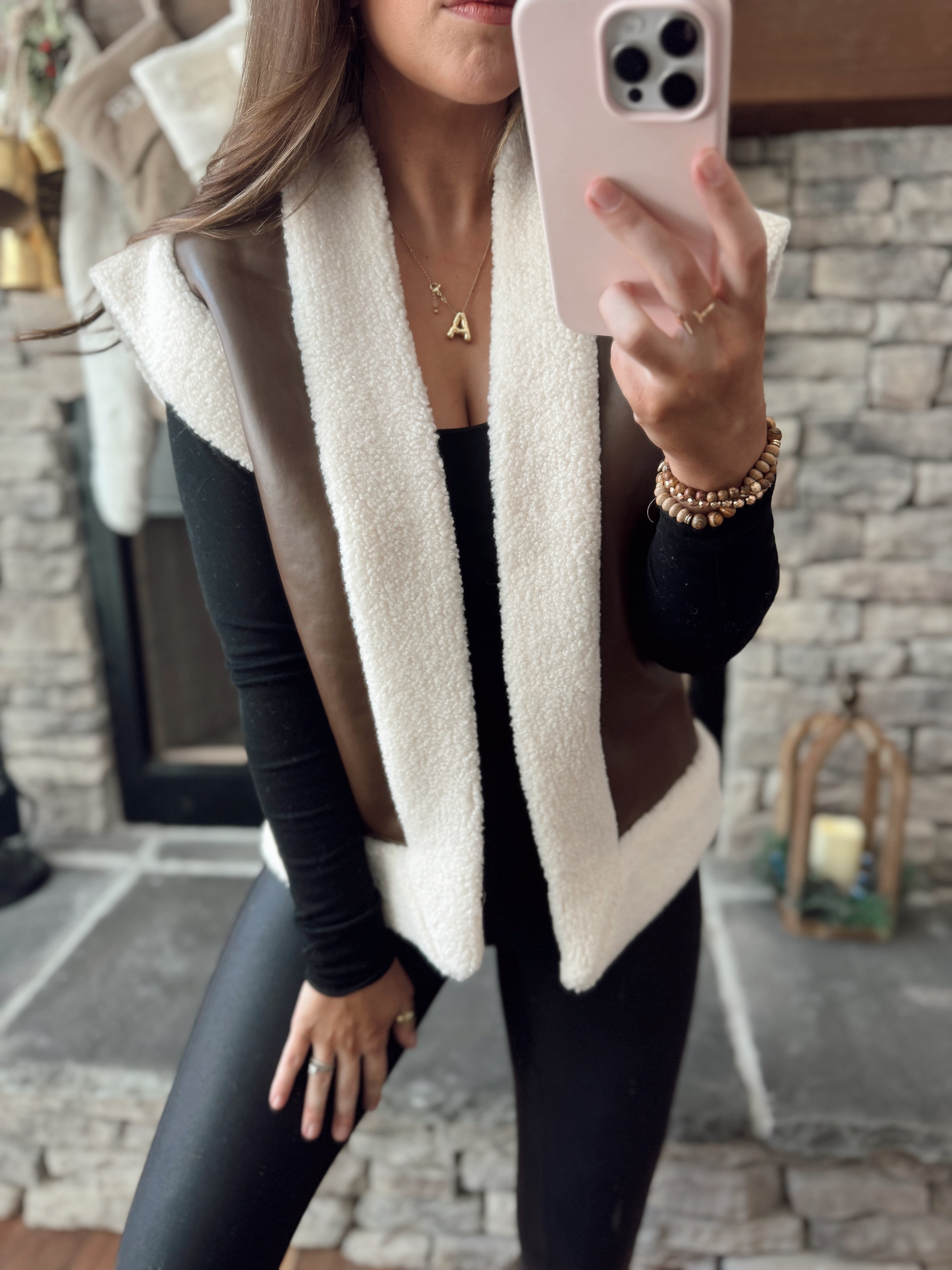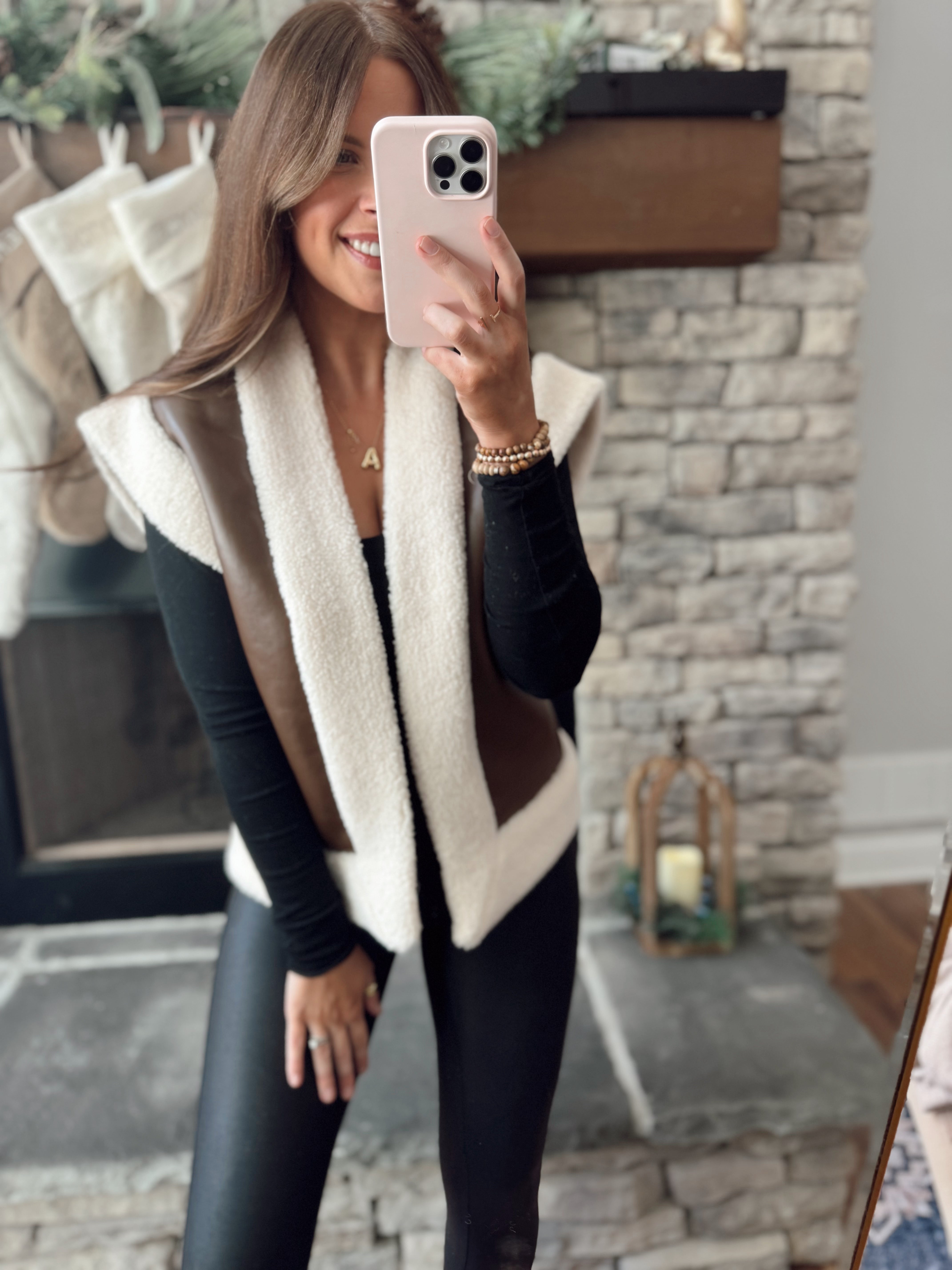 Bowie Brown/Cream Faux Leather Oversized Bonding Vest