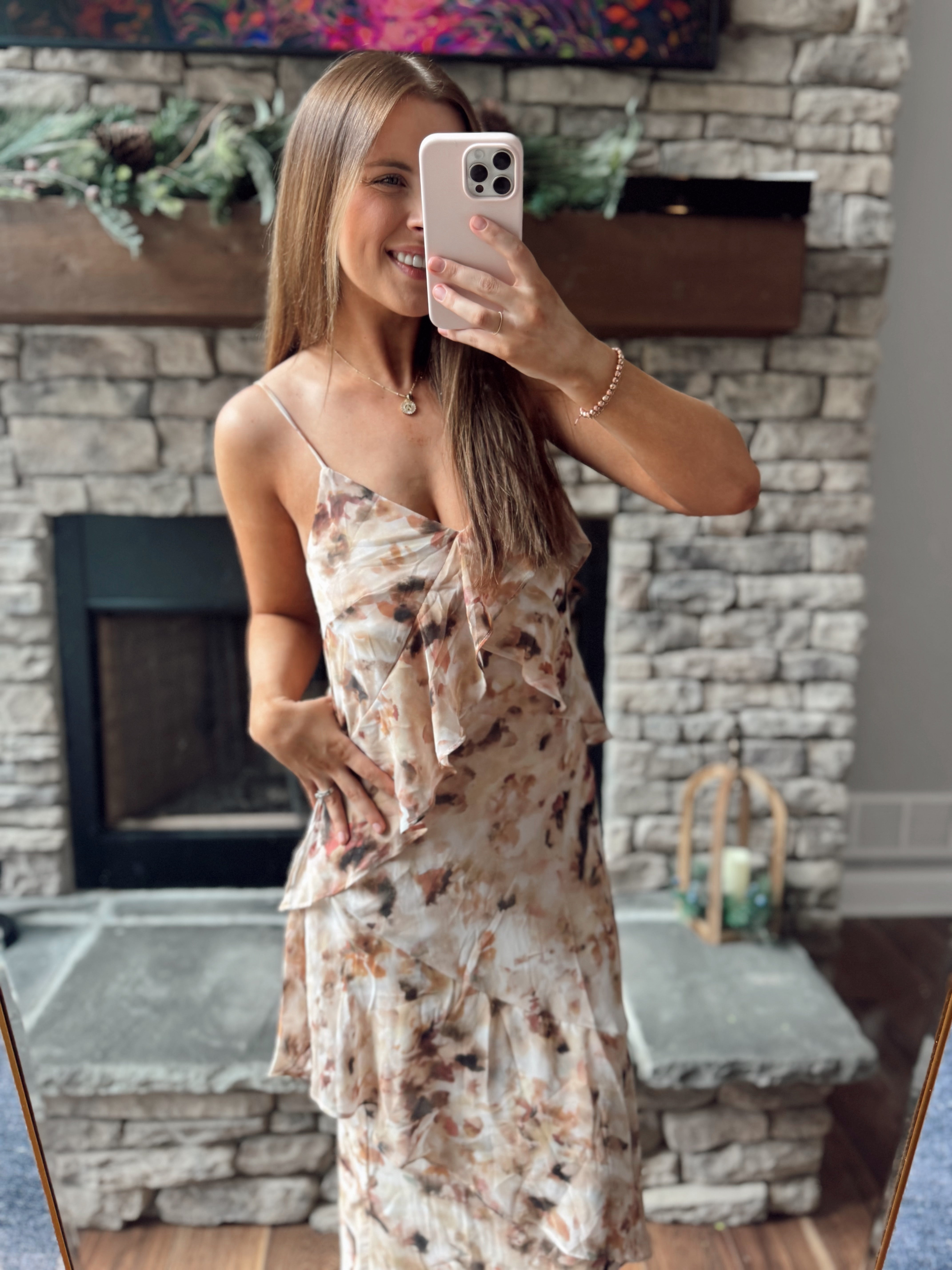 Burning Passion Taupe Multi Flowy Tiered Midi