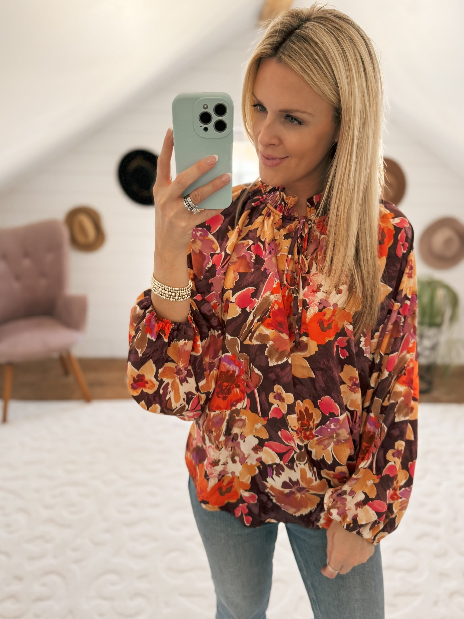 Changing of the Seasons Eggplant Satin Long Sleeve Blouse