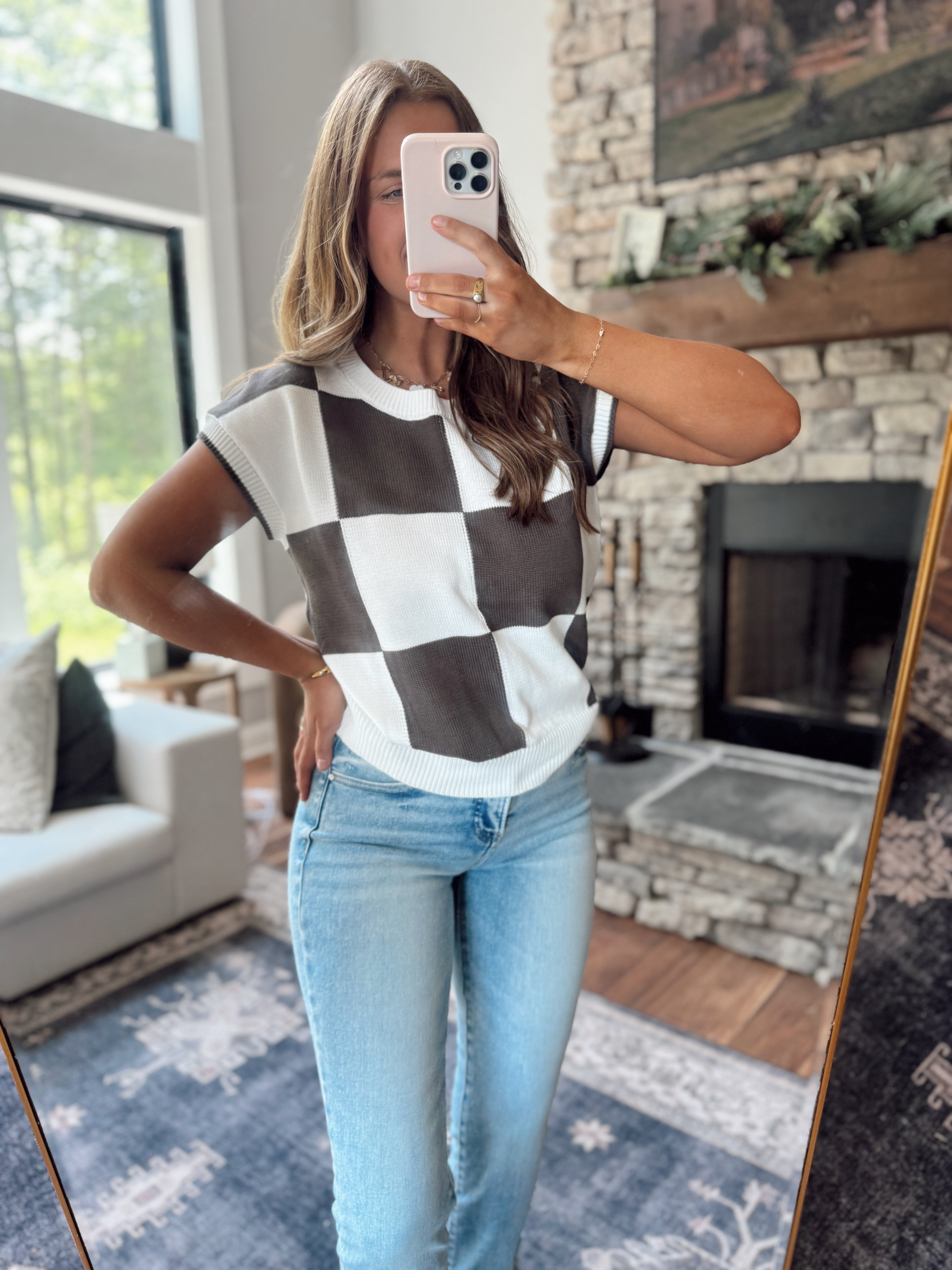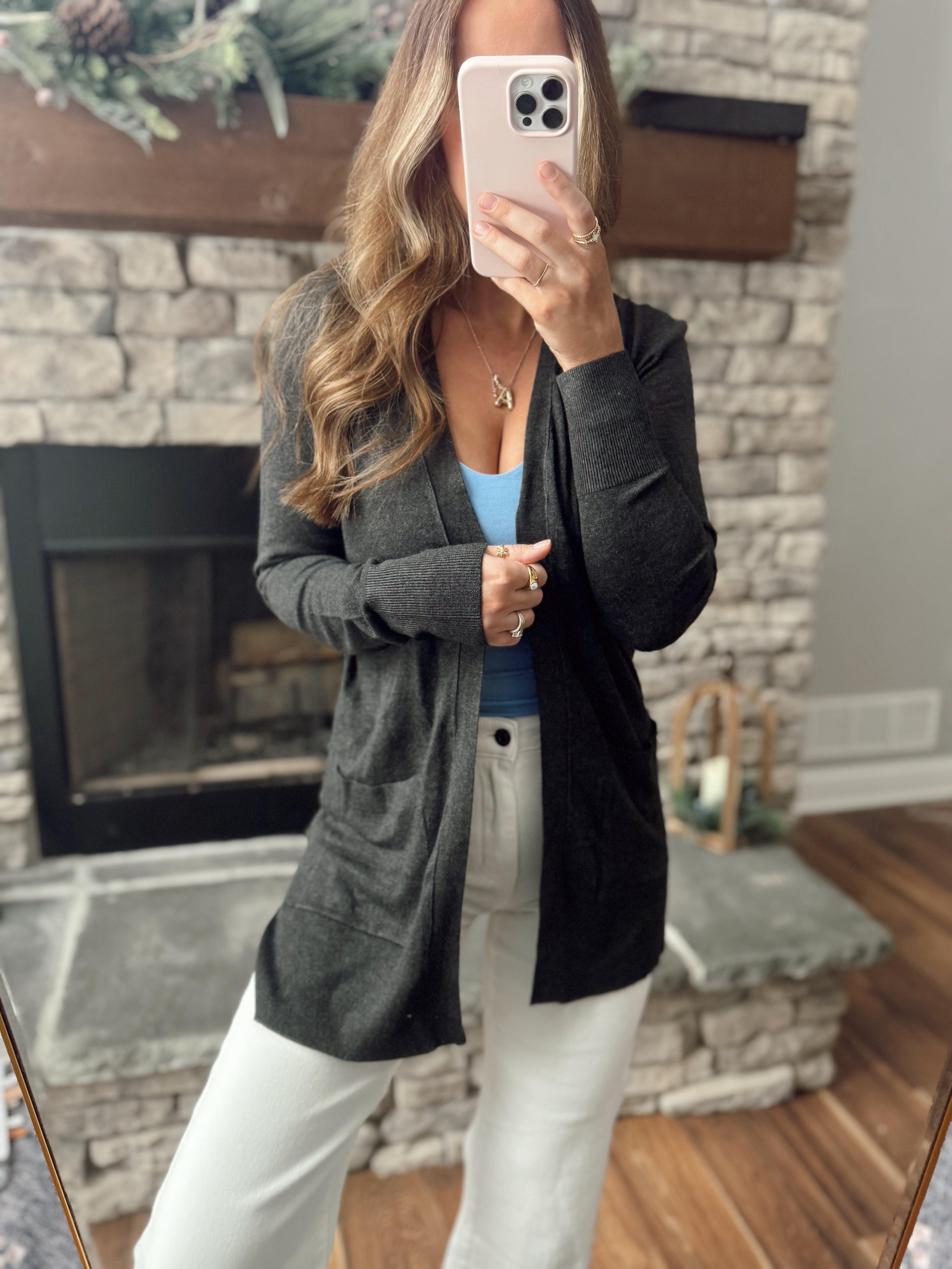 Charcoal High Hopes V Neck Ribbing & Lace Tank